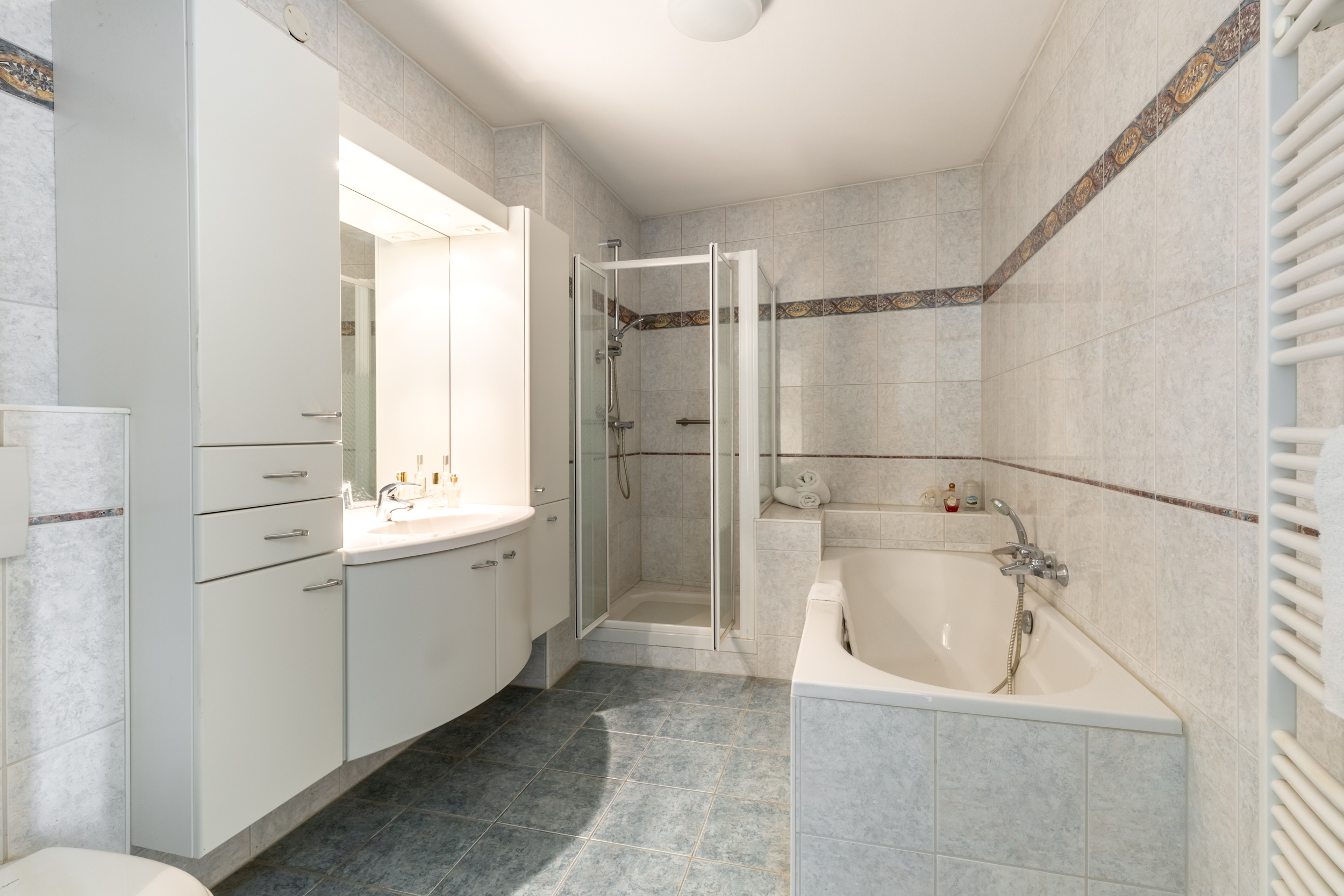 - Ligbad, toilet, douche en wastafel