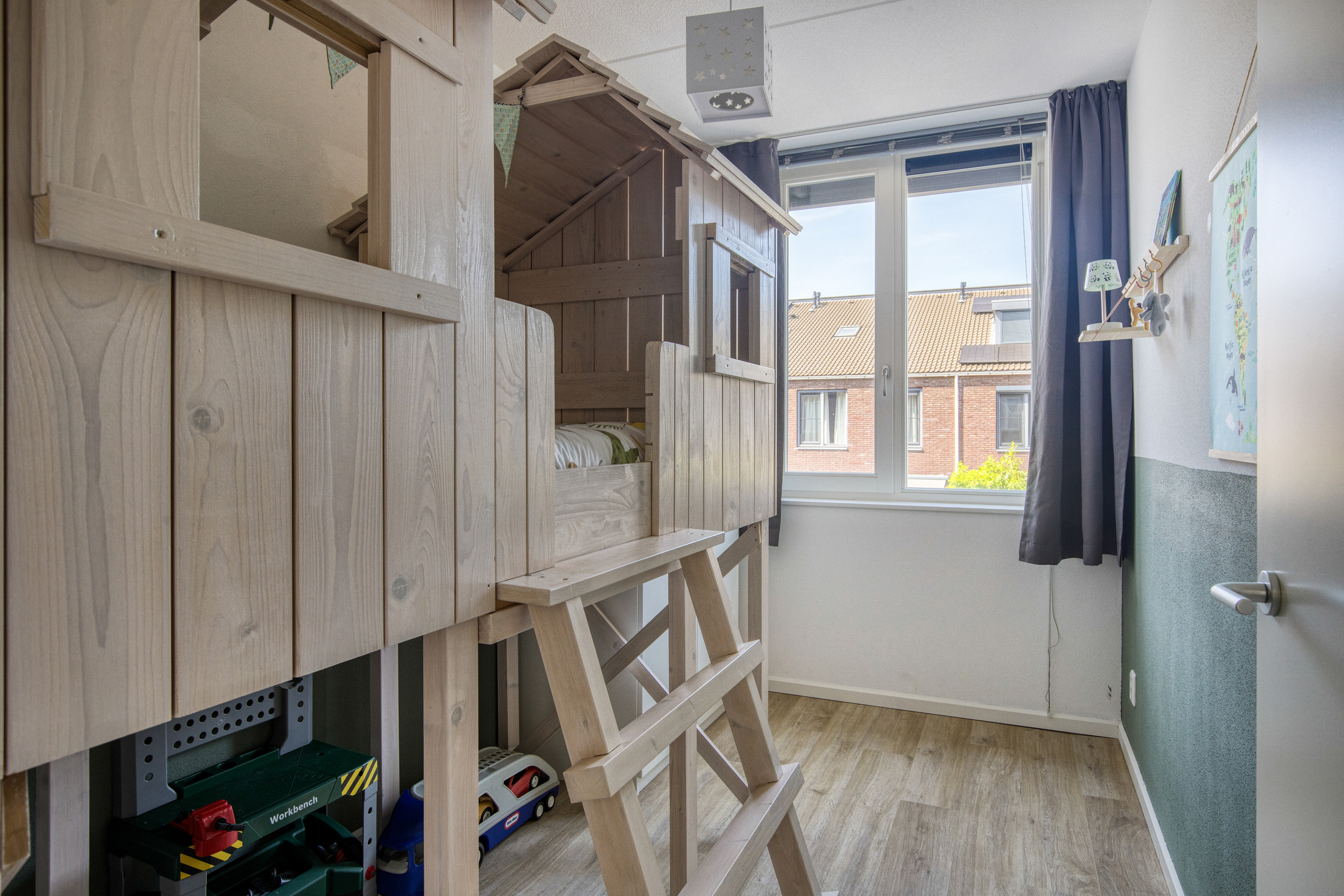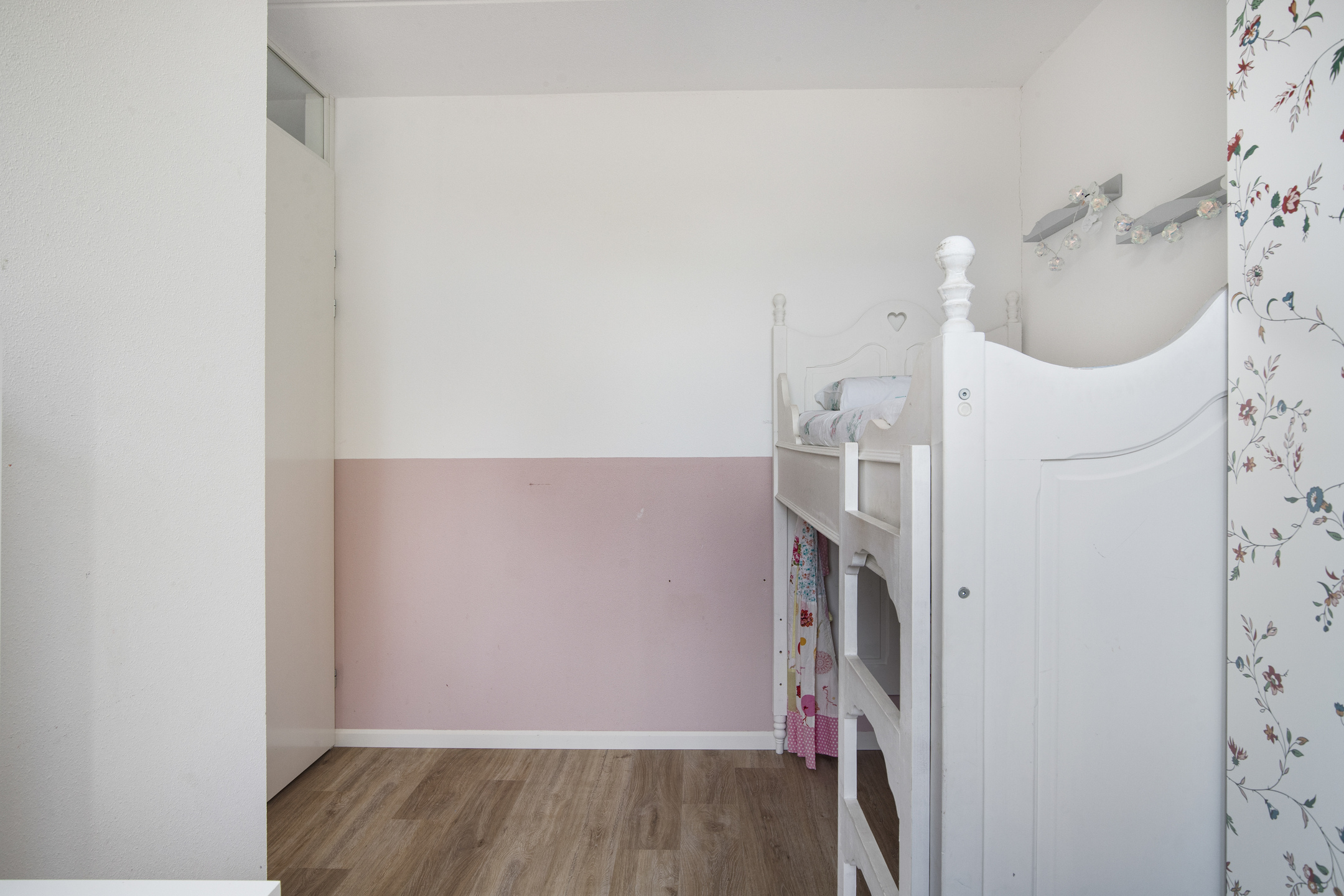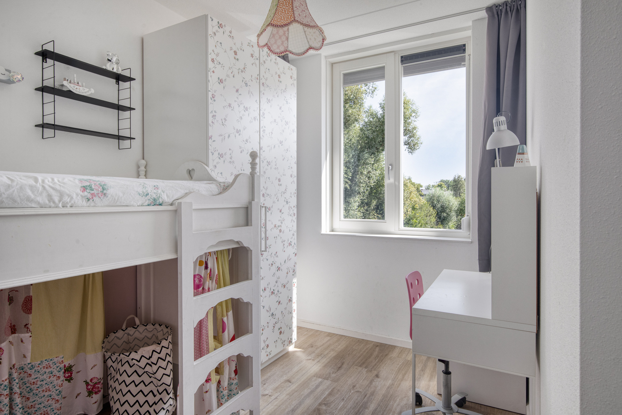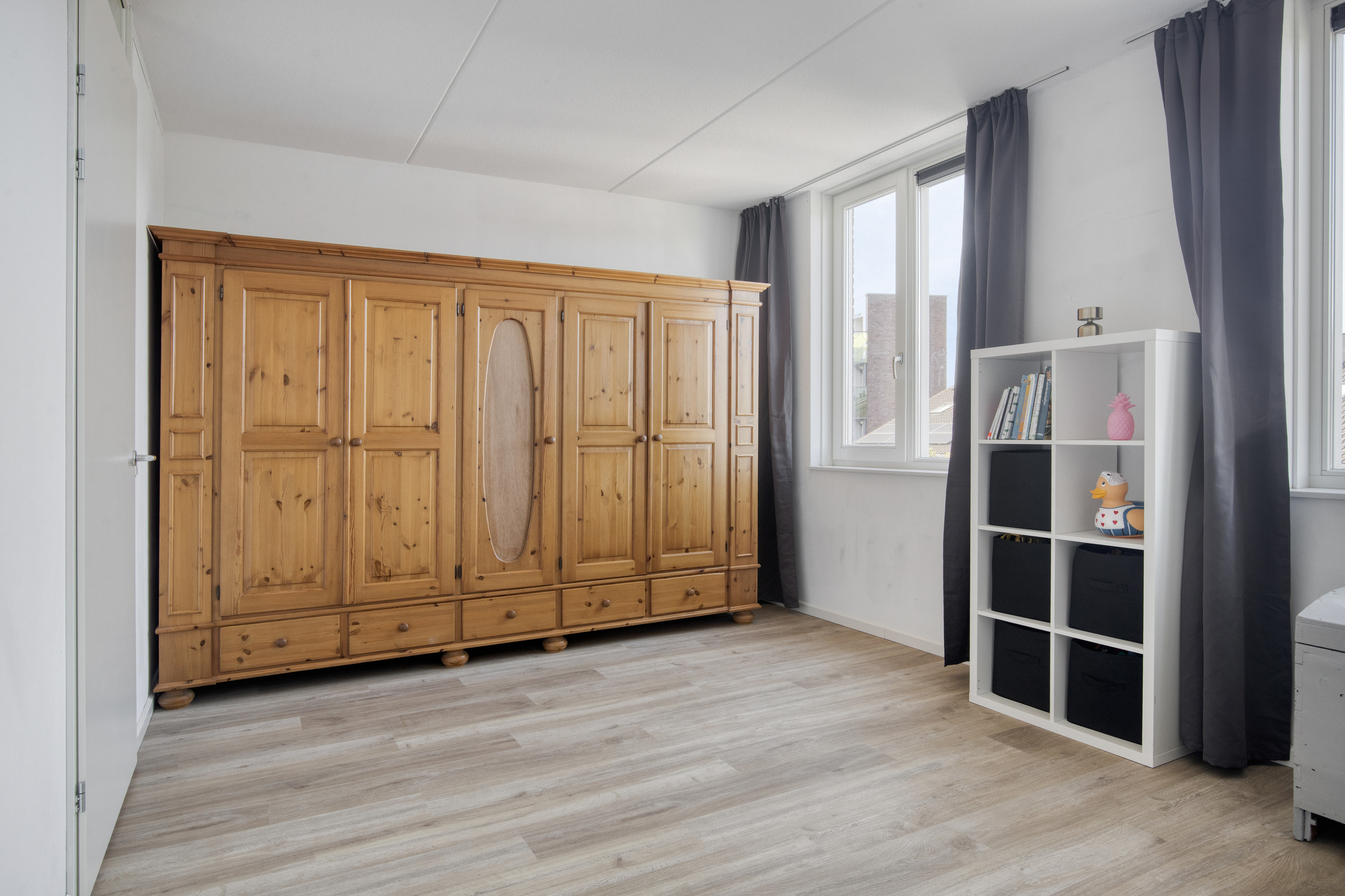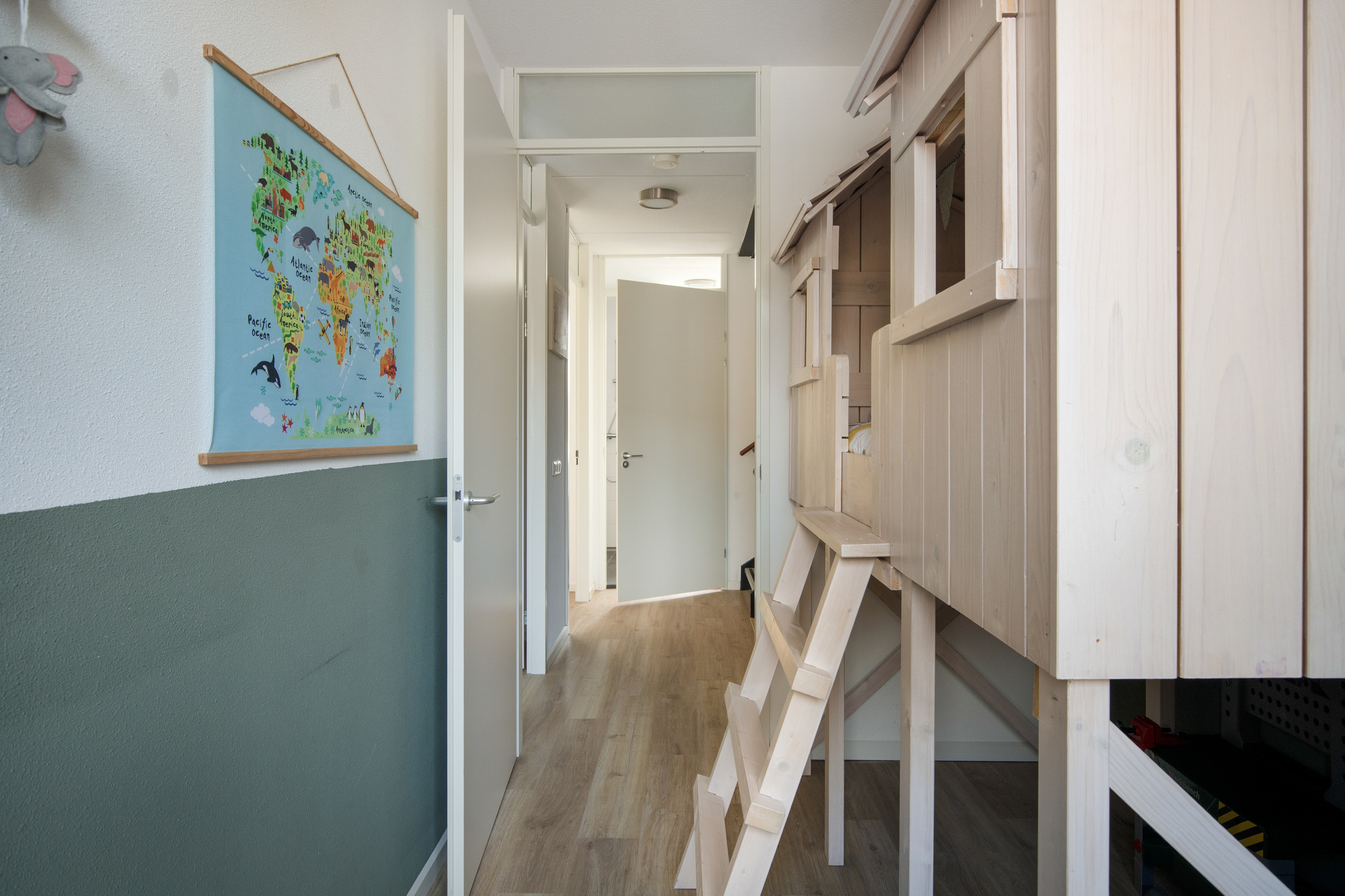 Op de eerste verdieping bevinden zich drie slaapkamers, momenteel ingedeeld als een ruime hoofdslaapkamer en twee kinderkamers. De hoofdslaapkamer en één van de kinderkamers liggen aan de achterzijde van de woning en zijn voorzien van grote ramen, waardoor de kamers heerlijk licht aanvoelen. De derde slaapkamer bevindt zich aan de voorzijde en is eveneens een fijne, lichte ruimte die bijvoorbeeld ook uitstekend dienst kan doen als werkkamer of logeerkamer.