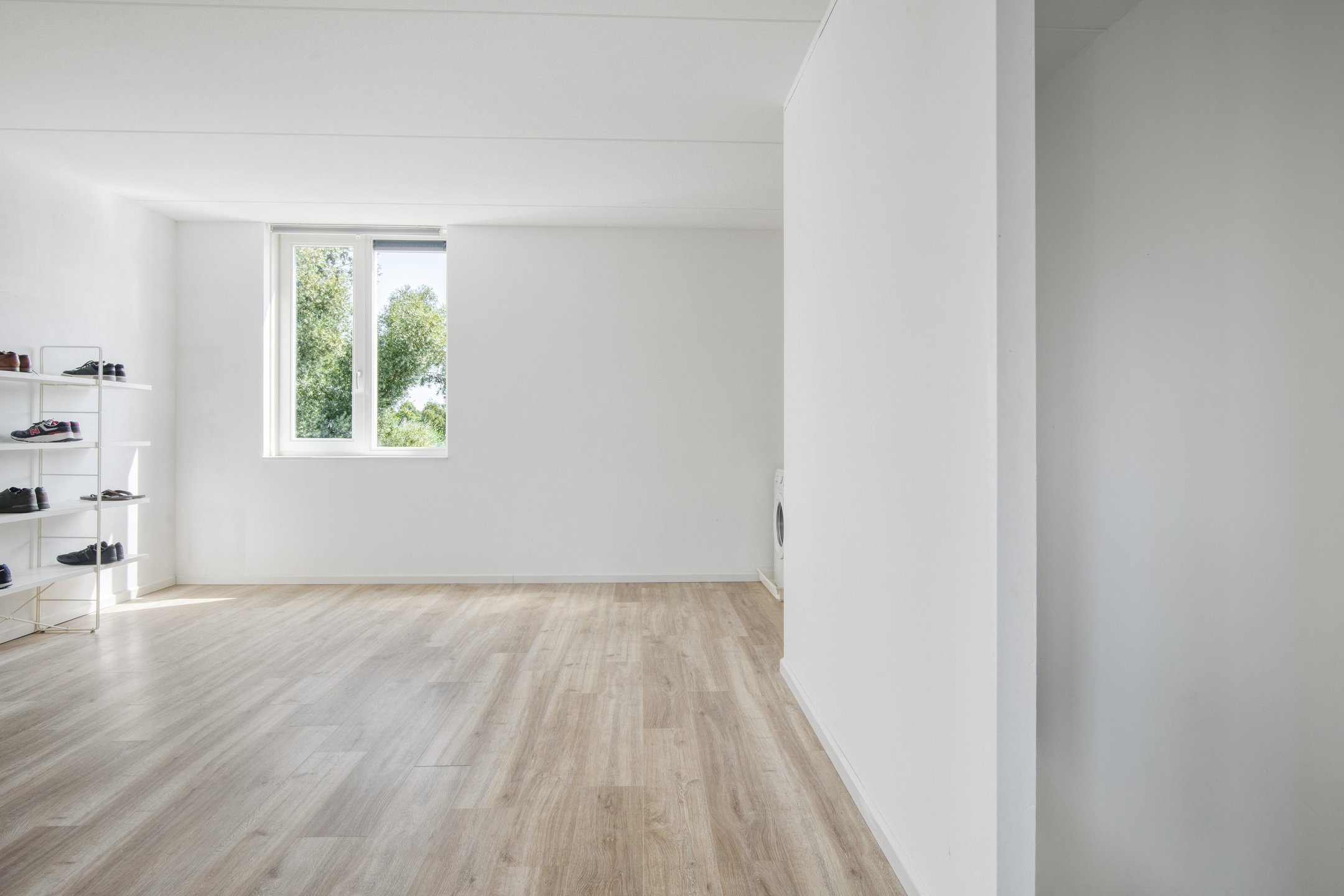 Ook deze verdieping is afgewerkt met een nette laminaatvloer en voorzien van houten kozijnen met draaikiepramen en HR-beglazing. Hierdoor geniet je van veel lichtinval, goede isolatie en optimaal wooncomfort.