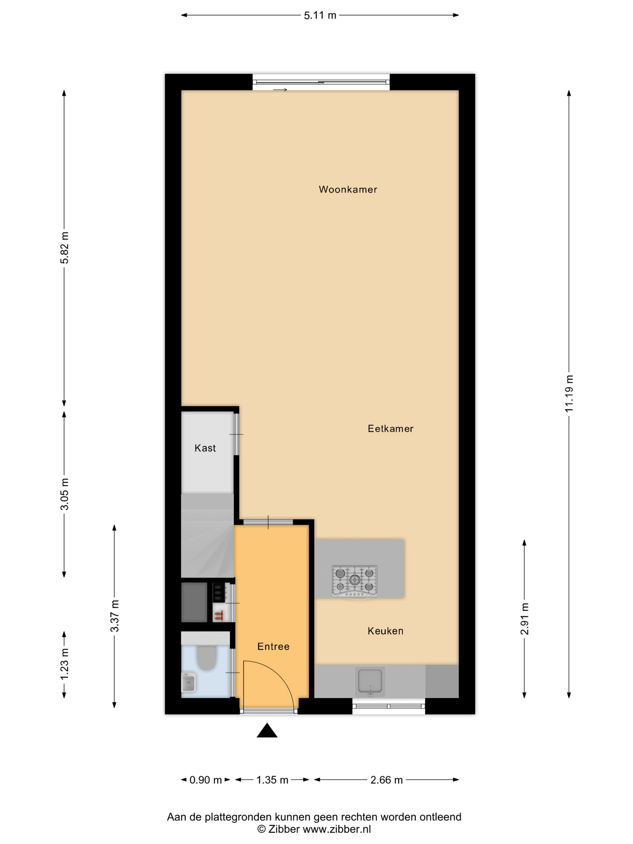 Bij binnenkomst word je ontvangen in een lichte entree. Hier bevinden zich de meterkast, de toiletruimte met hangend closet en de trapopgang naar de eerste verdieping. Vanuit de hal stap je door de fraaie tussendeur de woonkamer binnen.