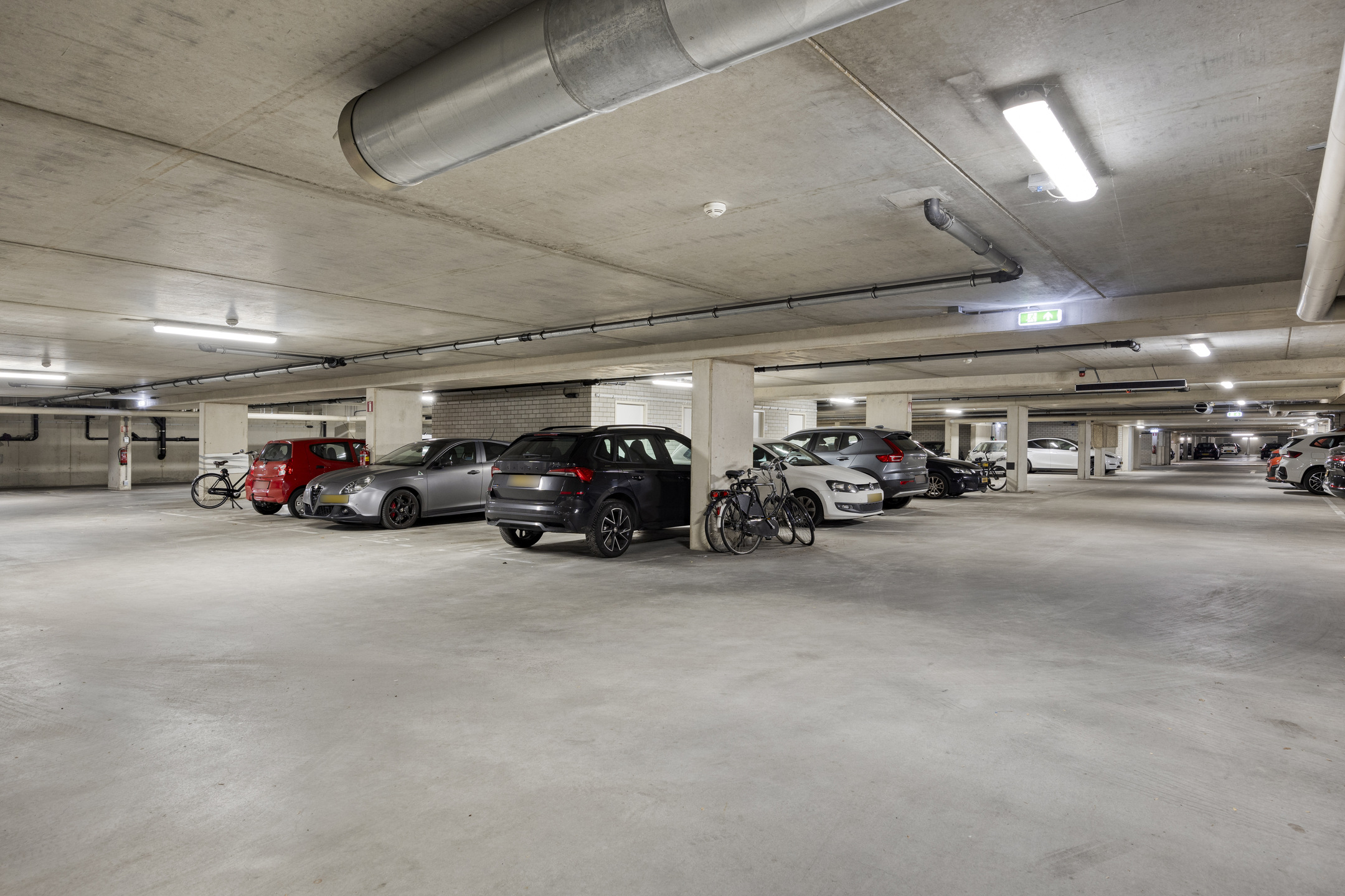 Vanuit de gemeenschappelijk hal/entree zijn via trappenhuis of lift de ondergelegen parkeergarage met eigen parkeerplaats en ruime berging bereikbaar. Beide bevinden zich dichtbij de toegangsdeur. Met de auto bereikt u de parkeergarage middels een hellingbaan met een op afstand bedienbare toegangspoort.