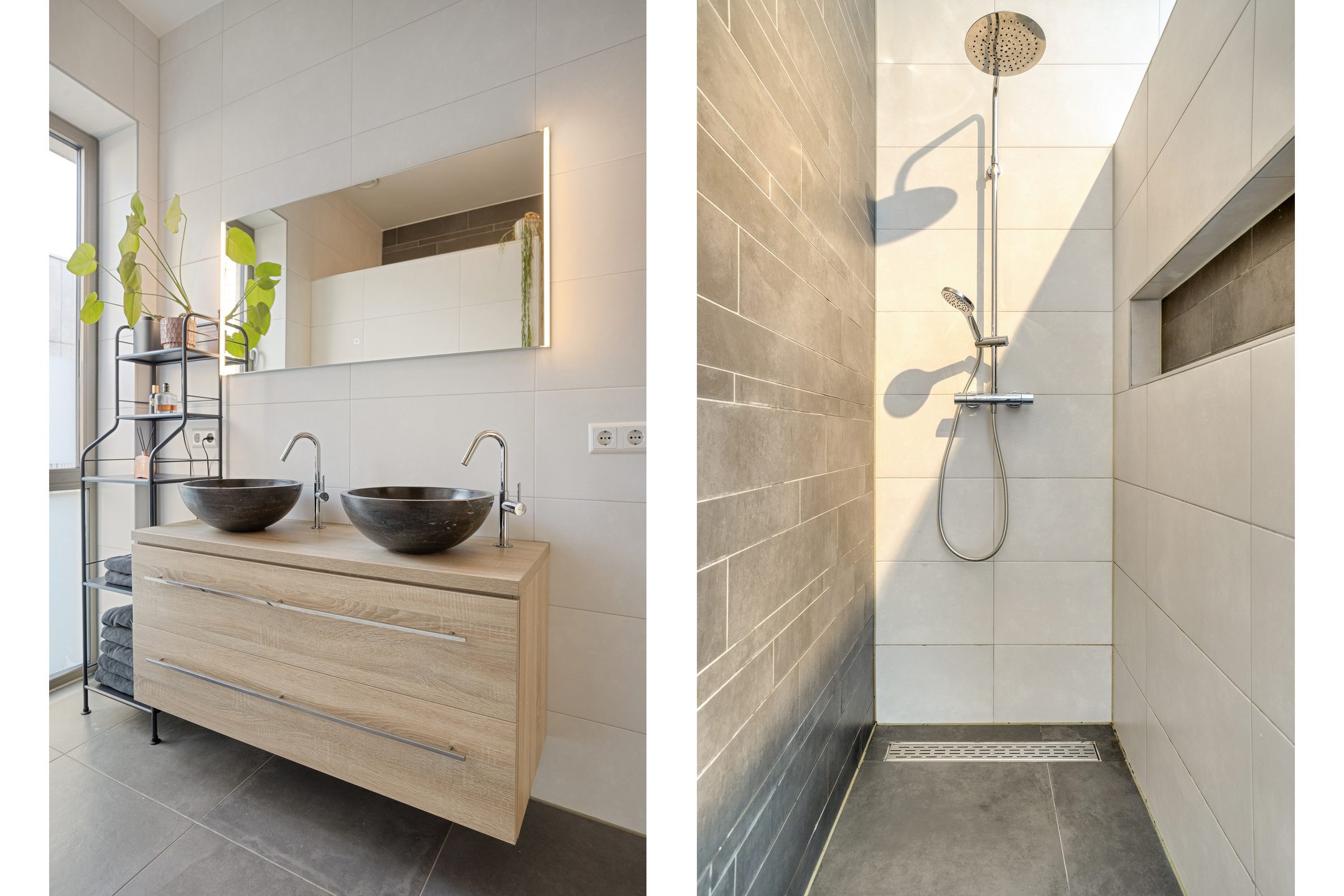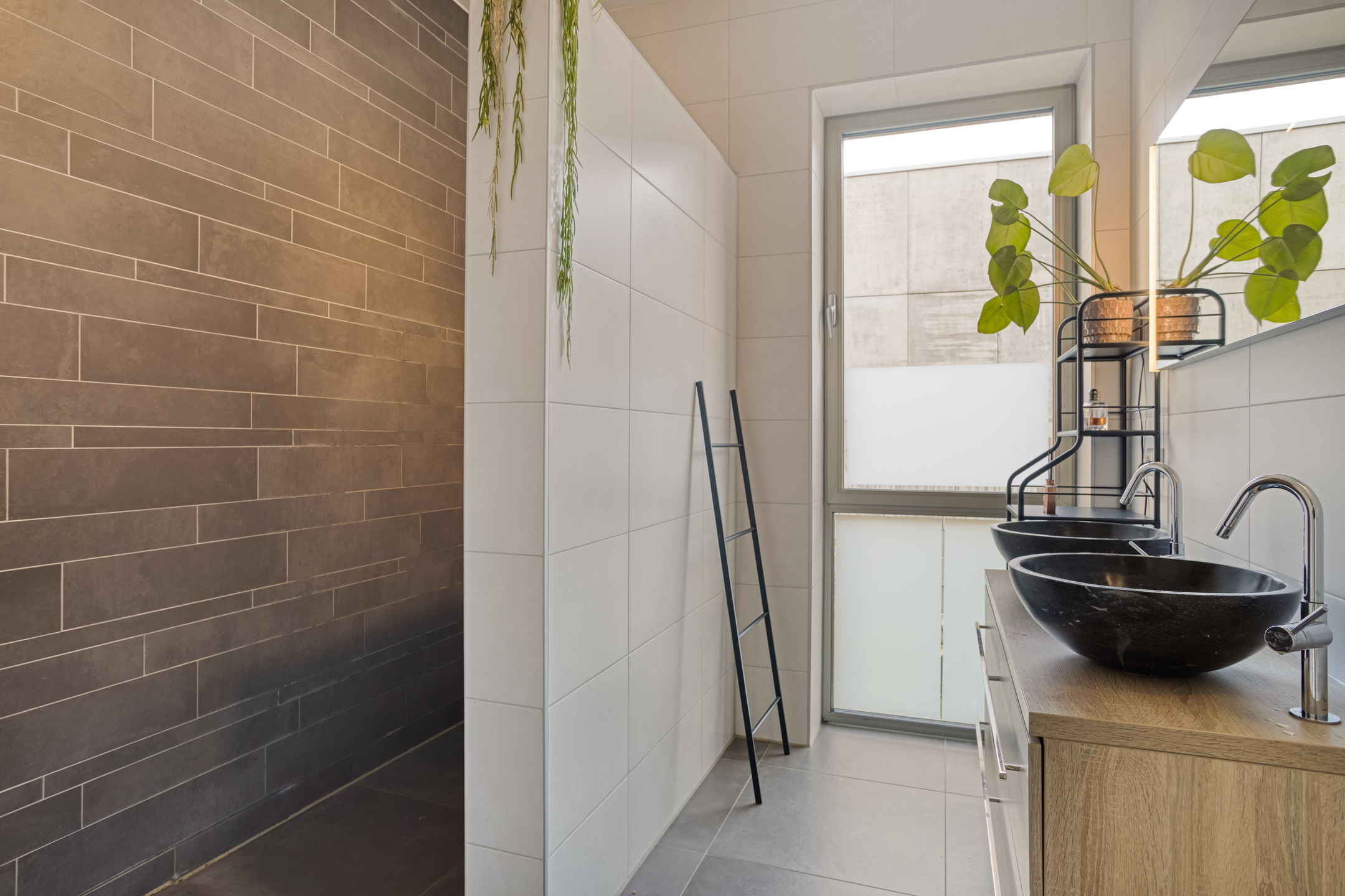 - Sfeervolle badkamer met inloopdouche en dubbele wastafel