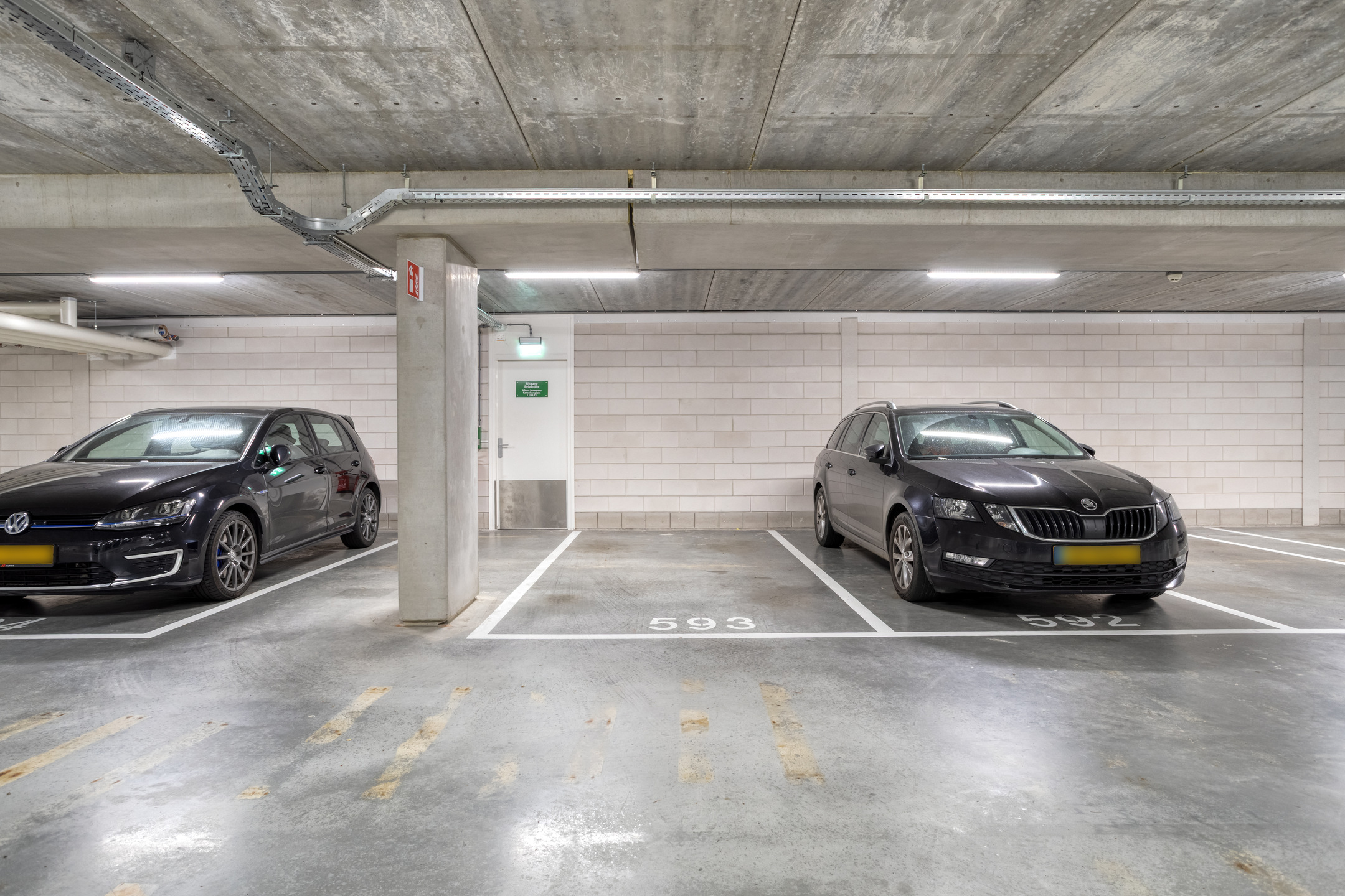 Bij het appartement hoort een eigen parkeerplaats in een nabijgelegen parkeergarage.