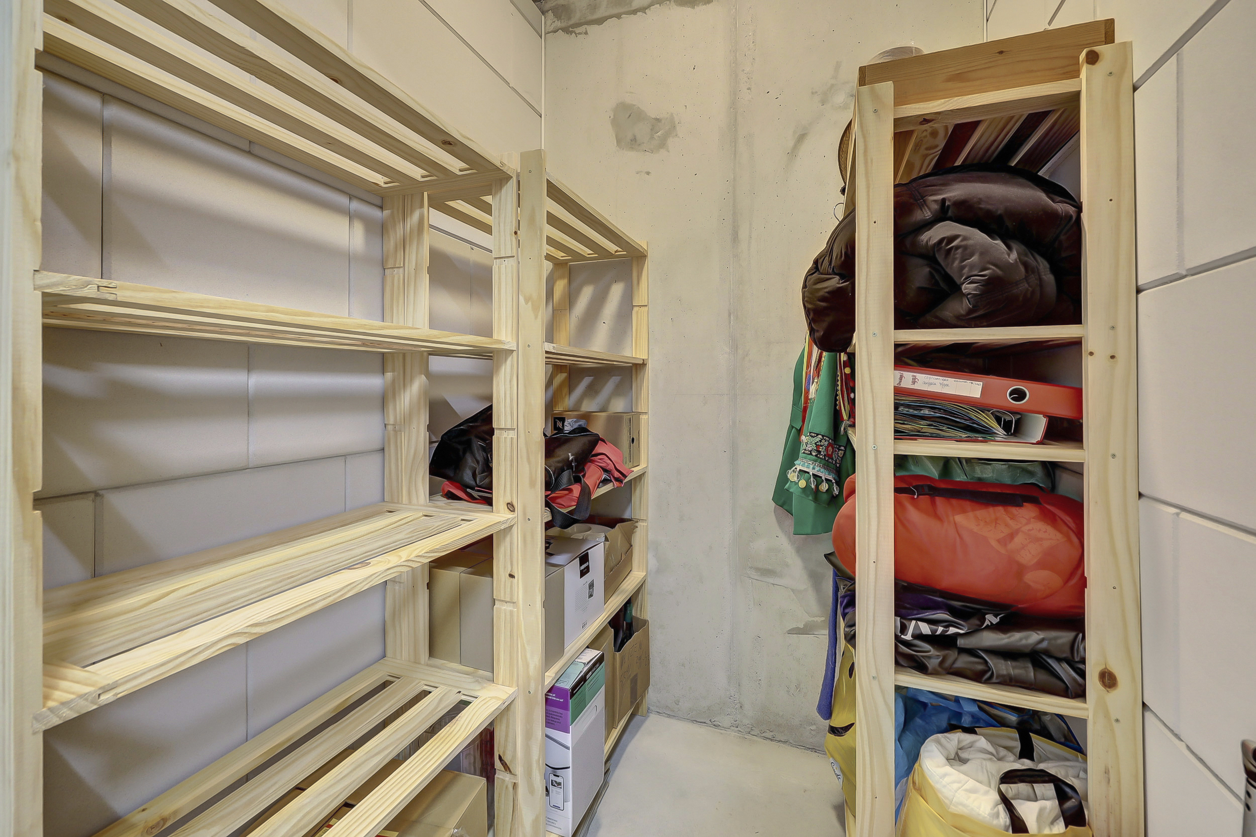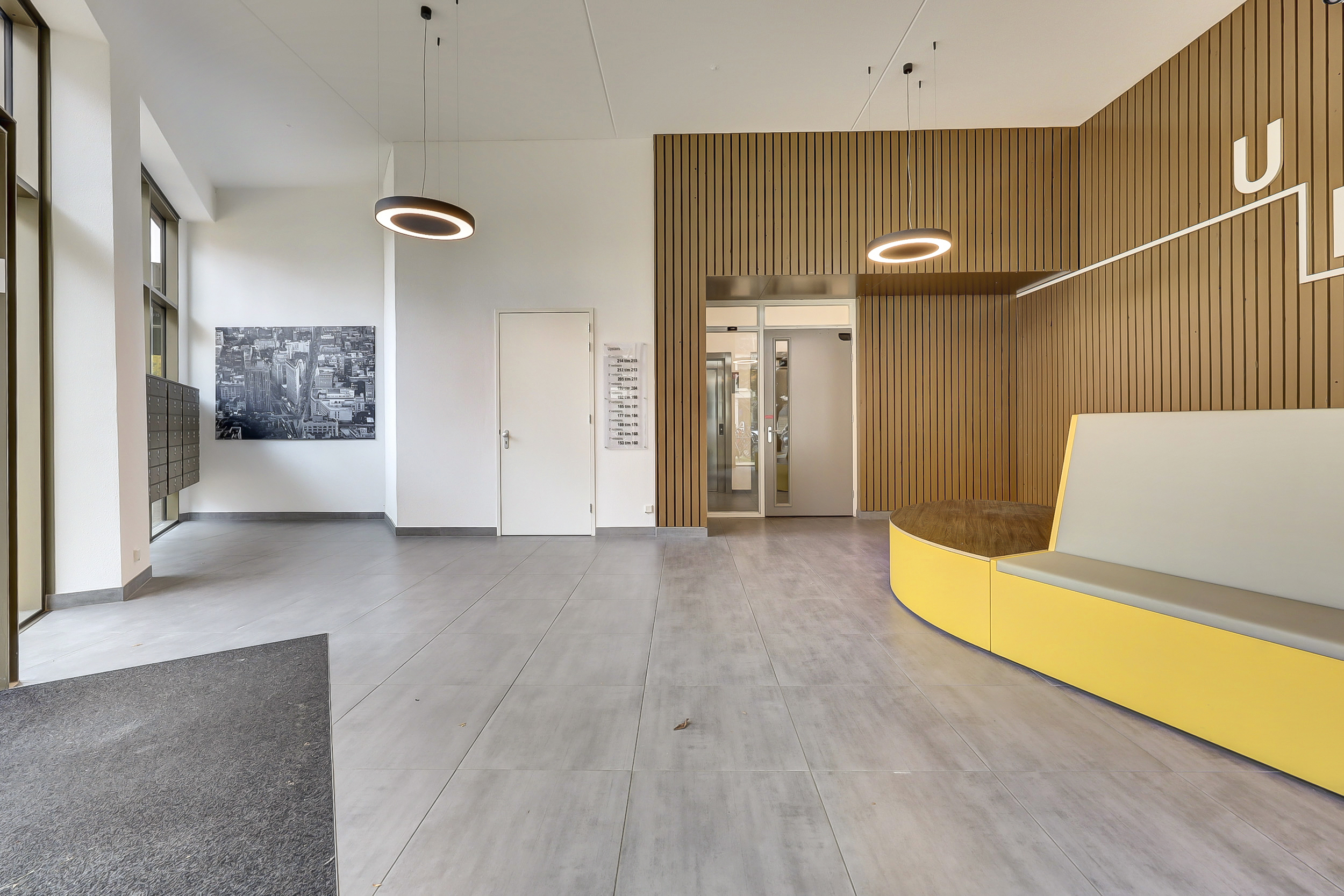 De centrale entree met bellentableau en videofooninstallatie biedt toegang tot de lift, het trappenhuis en het souterrain met persoonlijke berging. Om de hoek bevindt zich de gemeenschappelijke fietsenberging. De privéparkeerplaats bevindt zich in de garage van het tegenovergelegen complex Belvédère.