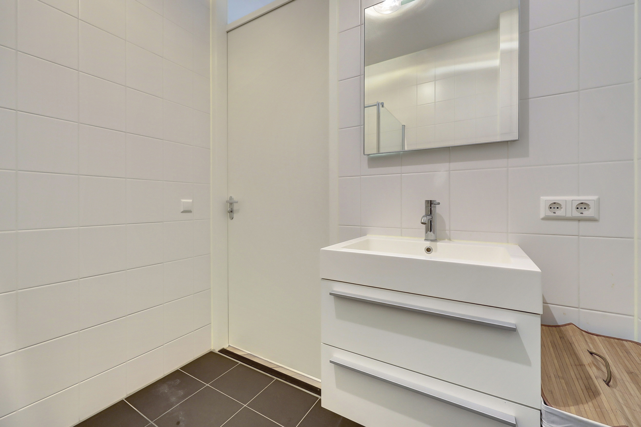 De badkamer is keurig afgewerkt en voorzien van een douchecabine, toilet en wastafelmeubel. Een interne berging met wasmachineaansluiting en een extra berging in het souterrain maken het geheel compleet.