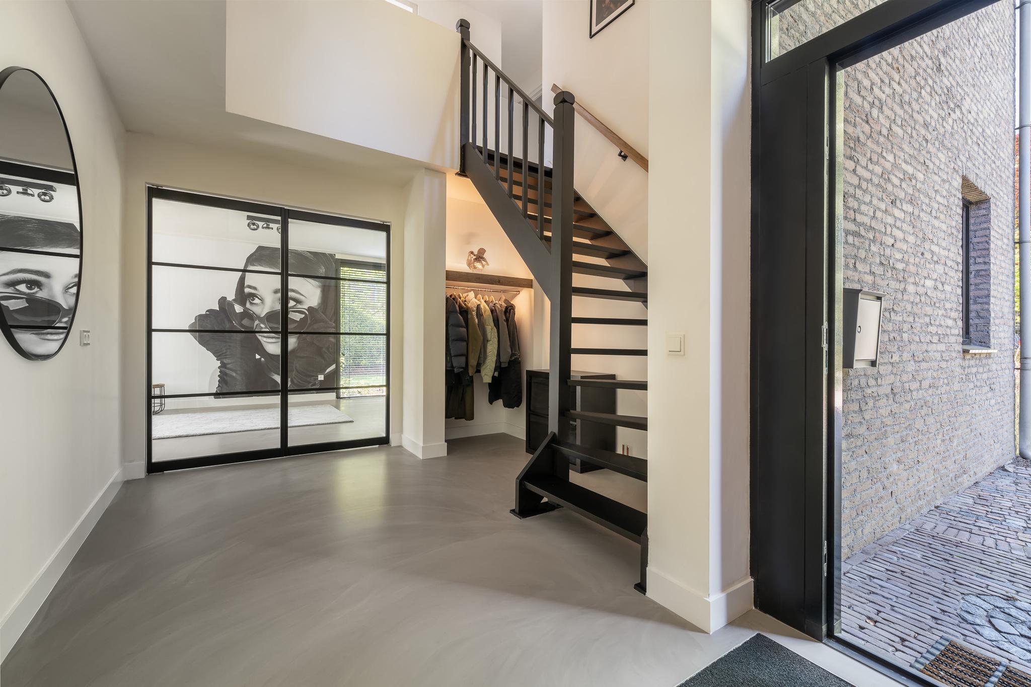 De hal is indrukwekkend, ruim, licht en stijlvol. Vanuit deze centrale ruimte heb je directe toegang tot het aparte toilet met fontein, de garderobe, de fraaie trap naar de eerste verdieping en de slaapkamer met badkamer en-suite op de begane grond.