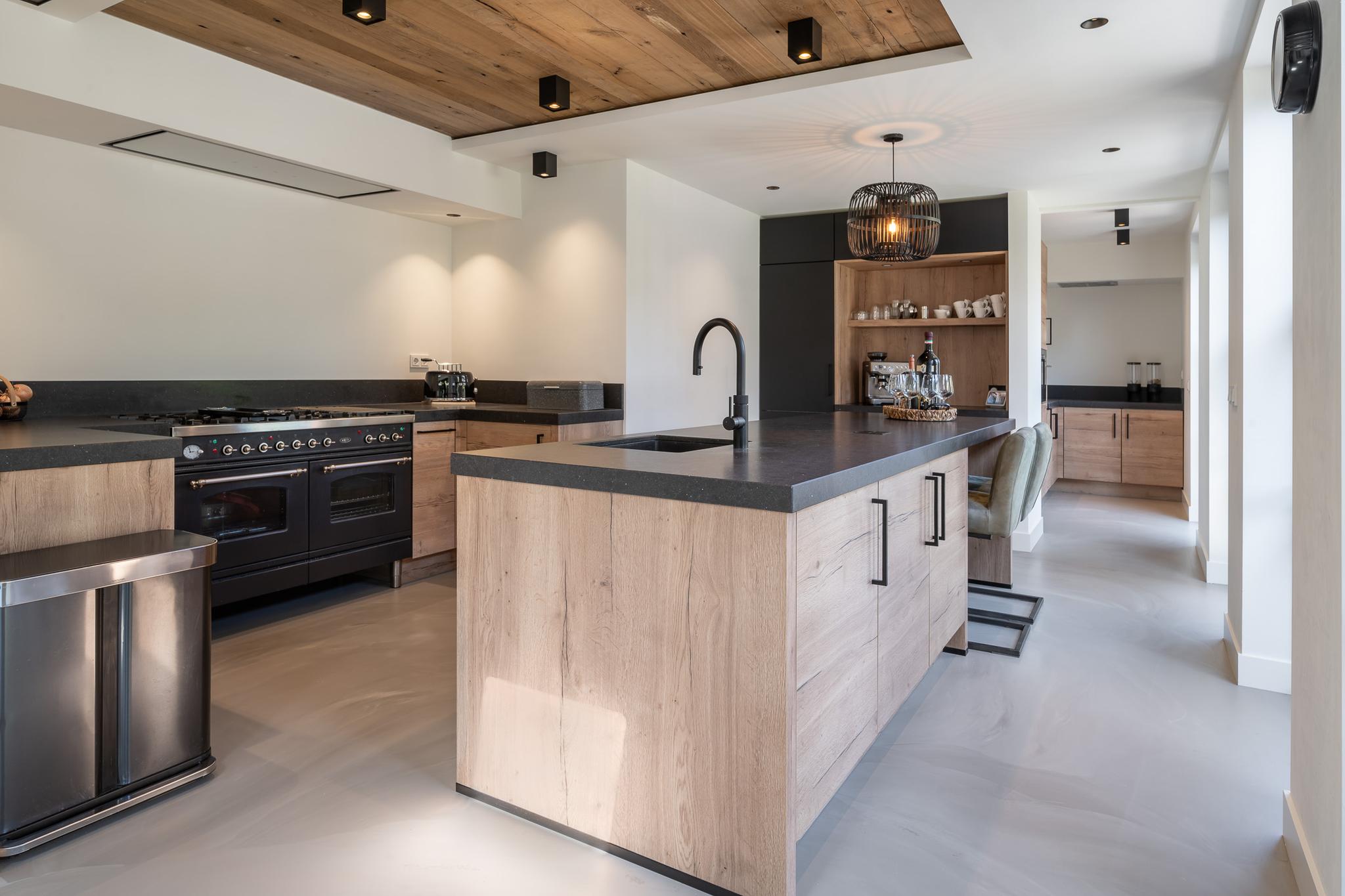 De uitgebreide keuken is een droom voor iedereen. De keuken is uitgerust met alles wat je maar wensen kunt en het royale kookeiland biedt meer dan genoeg werkruimte. De keuken is voorzien van Boretti gasfornuis, dubbele ovens, afzuigkap, combimagnetron, koelkast, vriezer, vaatwasser en een Quooker. Daarnaast is er een koffiecorner en om de hoek is er een praktische verlenging van de keuken. Met kastruimte en extra werkblad in dezelfde uitvoering als de keuken. Hier wordt koken niet alleen functioneel, maar ook heel leuk.