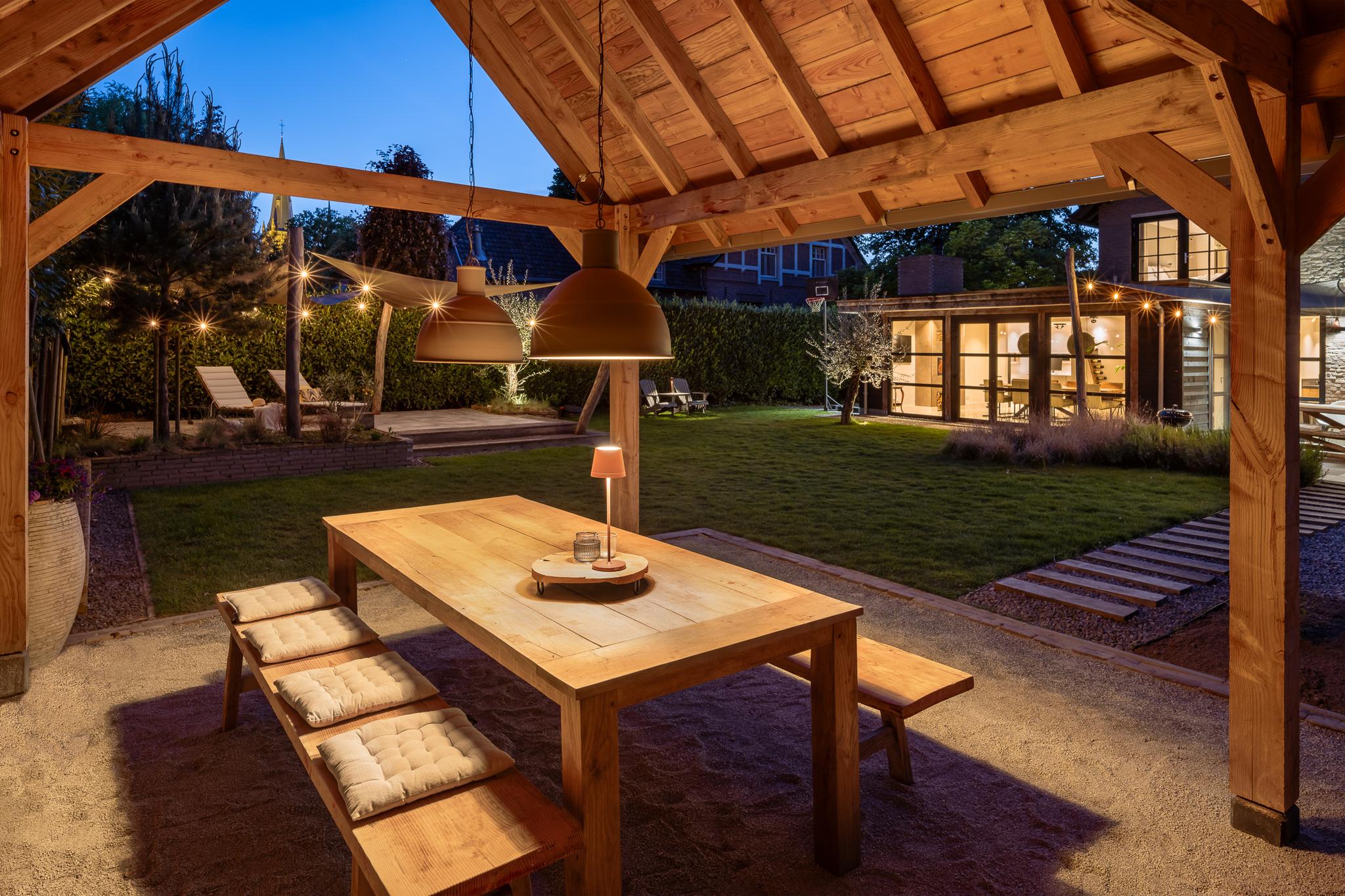 Vanaf deze heerlijke loungeplek heb je een fantastisch zicht op de achtergevel en de overige terrassen. Door de verschillende terrassen kun je hier altijd in of uit de zon zitten, met altijd een fraai uitzicht op de woning of de tuin met bijgebouw.
