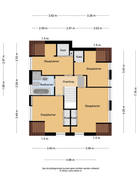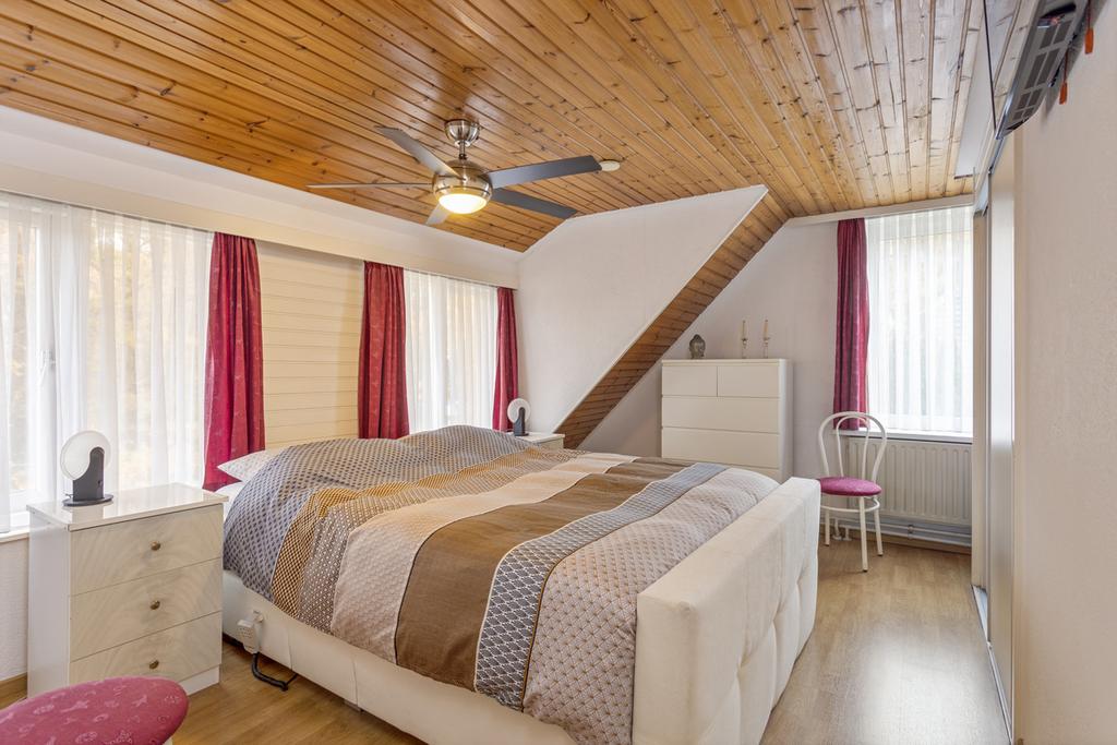 Via de vaste trap bevindt u zich op de overloop van de eerste verdieping. De overloop biedt toegang tot vier slaapkamers en een badkamer. De slaapkamers kennen alle veel lichtinval en ruimte vanwege de plaatsing van dakkapellen aan beide kanten van de woning. Alle slaapkamers zijn ook voorzien van vaste kasten. Daarnaast is ook de badkamer te bereiken vanuit de overloop. Deze badkamer is voorzien van zowel ligbad als inloopdouche, toilet en wastafel. De badkamer dient gemoderniseerd te worden. Kortom, een woonlaag met meerdere kamers, geschikt voor een groot gezin.