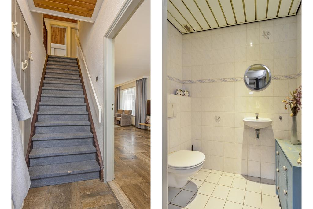 Dit prachtige huis kent twee verschillende entrees: via de voordeur en via de "Brabantse achterom" naar de serre. Vanaf de straat loopt u via de riante voortuin naar de voordeur van de woning en komt u binnen in de entreehal. In deze hal vinden we zowel de trapopgang naar de eerste verdieping als de doorgang naar de royale woonkamer. Dit hart van het huis kent een mooie lichtinval door de raampartijen en is ideaal in te richten met uw meubels. Daarnaast vinden we in deze woonkamer een extra opbergkast onder de trap.