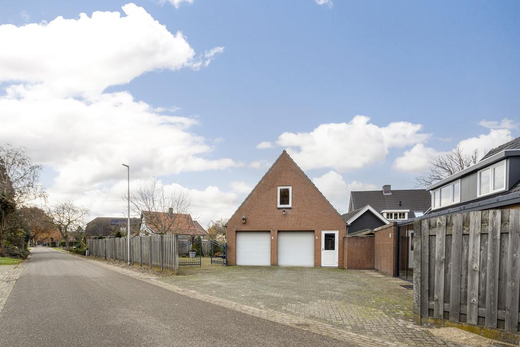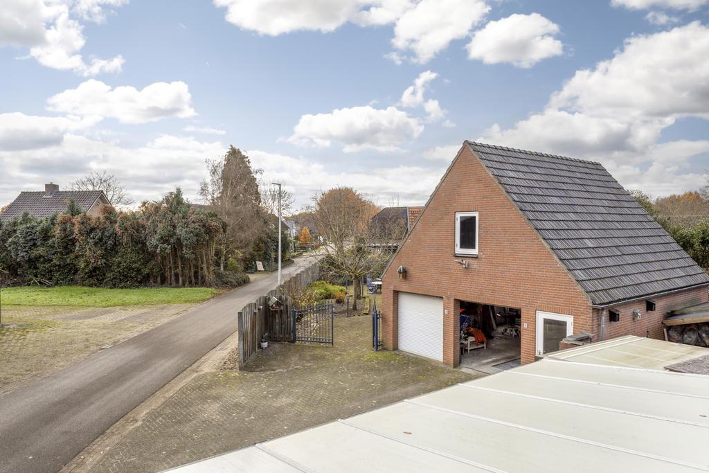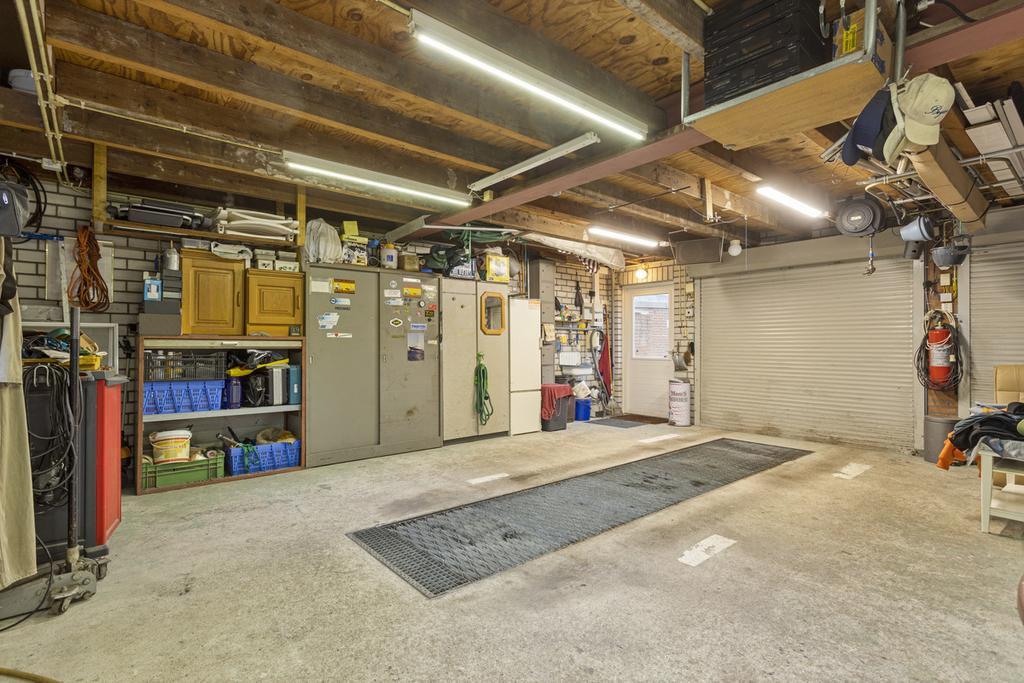 De parkeerplaats op eigen terrein voor de serre loopt over in het grote garagegebouw. Middels de twee sectionaal garagedeuren of de zijdeur betreedt u het gebouw. Hier vinden we een zee aan ruimte voor uw hobby's of de stalling van meerdere auto's, motors, fietsen of andere spullen. Via de vaste trap aan de achterzijde van de ruimte loopt u naar de vliering voor nog meer ruimte in dit gebouw. Het perfecte gebouw voor de echte hobbyisten!