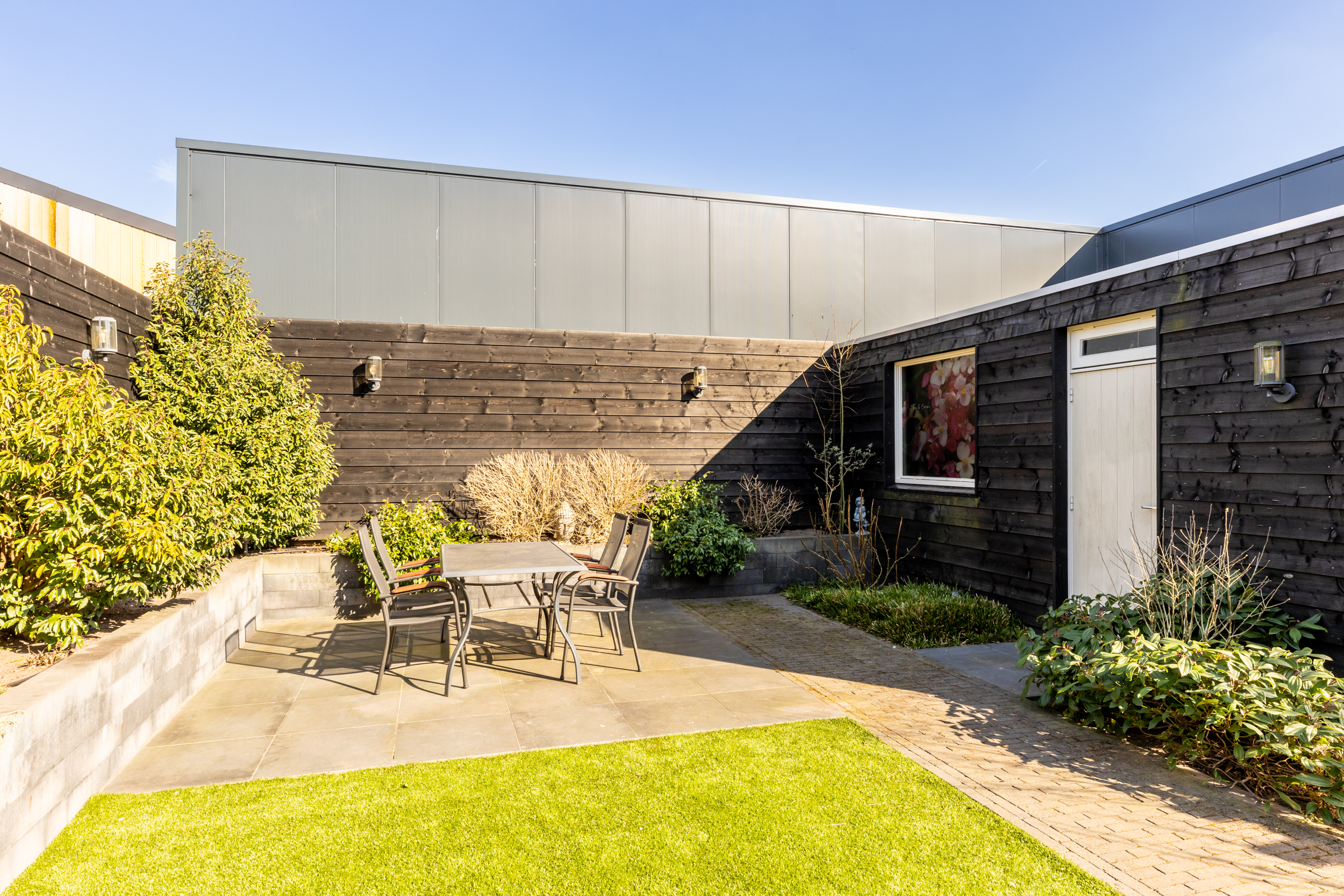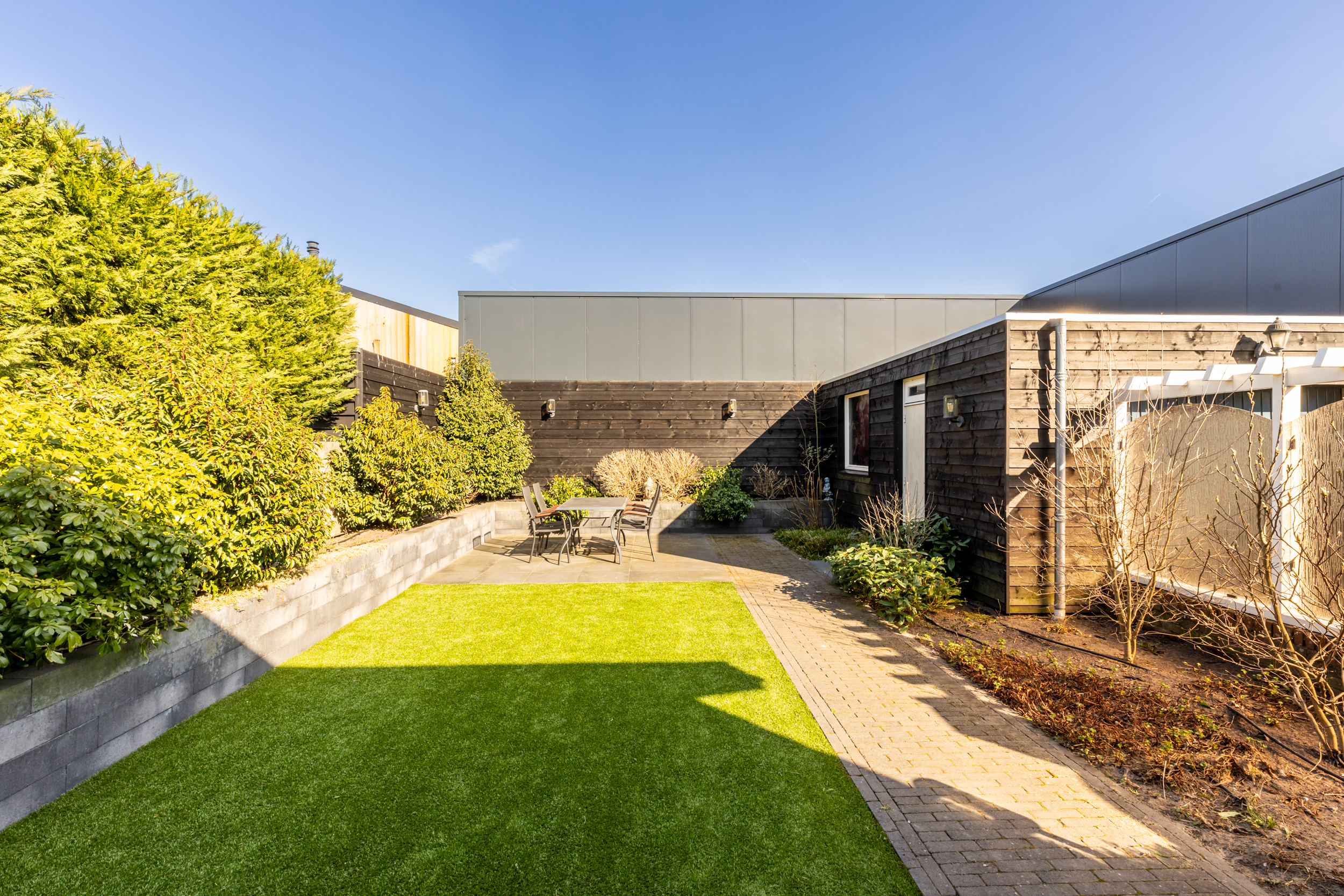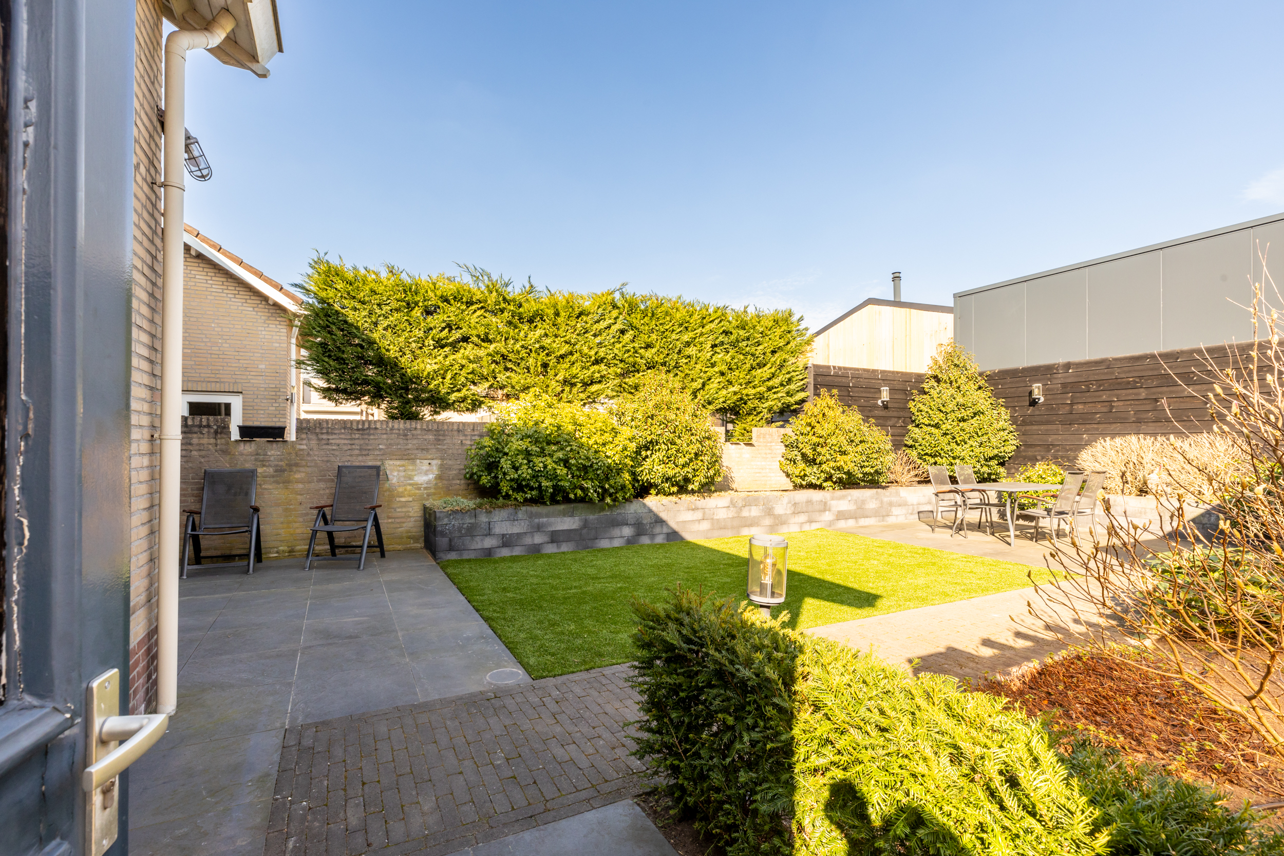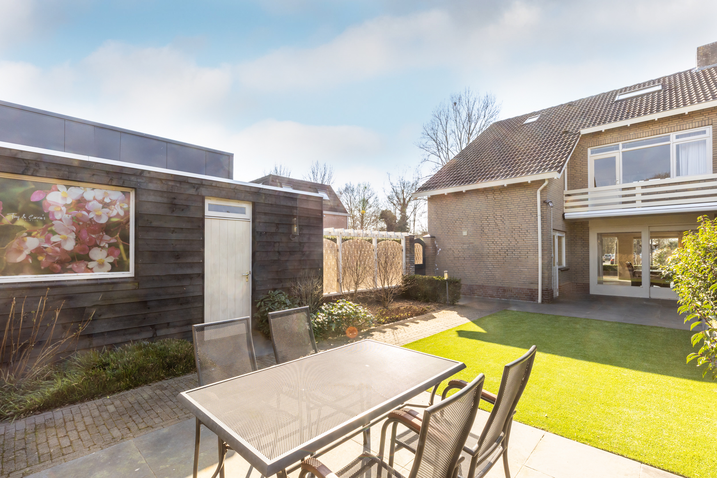 De woning beschikt over zowel een voor- als achtertuin, waarbij de achtertuin volop mogelijkheden biedt voor diverse terrassen, borders of andere tuininrichtingen. Daarnaast is er een praktische vrijstaande stenen garage van circa 20m2, ideaal voor het opbergen van tuingereedschap, fietsen of andere spullen.