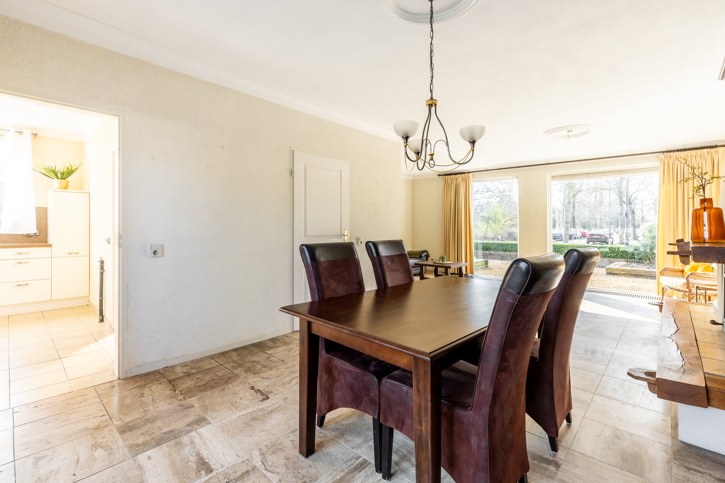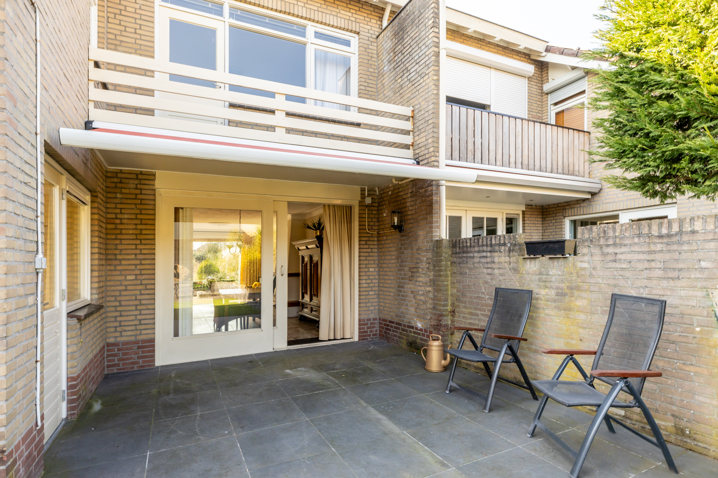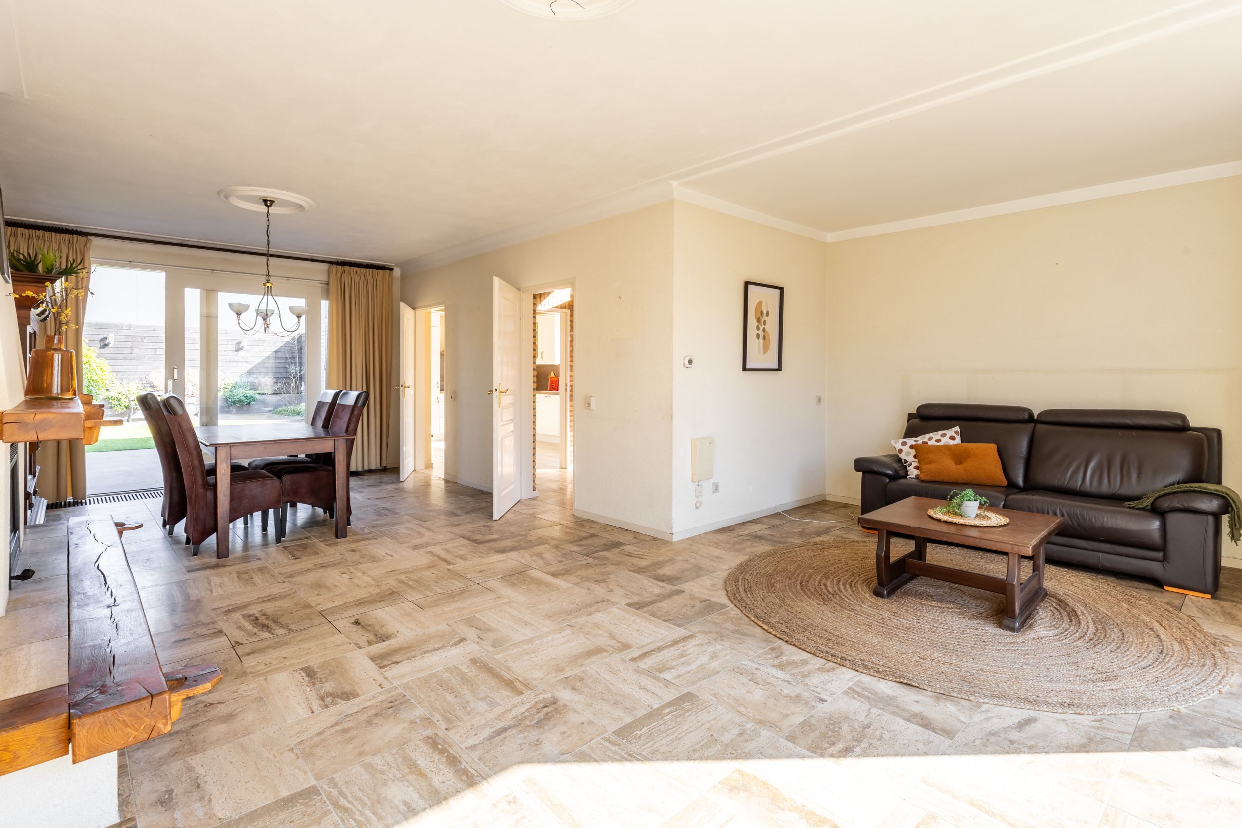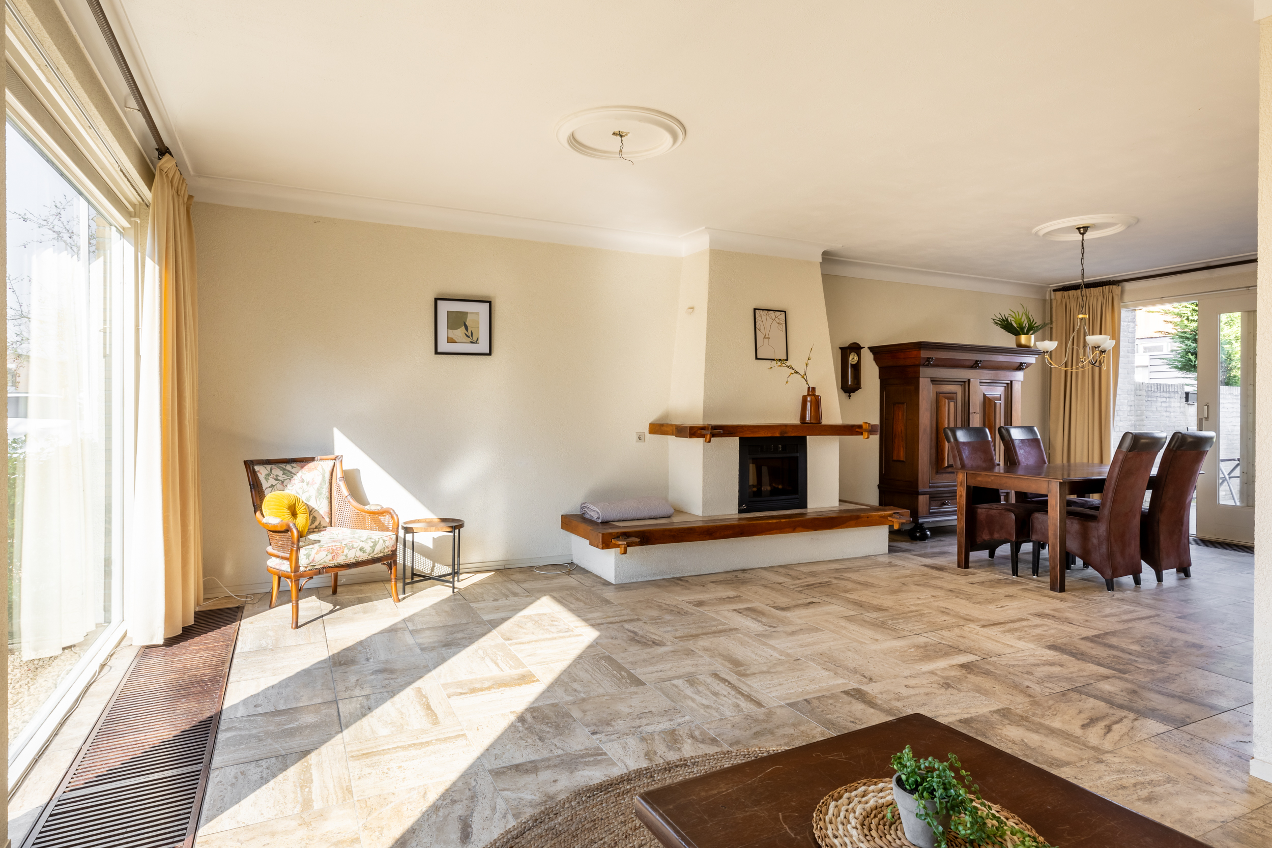 Door de grote ruimte heeft de woonkamer diverse indelingsmogelijkheden. De schouw met rookkanaal is nog functioneel, maar is al jaren niet meer in gebruik. Nu staat er een elektrische haard in voor een sfeervol vuurtje. Aan de achterzijde is een schuifpui aanwezig, welke uitkomt op het terras. Aan het balkon is een elektrisch bedienbare zonneluifel aangebracht.