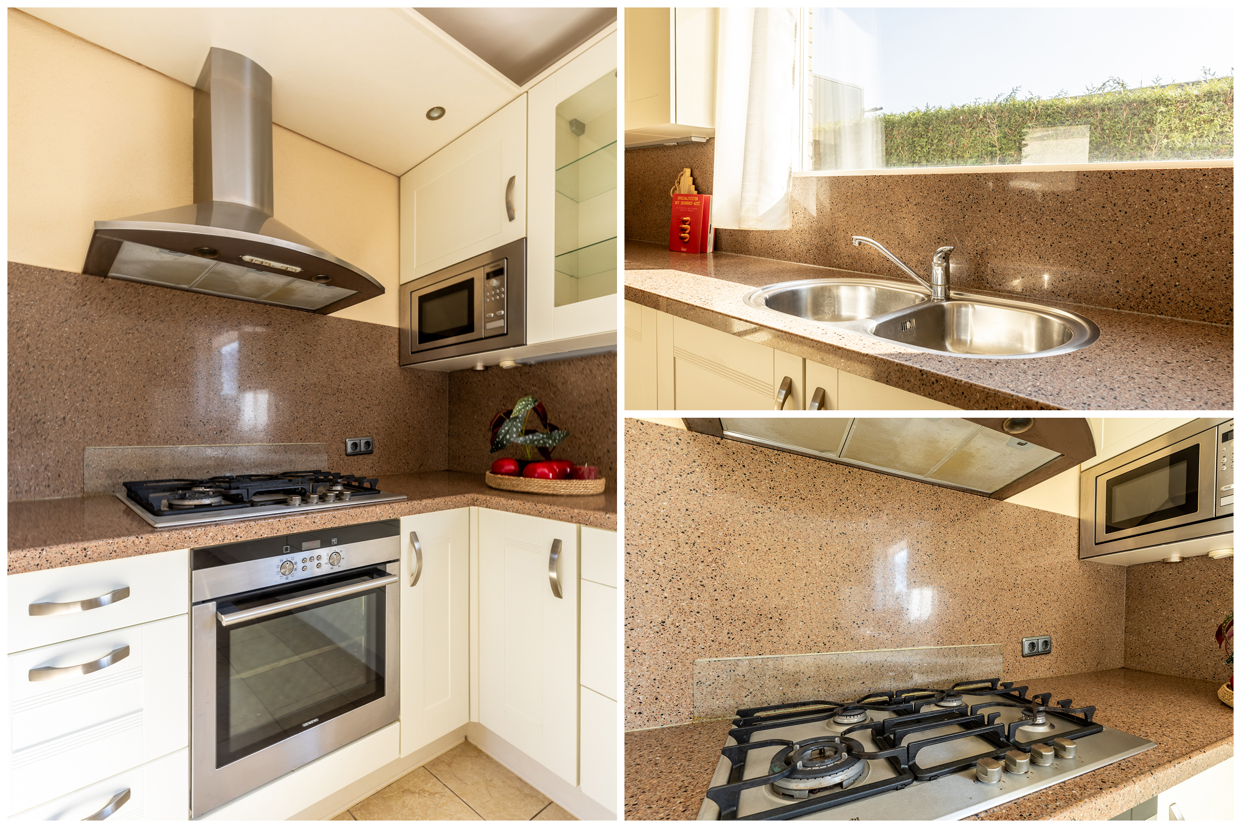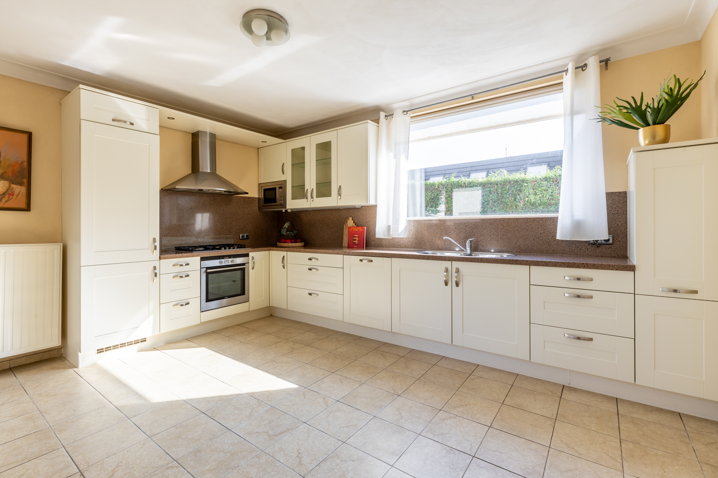 Vanuit de keuken is er directe toegang tot de tuin, het terras.