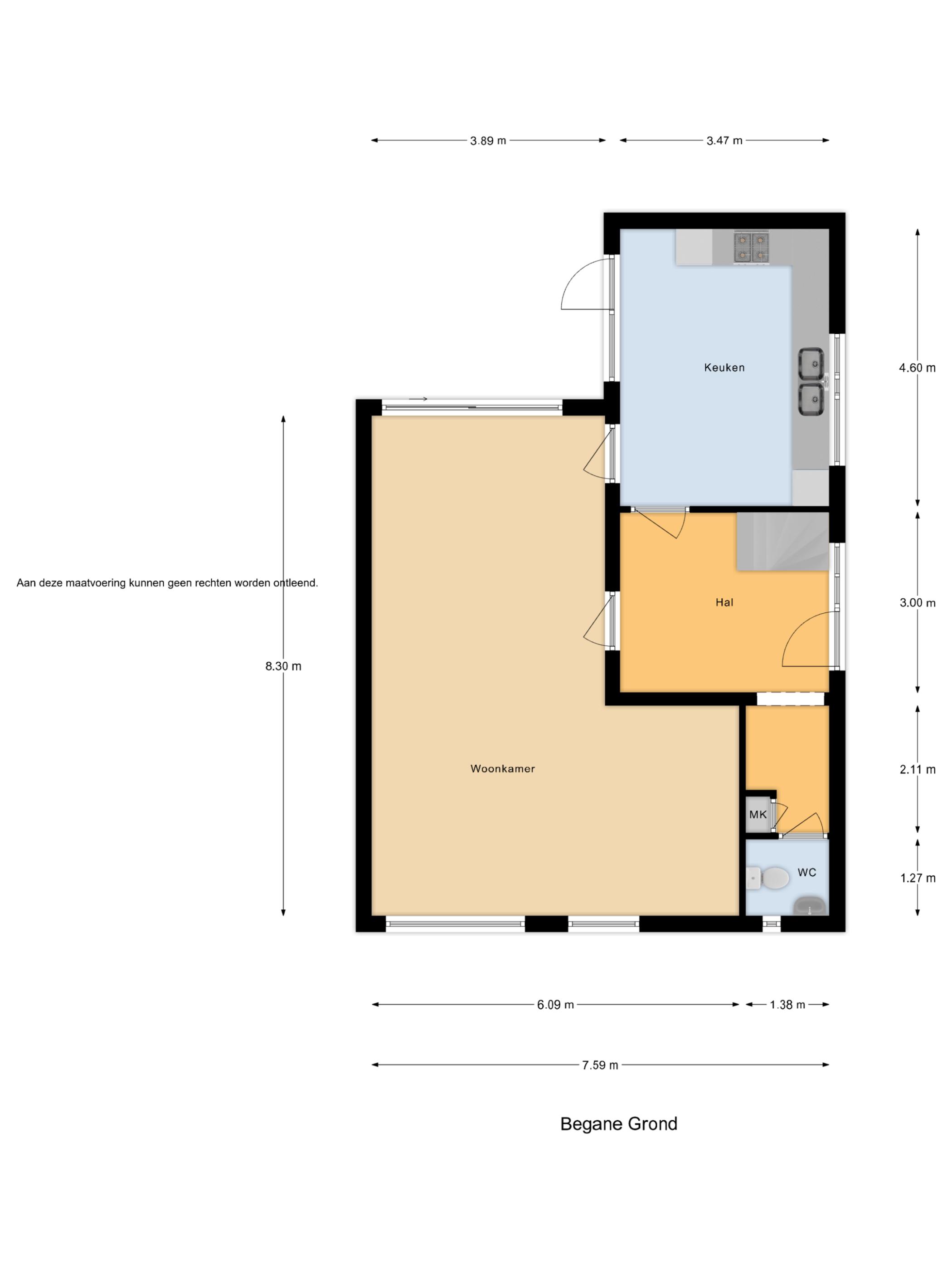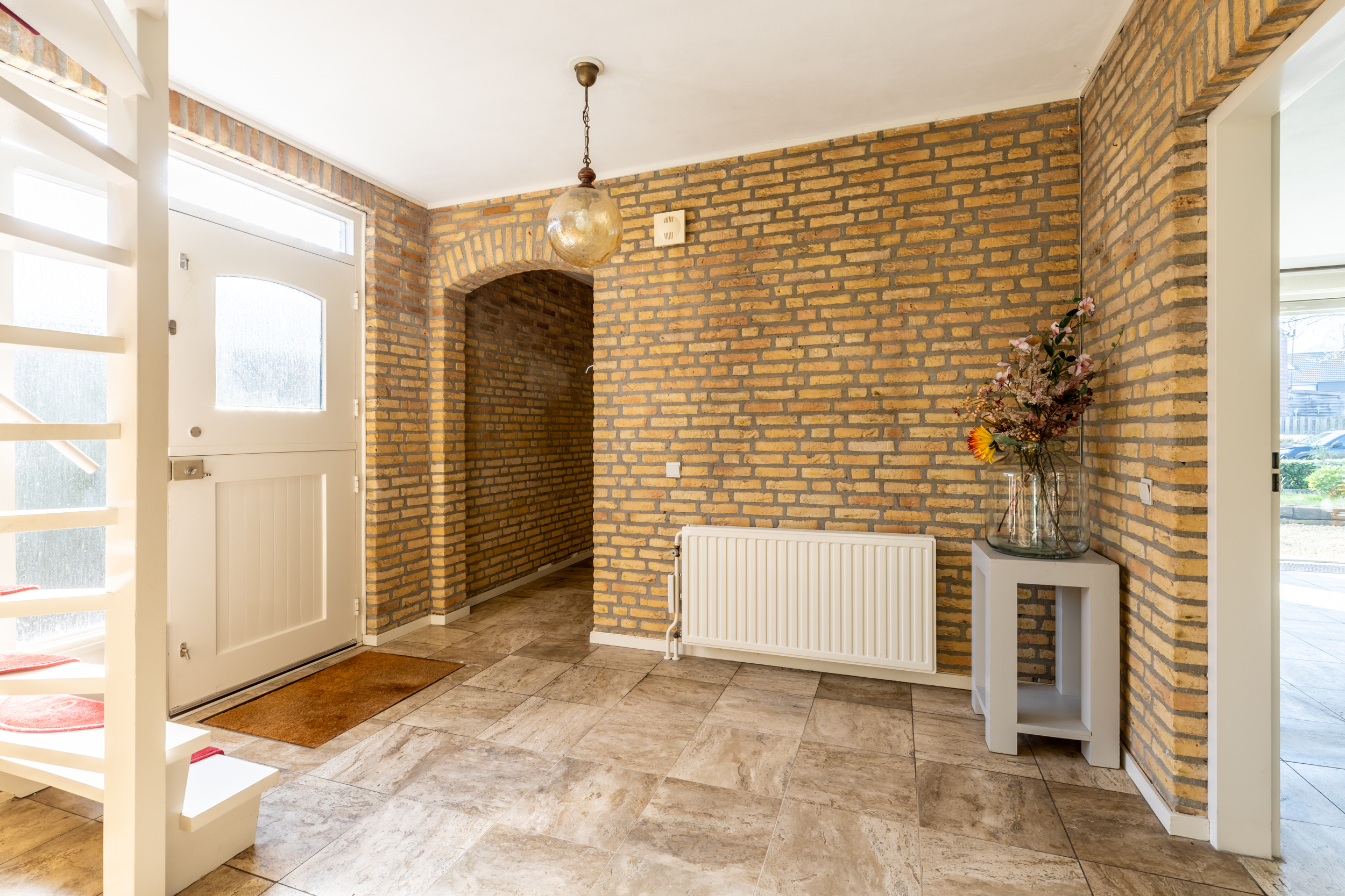 Royale lichte entree. Hal met meterkast en toilet, trapopgang naar de verdieping. Vanuit de hal zijn de woonkamer en de woonkeuken bereikbaar. De woonkeuken heeft een riant keukenmeubel met veel kastruimte en apparatuur. Zo is er aan inbouwapparatuur aanwezig een koelkast, een diepvries, een oven, een magnetron, een afzuigkap, een gaskookplaat, een vaatwasser en een dubbele spoelbak. Het werkblad is uitgevoerd in composiet. In de keuken is ook een wasmachine aansluiting aanwezig.