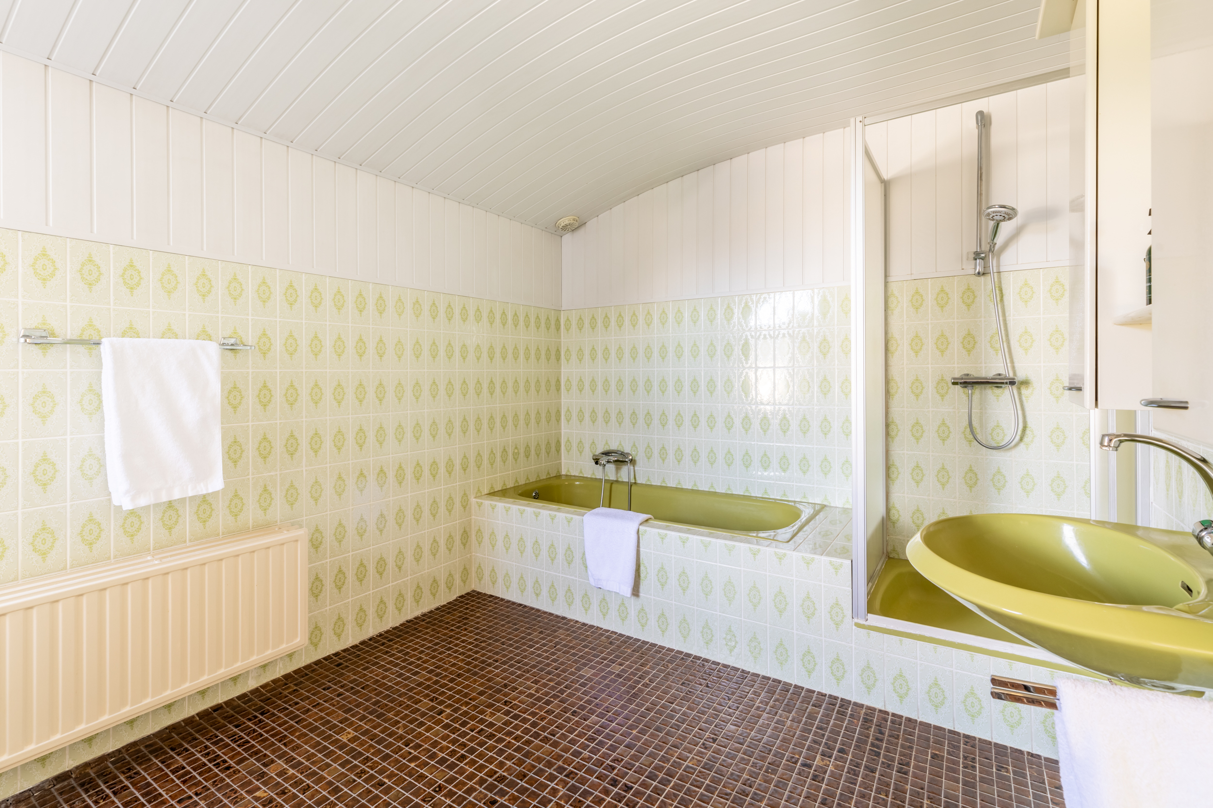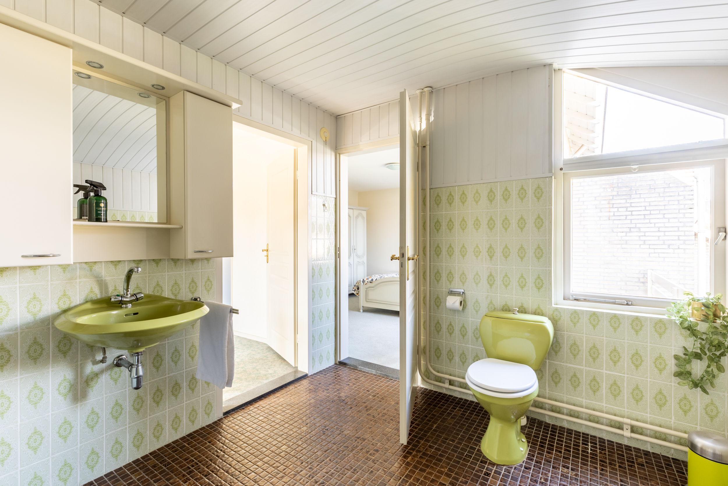 De riante badkamer (met mogelijkheid tot nog meer ruimte indien een wand wordt verwijderd en er extra ruimte bijkomt) is voorzien van een douchecabine, een toilet, een ligbad en een wastafel. Het aanwezige raam zorgt voor een natuurlijke lichtinval en ventilatie.