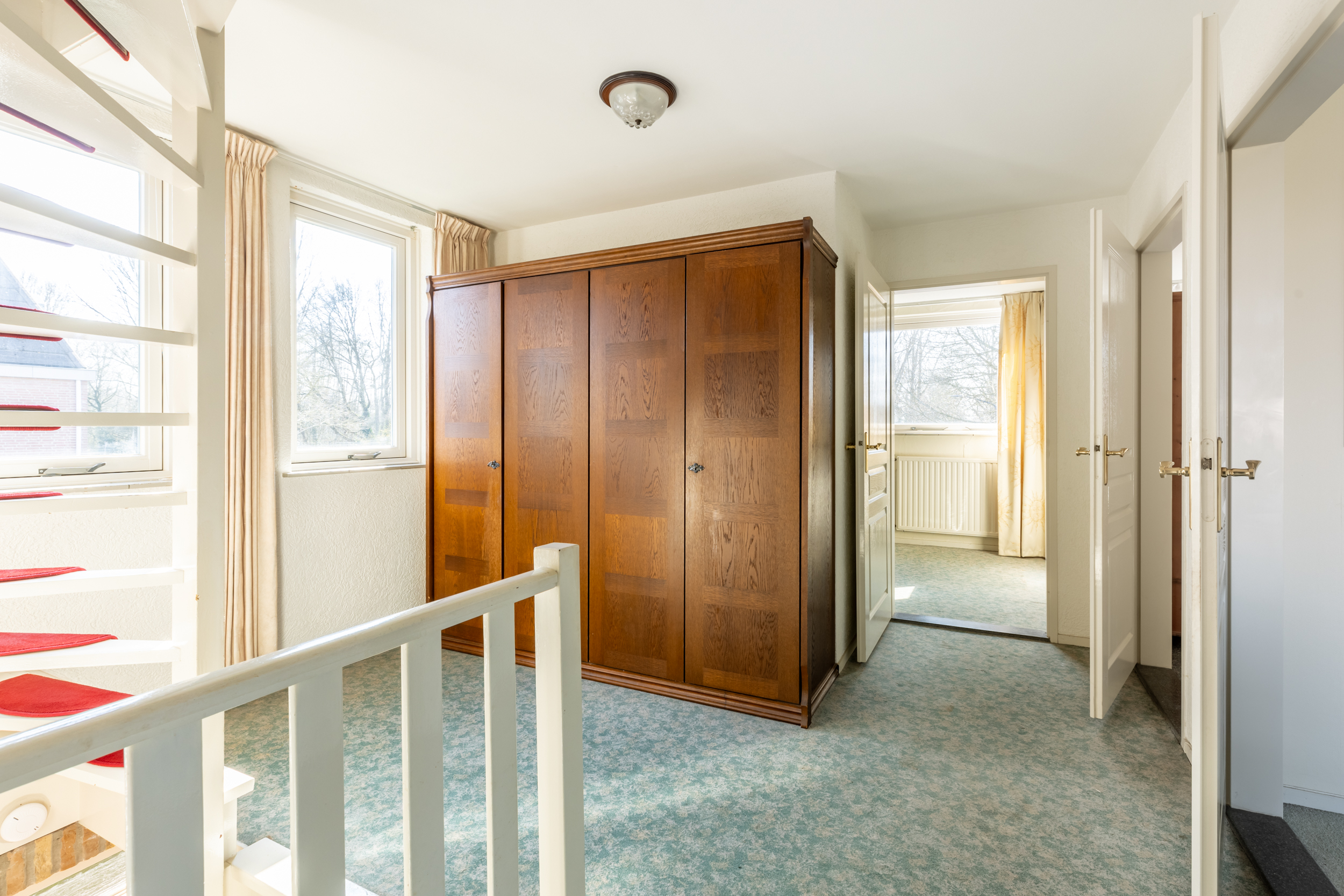 Via de vaste trap bereik je de overloop op de eerste verdieping, die toegang biedt tot drie slaapkamers en de badkamer. Daarnaast is er via een vaste trap naar de tweede verdieping.