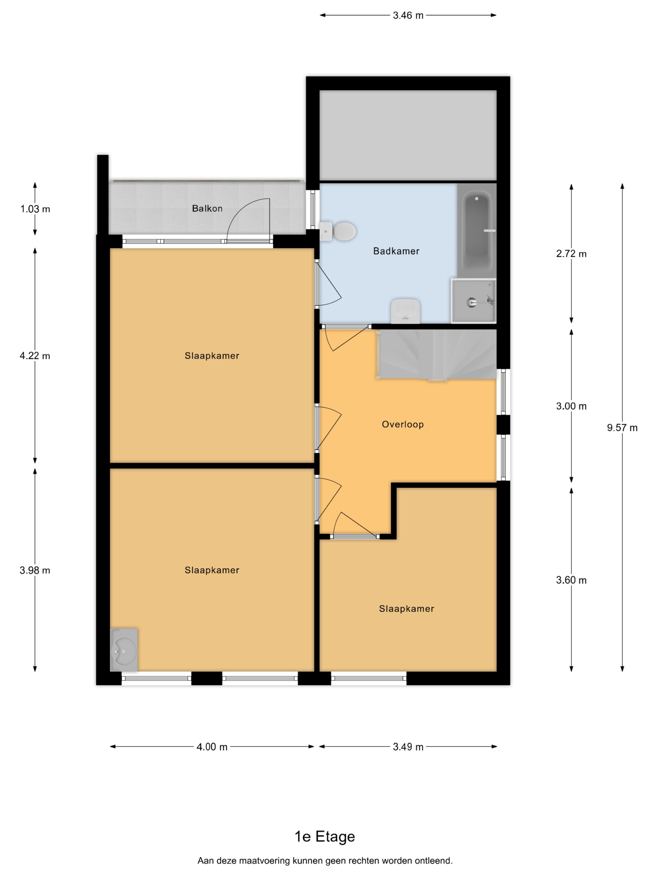 Alle drie de slaapkamers zijn voorzien van radiatoren, waarvan één slaapkamer een wastafel heeft. De hoofdslaapkamer bevindt zich aan de achterzijde van de woning en heeft toegang tot het balkon.