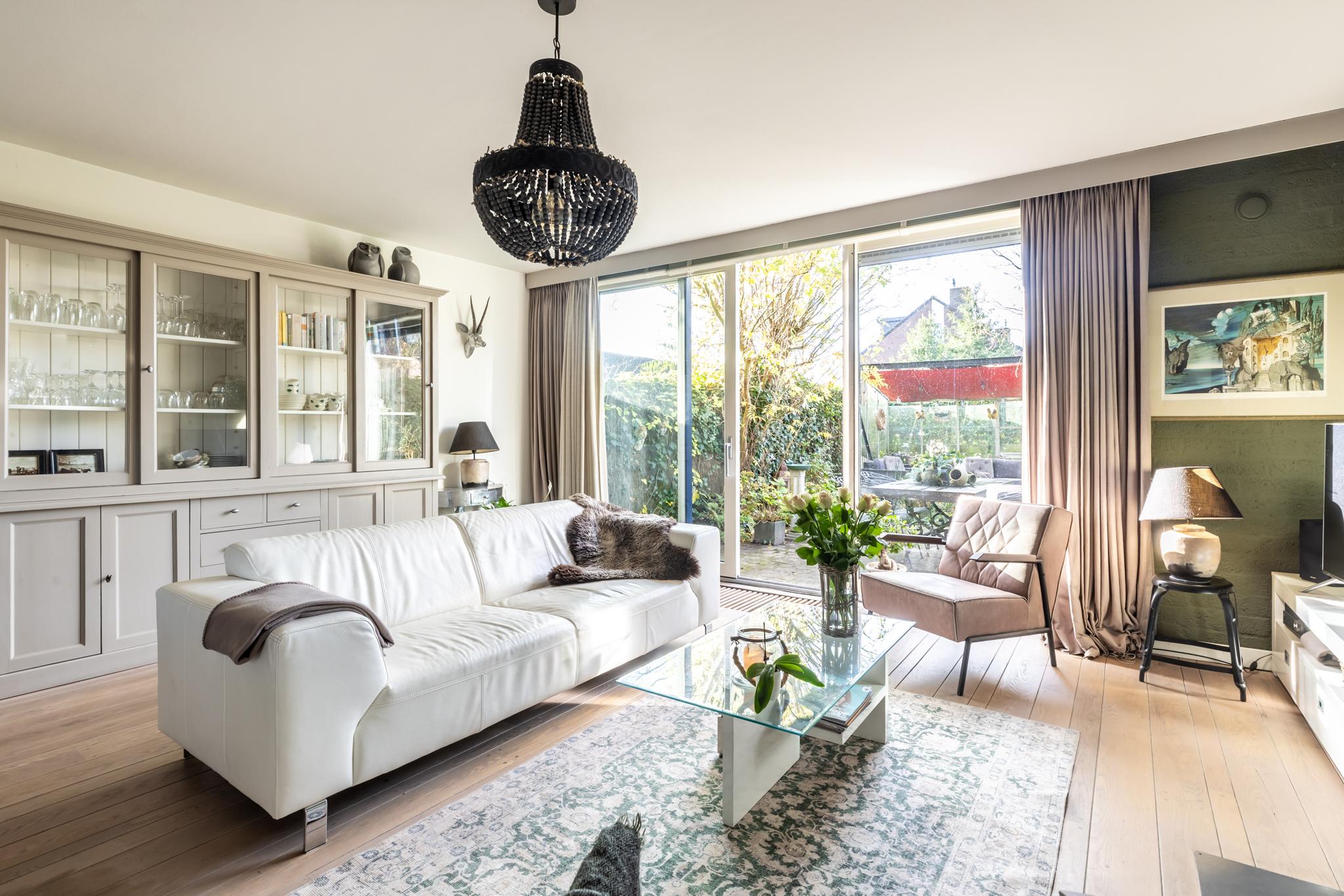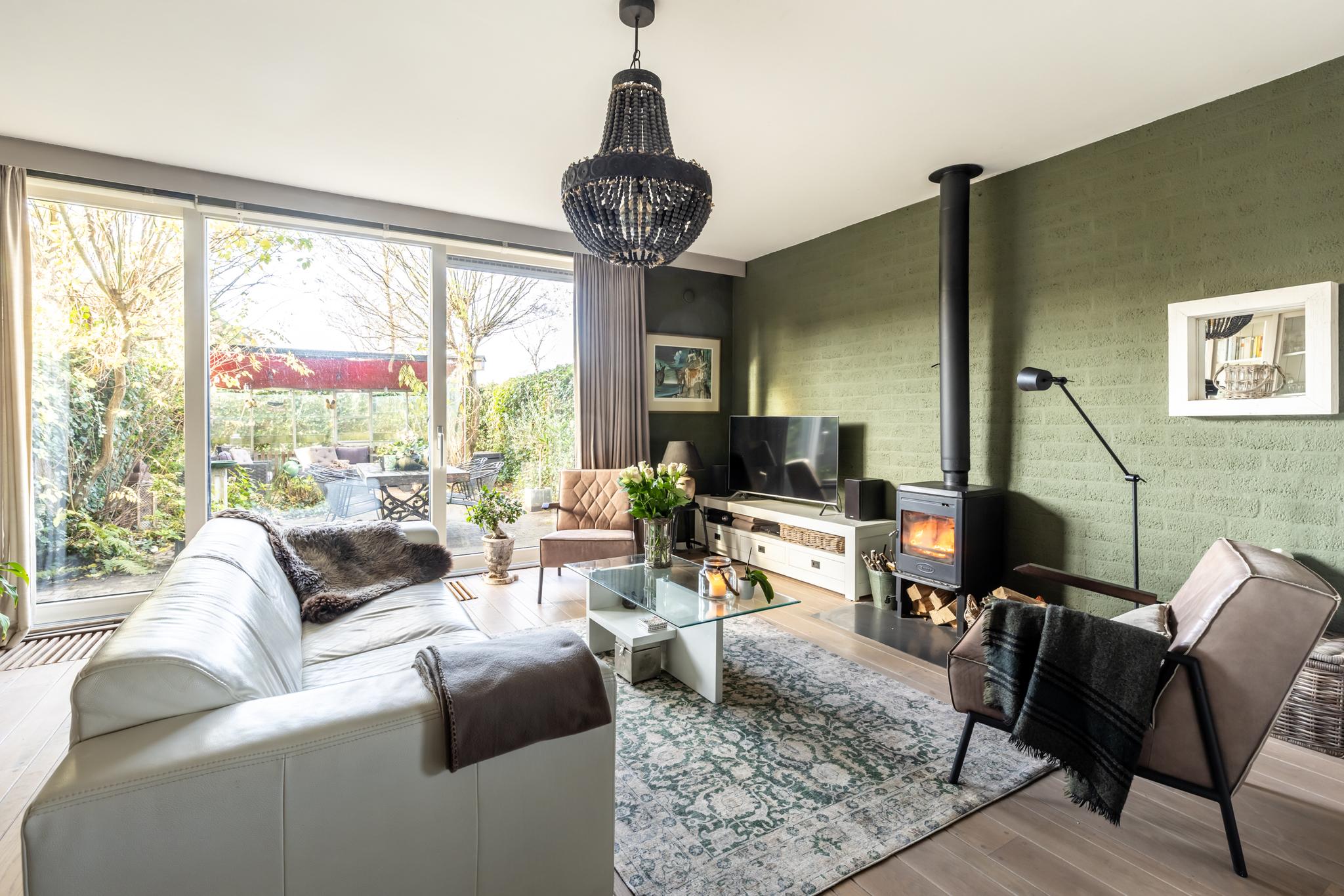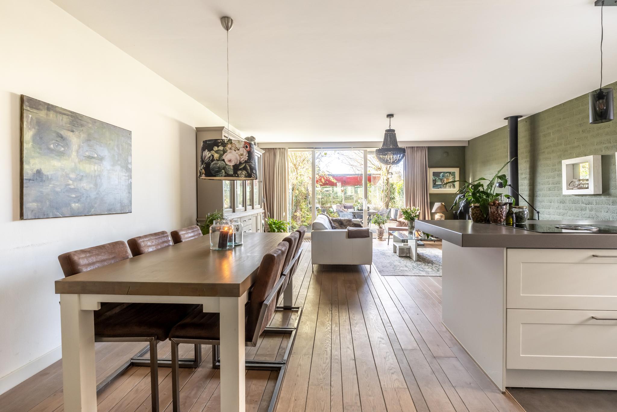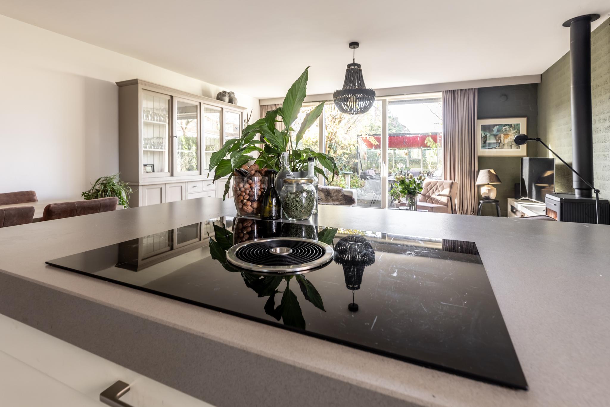De sfeervolle living heeft een open uitstraling en biedt veel indelingsvrijheid. Dankzij de grote schuifpui is er veel lichtinval en directe toegang tot de zonnige achtertuin op het westen. De halfopen keuken heeft uitzicht op de tuin en biedt volop werk- en opbergruimte. Met de luxe apparatuur kookt u met gemak voor uw gezin of gasten.