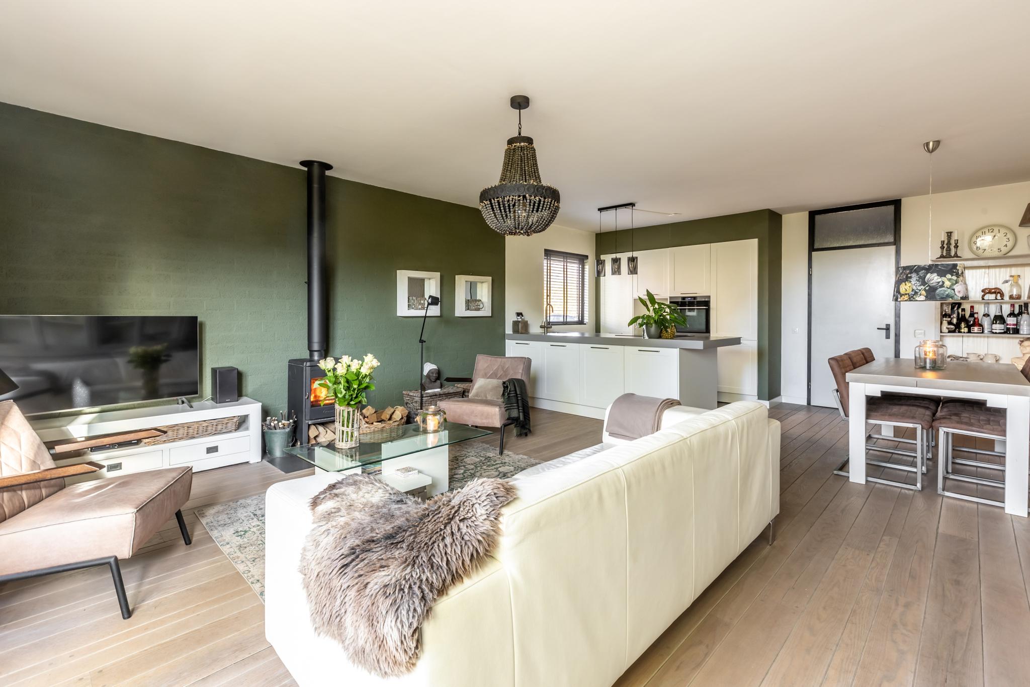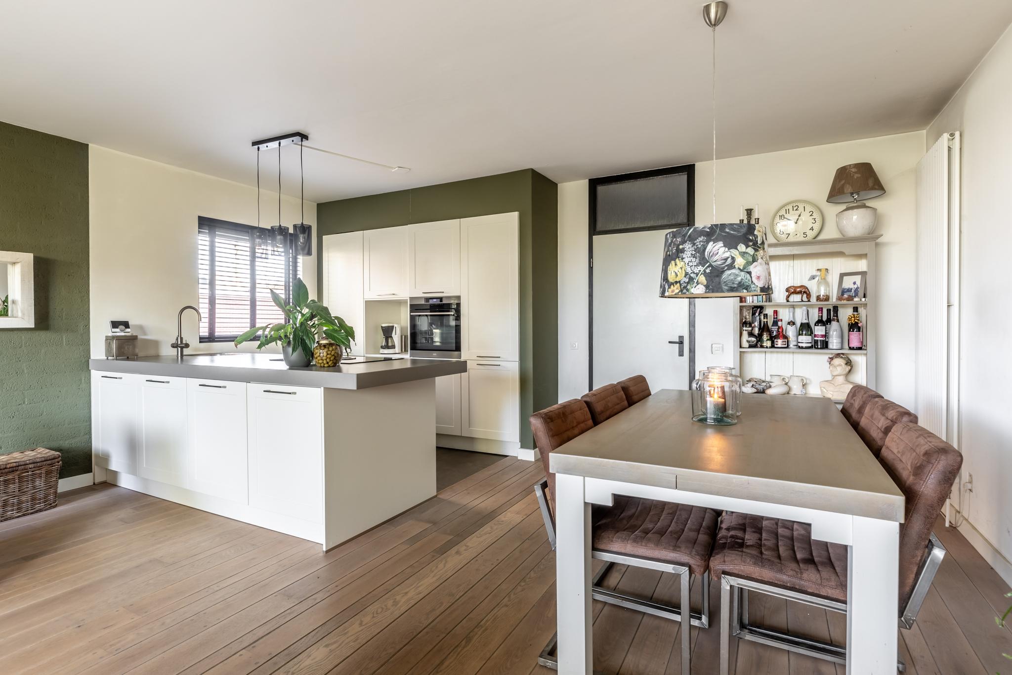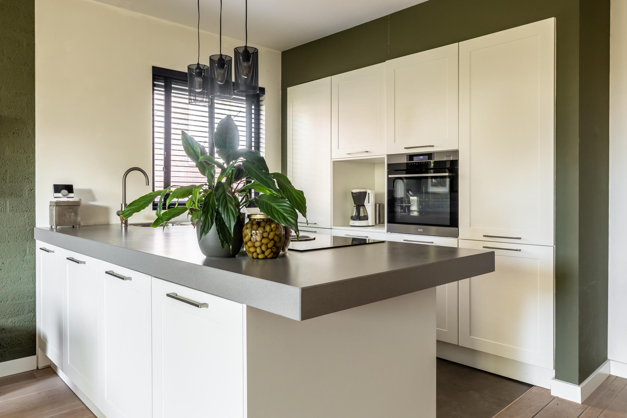 De sfeervolle living heeft een open uitstraling en biedt veel indelingsvrijheid. Dankzij de grote schuifpui is er veel lichtinval en directe toegang tot de zonnige achtertuin op het westen. De halfopen keuken heeft uitzicht op de tuin en biedt volop werk- en opbergruimte. Met de luxe apparatuur kookt u met gemak voor uw gezin of gasten.