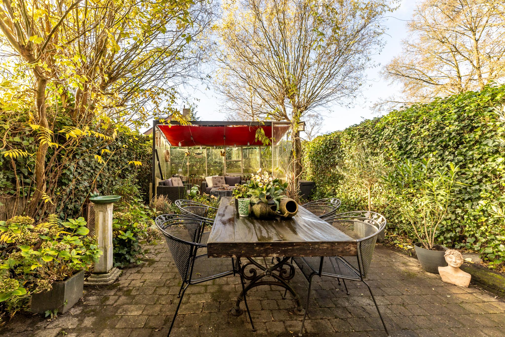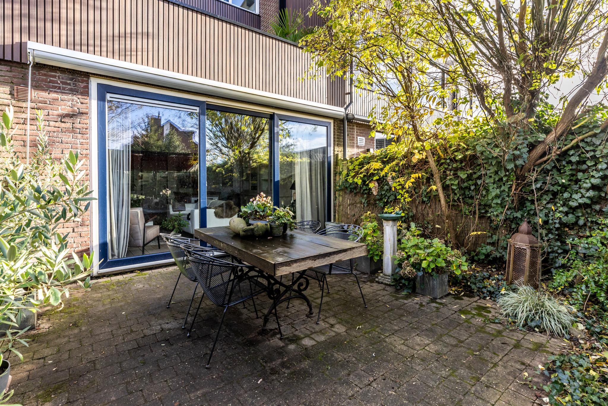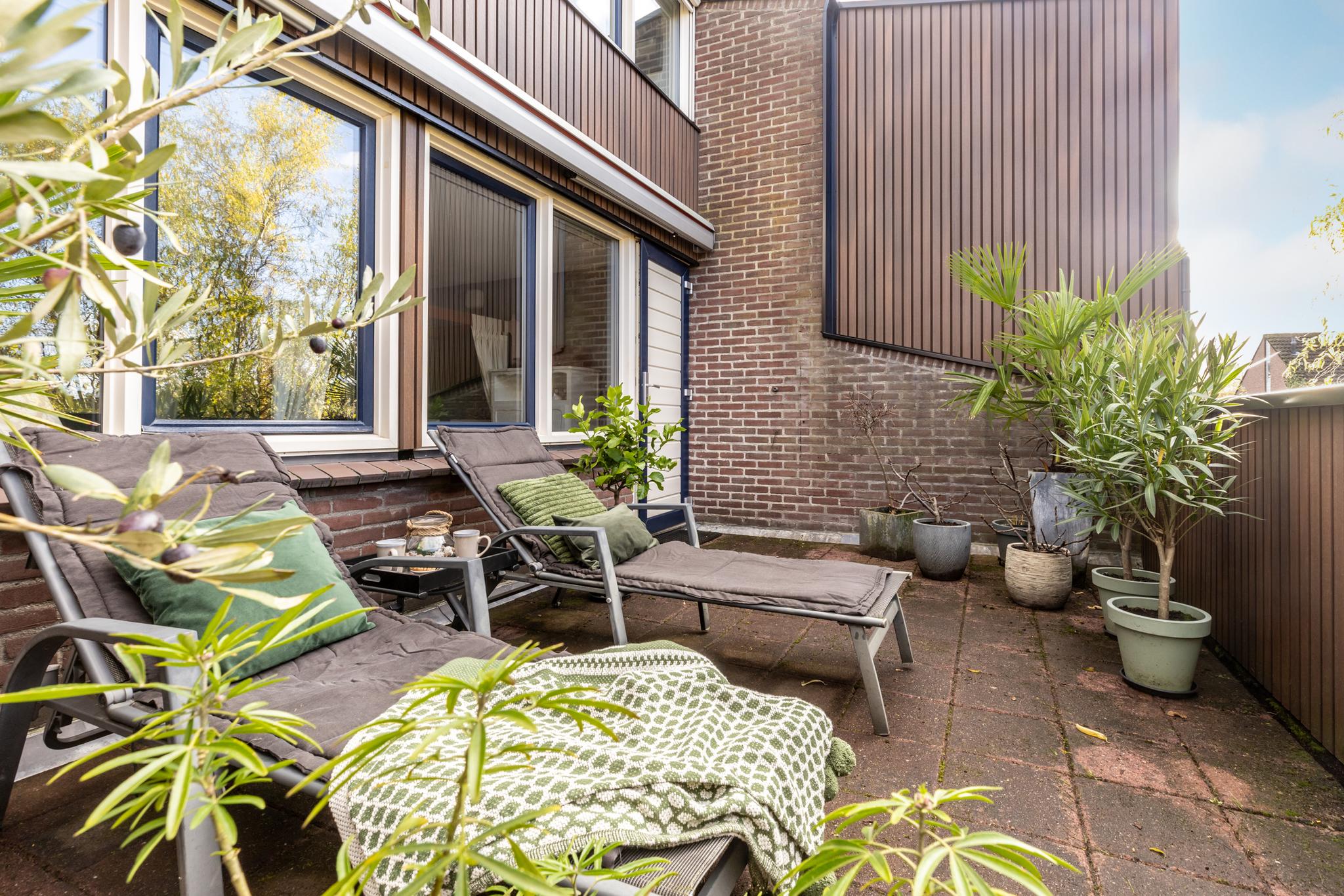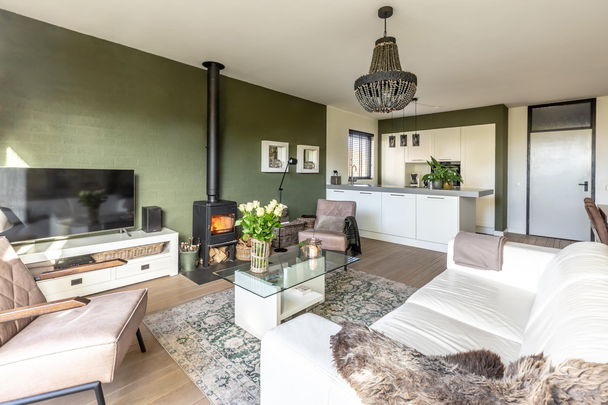 De sfeervolle living heeft een open uitstraling en biedt veel indelingsvrijheid. Dankzij de grote schuifpui is er veel lichtinval en directe toegang tot de zonnige achtertuin op het westen. De halfopen keuken heeft uitzicht op de tuin en biedt volop werk- en opbergruimte. Met de luxe apparatuur kookt u met gemak voor uw gezin of gasten.