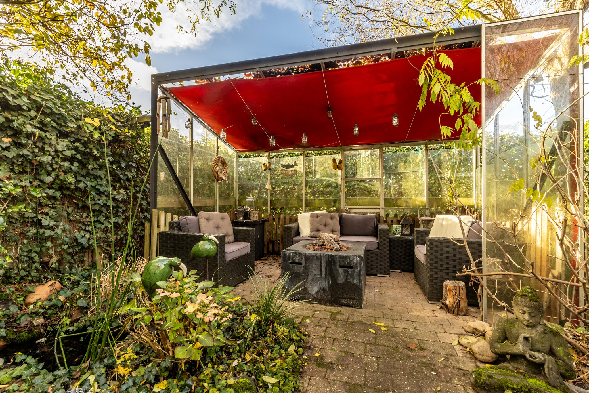 De tuin is bereikbaar via de schuifpui in de woonkamer en ligt op het westen, waardoor u kunt genieten van zowel de middag- als avondzon. De tuin is onderhoudsvriendelijk ingericht met betegeling en borders met groenblijvende beplanting. Aan de achterzijde van de woning is een ruime parkeerplaats met voldoende parkeergelegenheid voor uw gasten.