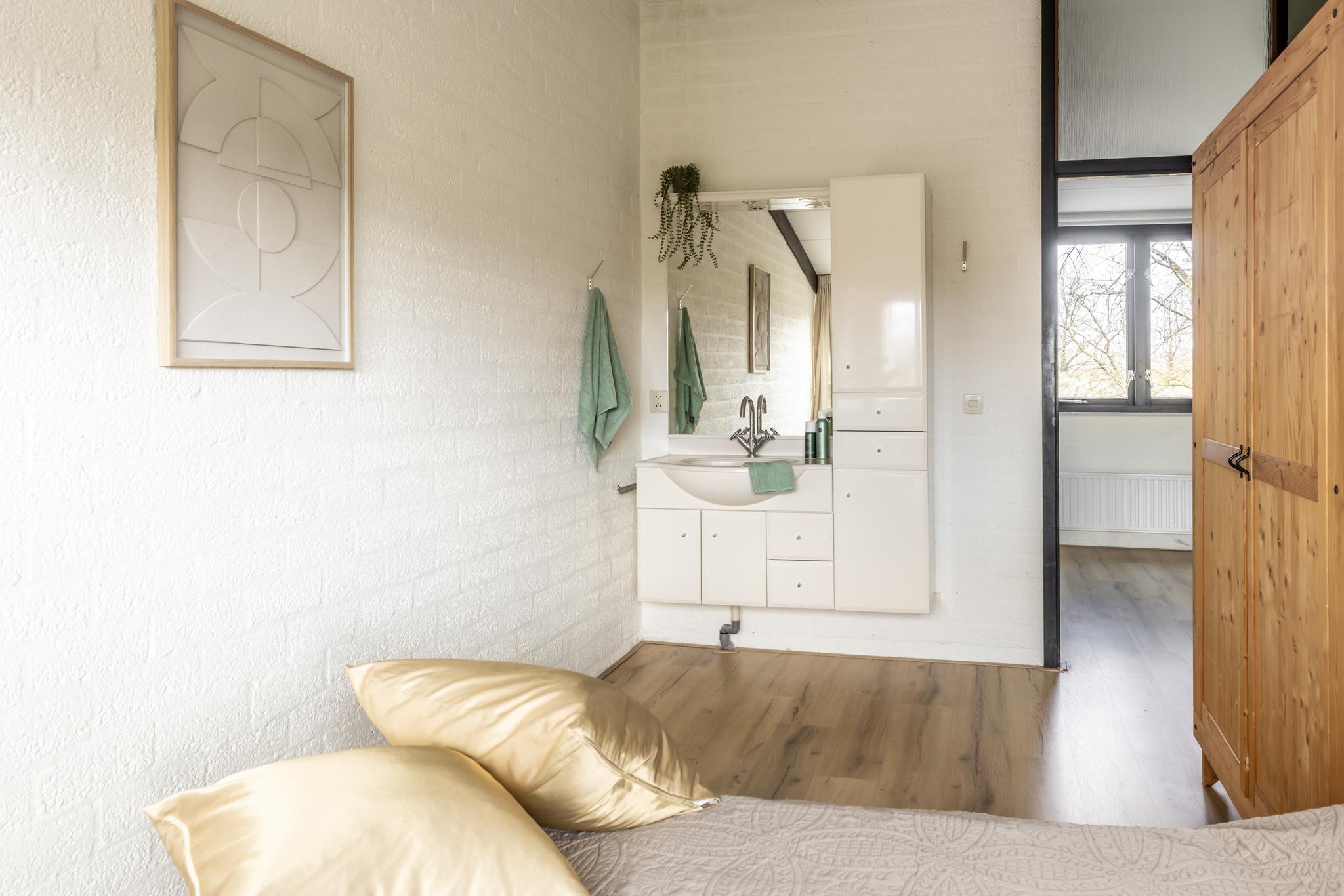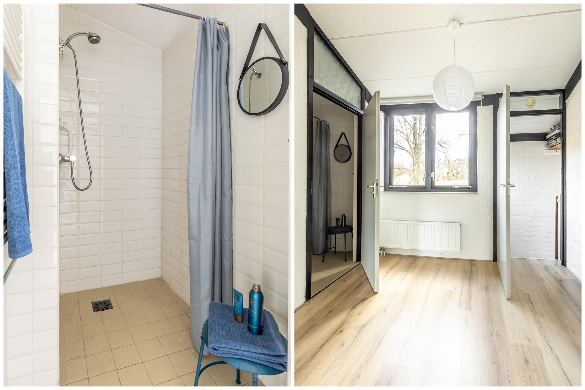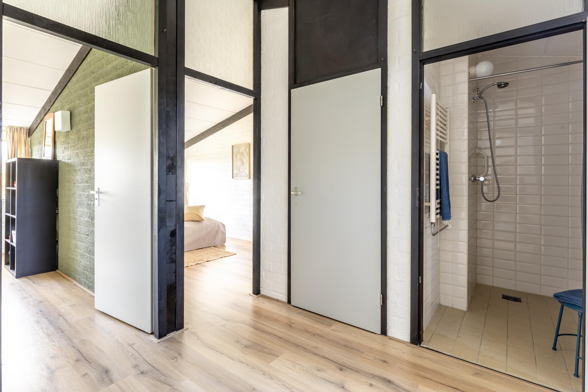 Via een vaste trap bereikt u de tweede verdieping. De ruime overloop leidt naar twee verrassend ruime slaapkamers, een royale doucheruimte en een technische ruimte met binnenunit van de warmtepomp en bergruimtes. De slaapkamers hebben een fijne lichtinval en bieden veel mogelijkheden.