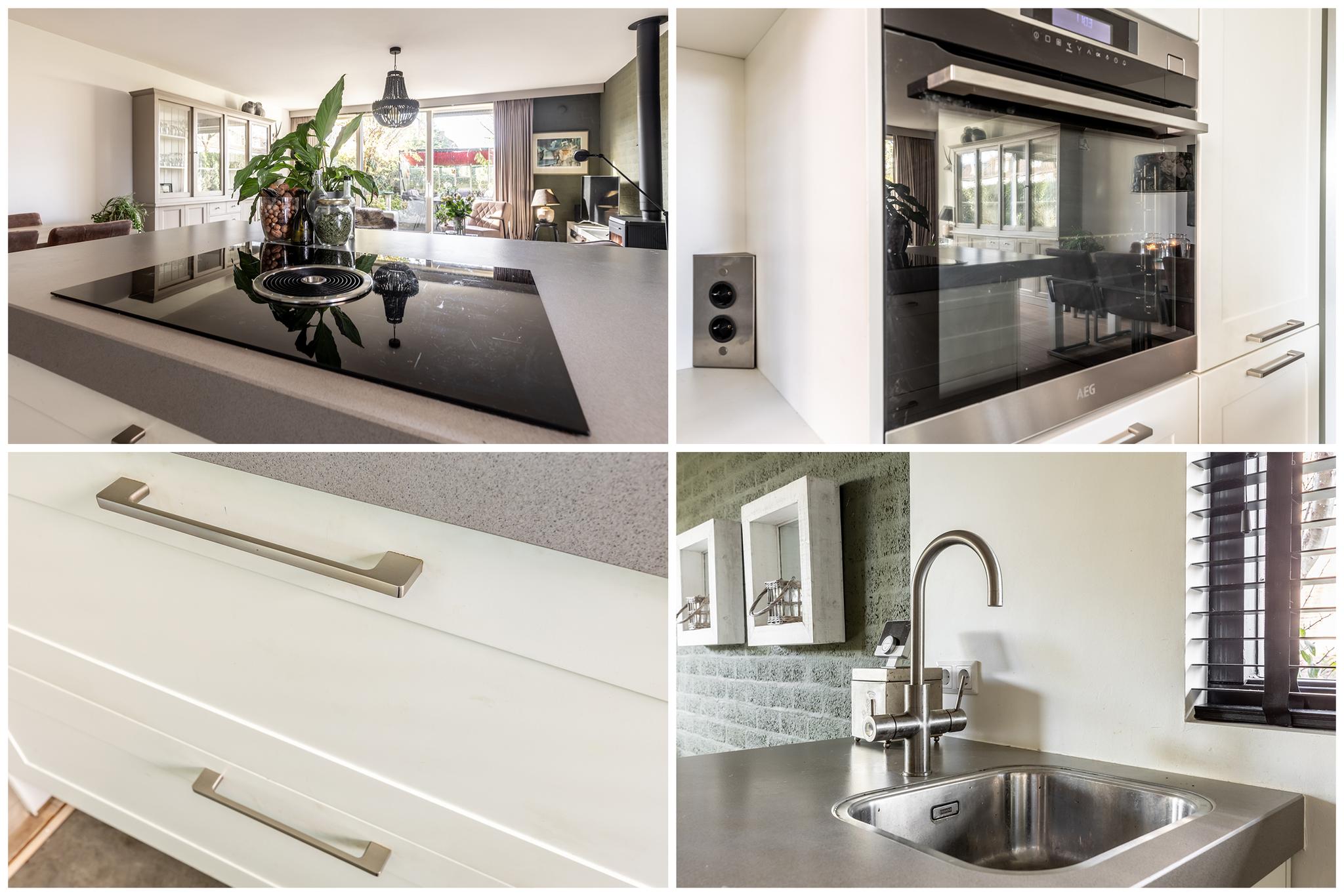- Luxe keuken (2019) met Bora inductiekookplaat, combi-oven/magnetron, vaatwasser, Quooker en koel-/vriescombinatie;