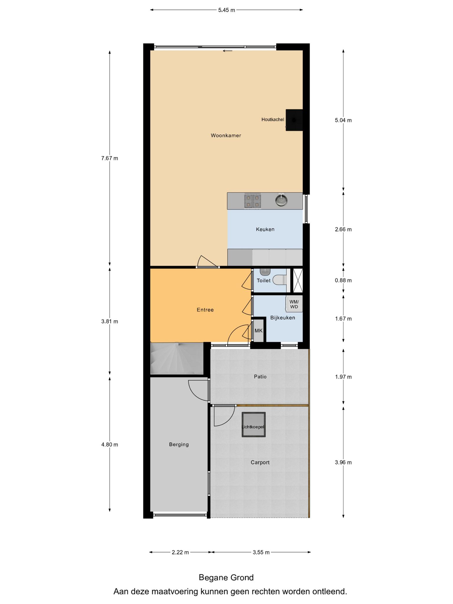 Via de carport bereikt u de entree van de woning. Hier is voldoende ruimte om uw auto te parkeren en geeft u toegang tot de royale berging aan de voorzijde van de woning gelegen.