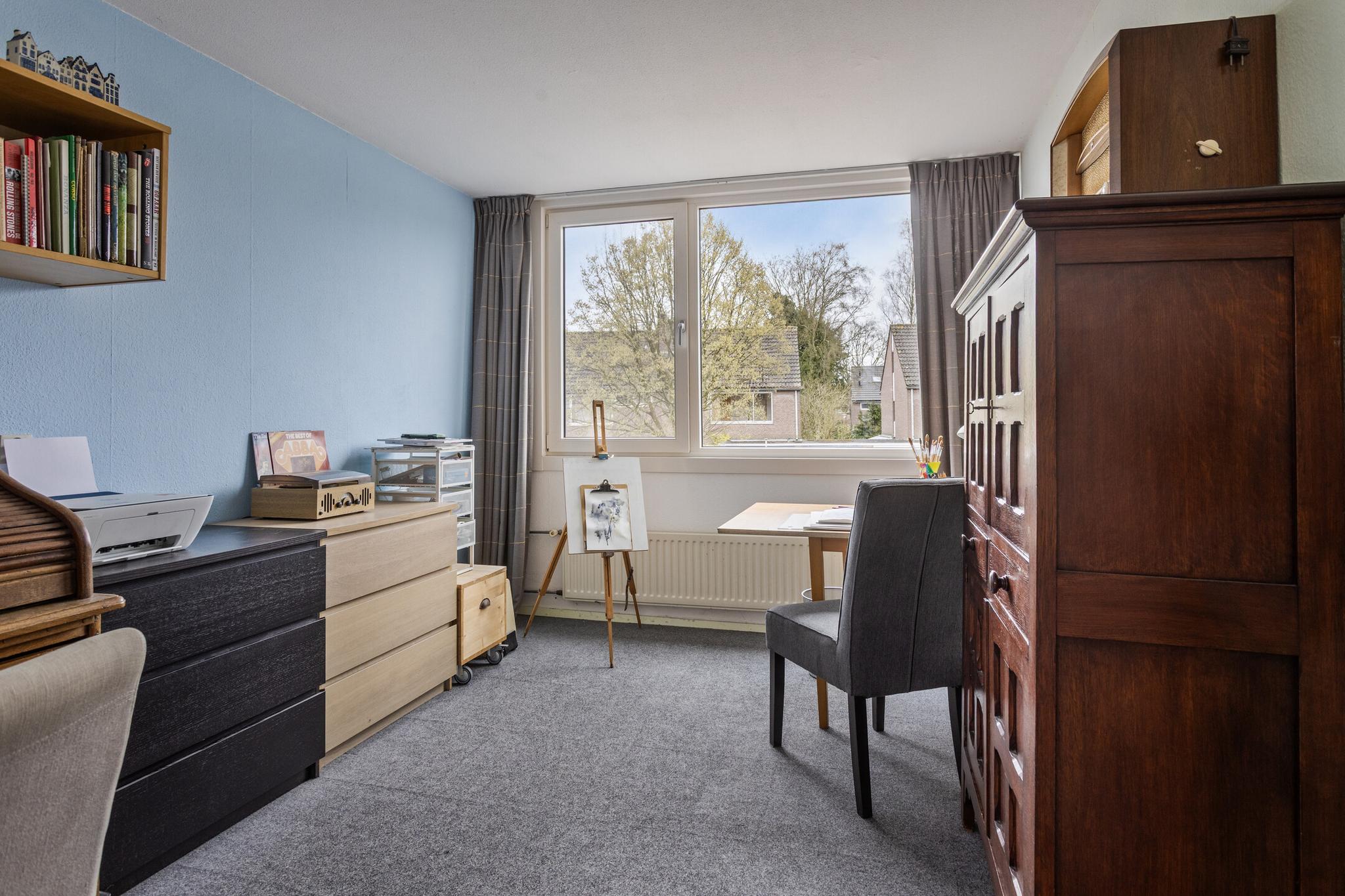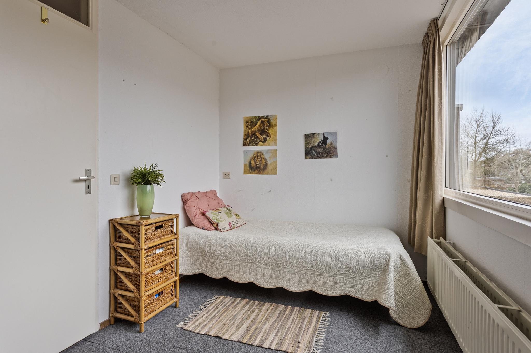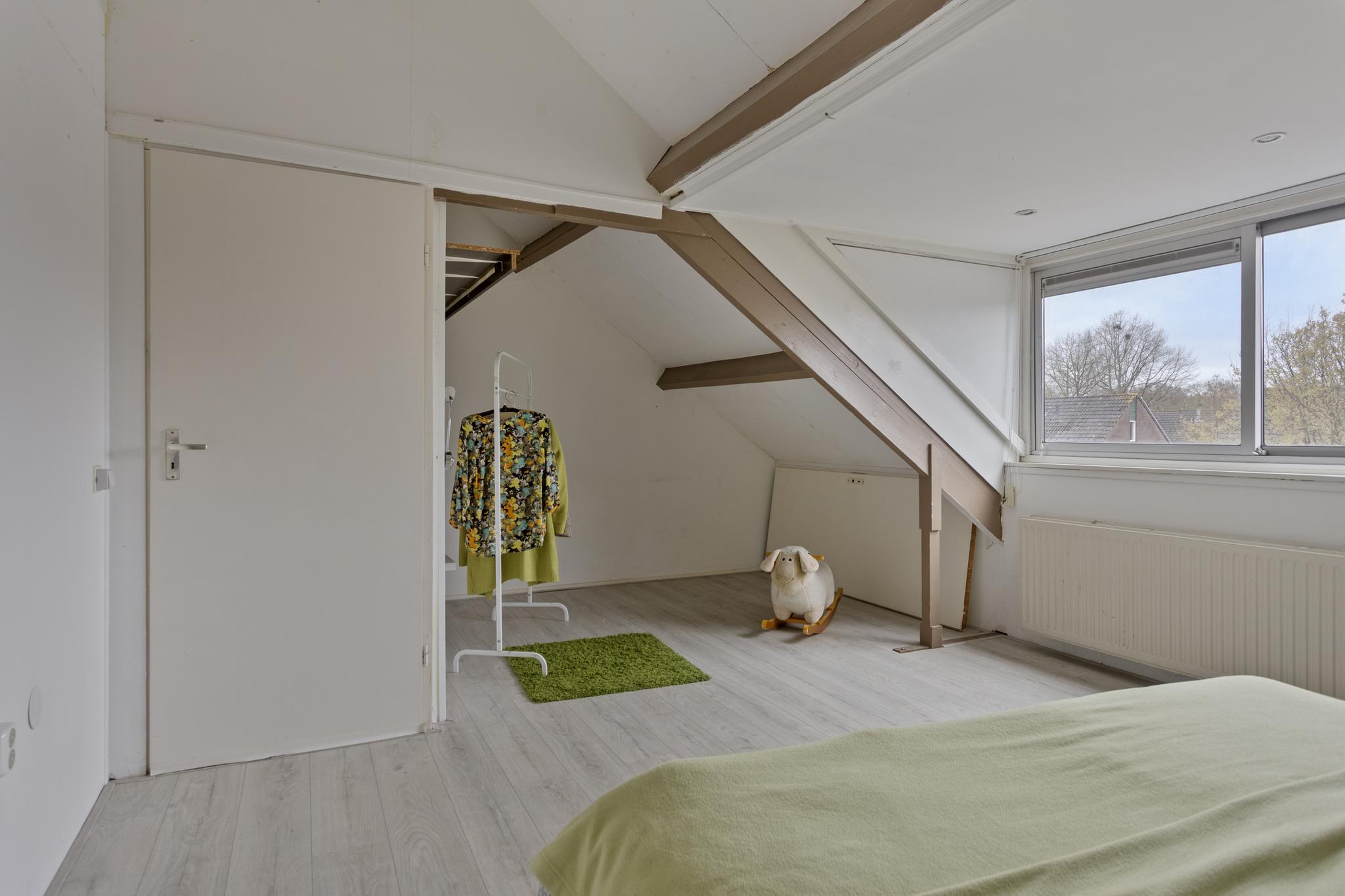 De tweede verdieping is met een vaste trap bereikbaar. De overloop biedt toegang tot een ruime vierde slaapkamer. De vierde slaapkamer met dakkapel is aan de achterzijde gelegen. Een grote, volwaardige extra kamer voorzien van laminaatvloer. Tevens is er nog een extra bergruimte gecreëerd met opstelling van CV ketel, mechanisch ventilatiesysteem en de omvormer voor de zonnepanelen.