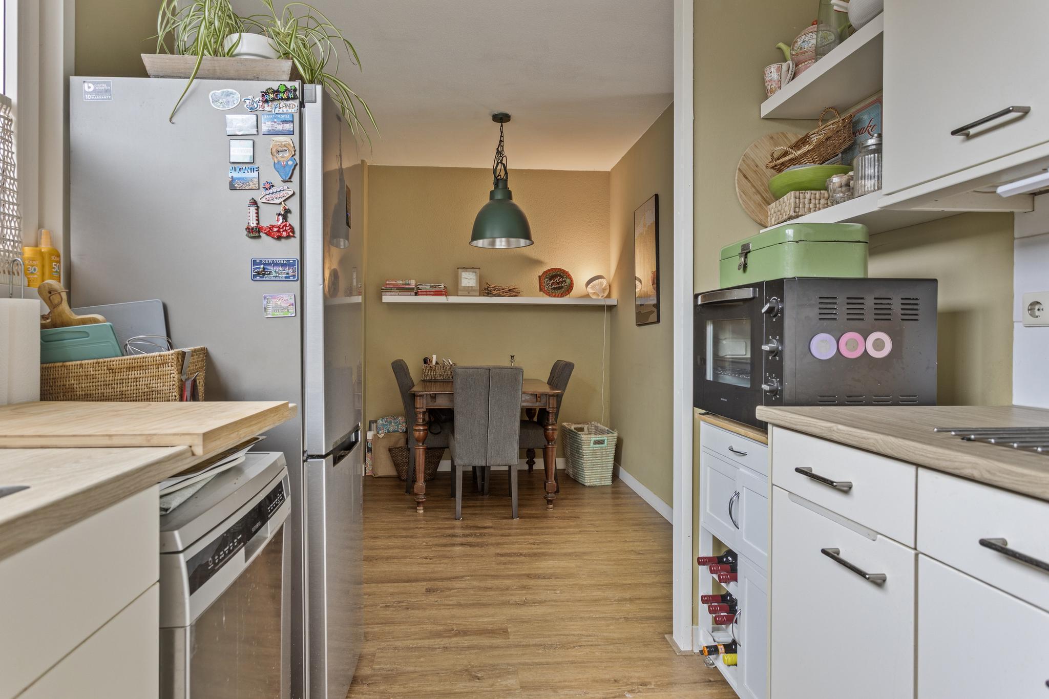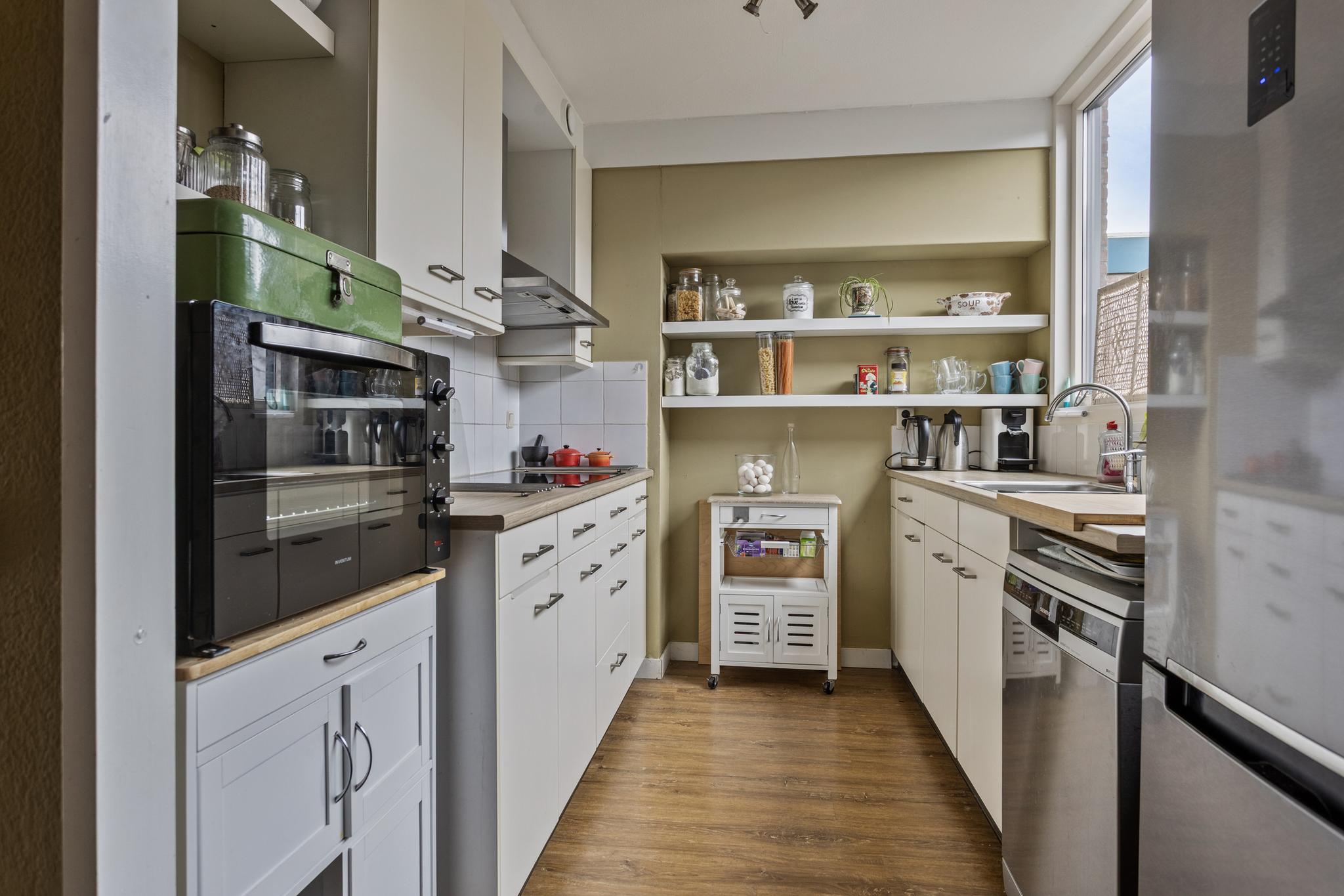 De keuken is praktisch ingericht met twee tegenover elkaar geplaatste keukenblokken, wat zorgt voor een efficiënte en veel werkruimte. De keuken is uitgerust met een 5-pits inductiekookplaat, een afzuigkap van Siemens en een losse Siemens-vaatwasser. Dankzij het grote raam valt er volop daglicht binnen, wat deze keuken tot een prettige plek maakt om te koken én te leven. Naast de keuken is er een mogelijkheid voor een studyhoek, speelhoek of voor het plaatsen van een tweede eettafel.
