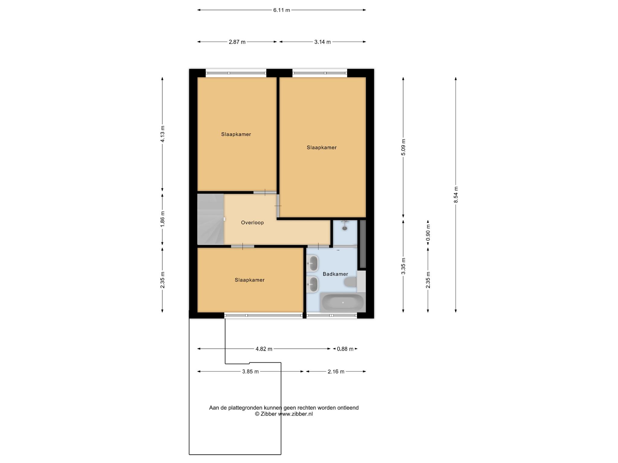 Op de eerste verdieping is er toegang tot de 3 ruime slaapkamers, de badkamer en vaste trap naar de tweede verdieping. De twee grote slaapkamers liggen aan de achterzijde van de woning en de derde (kleinere) aan de voorzijde.