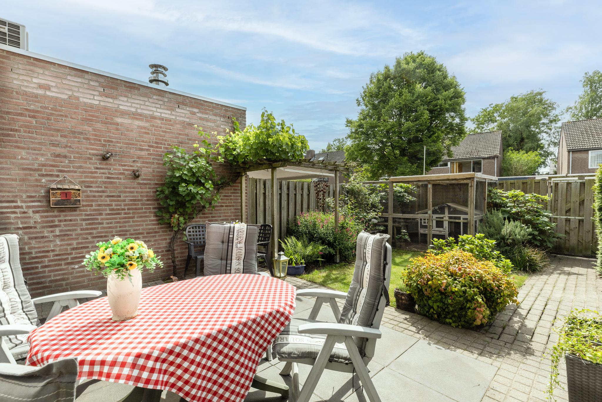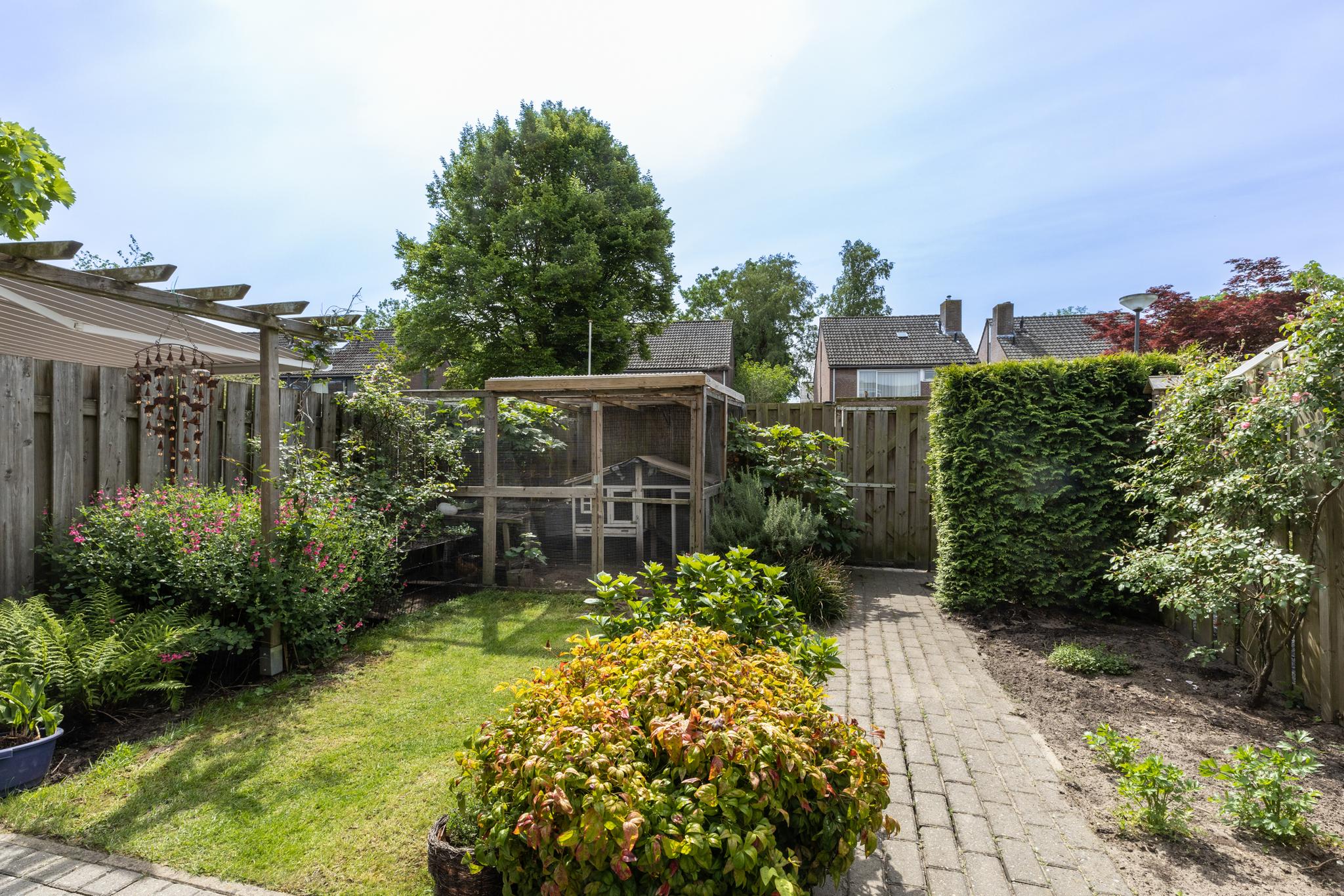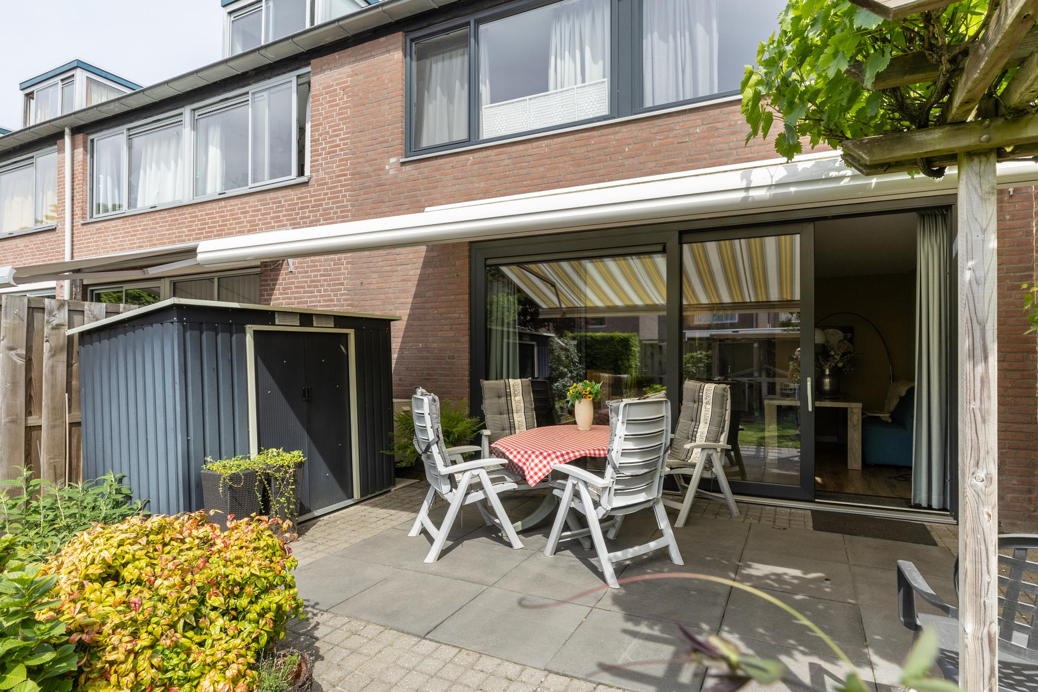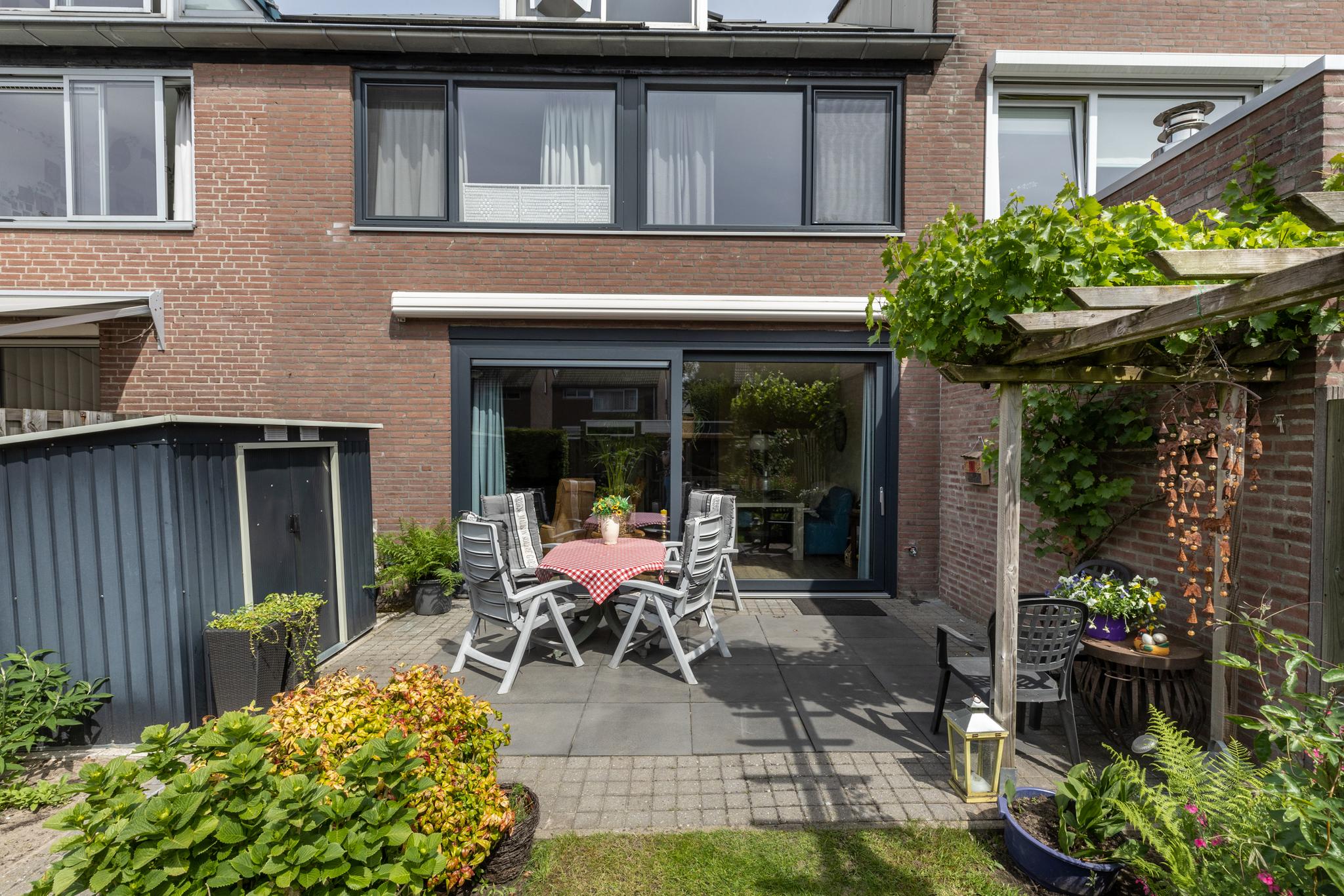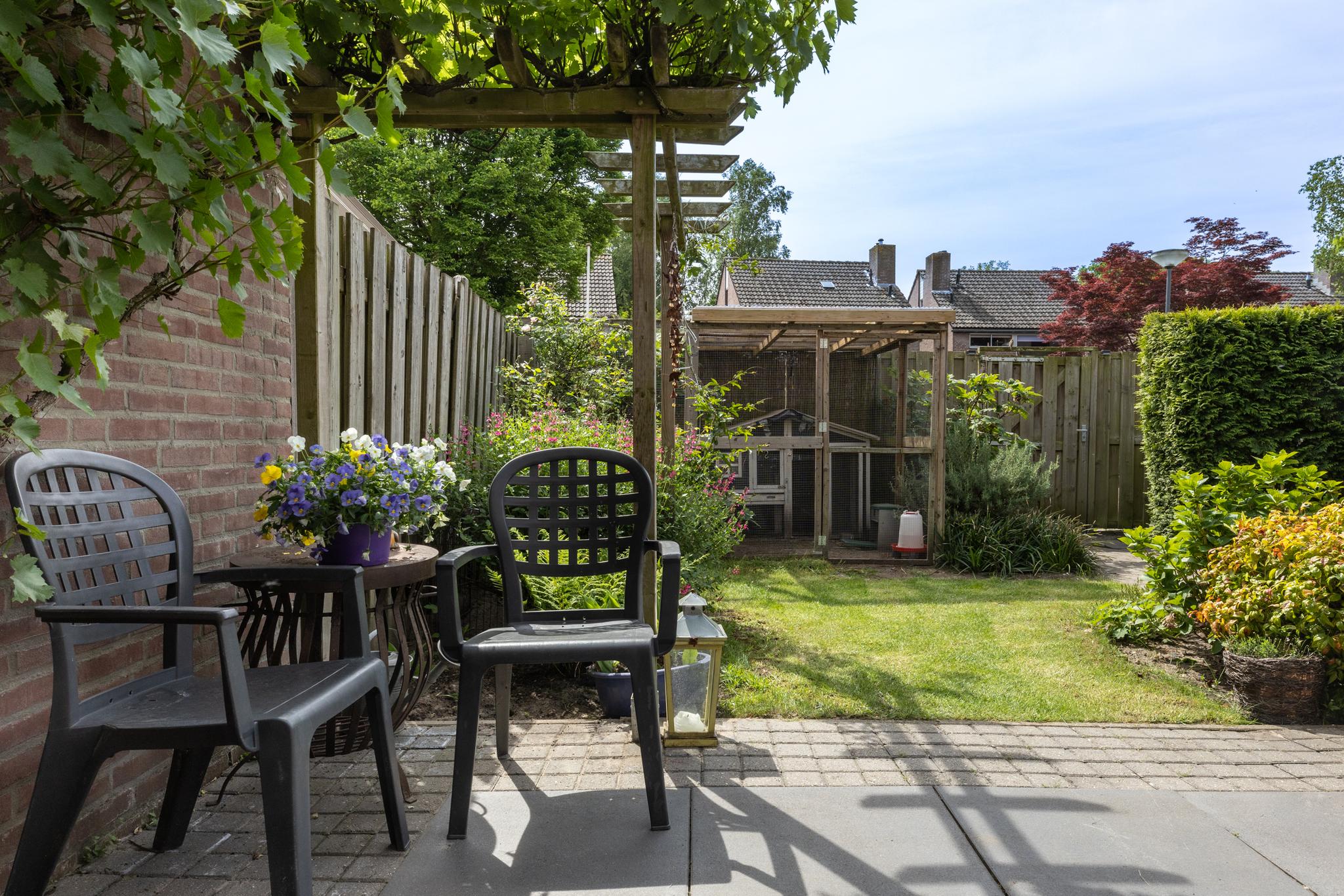 Deze gezellige achtertuin ligt gunstig op het zuiden, waardoor je de hele dag kunt genieten van de zon. De tuin biedt een fijne mix van groen en praktisch gemak. Het terras is deels bestraat, ideaal voor een tuinset of loungehoek, en wordt aangevuld met een stuk gras en kleurrijke beplanting voor een natuurlijke en levendige uitstraling. Vanuit de achtertuin is middels een poort de straat aan de achterzijde bereikbaar met voldoende parkeergelegenheid.