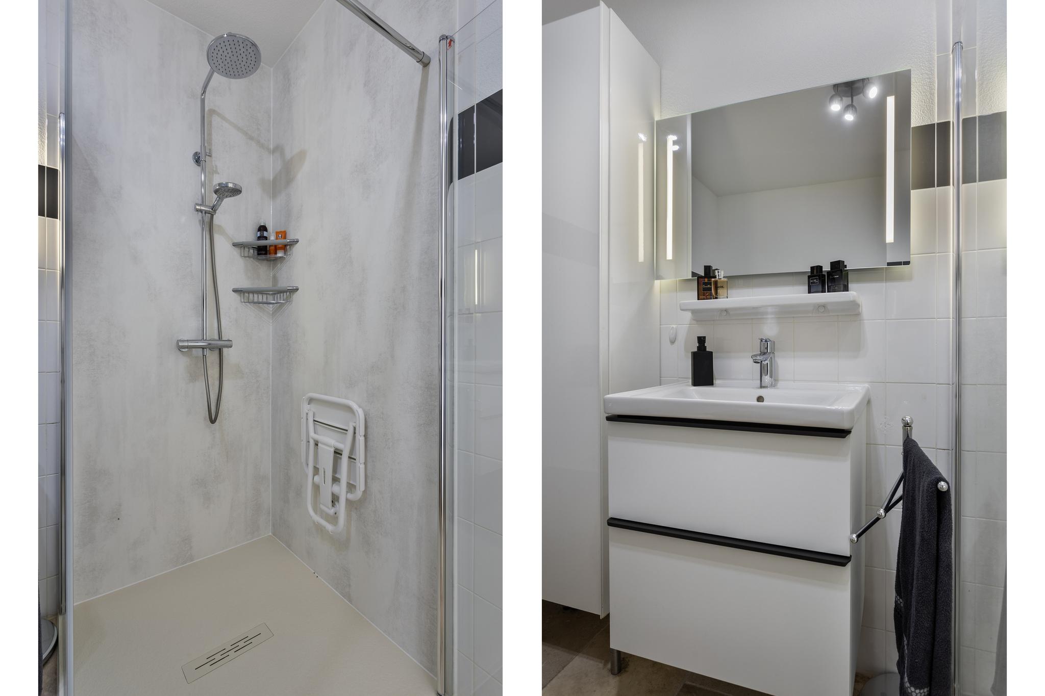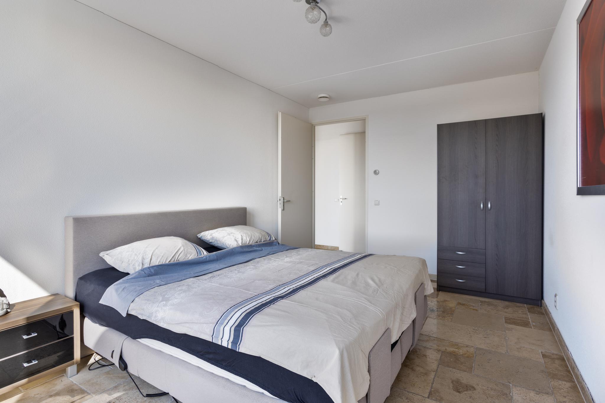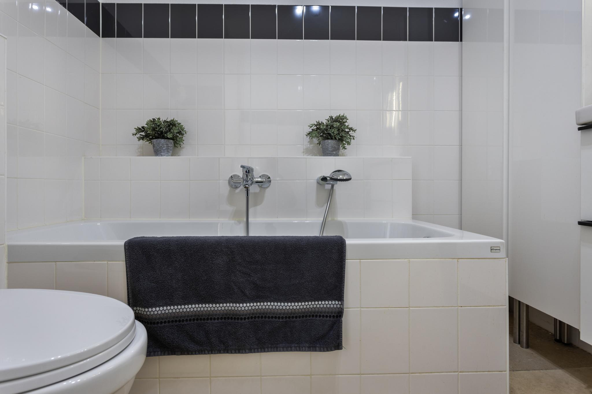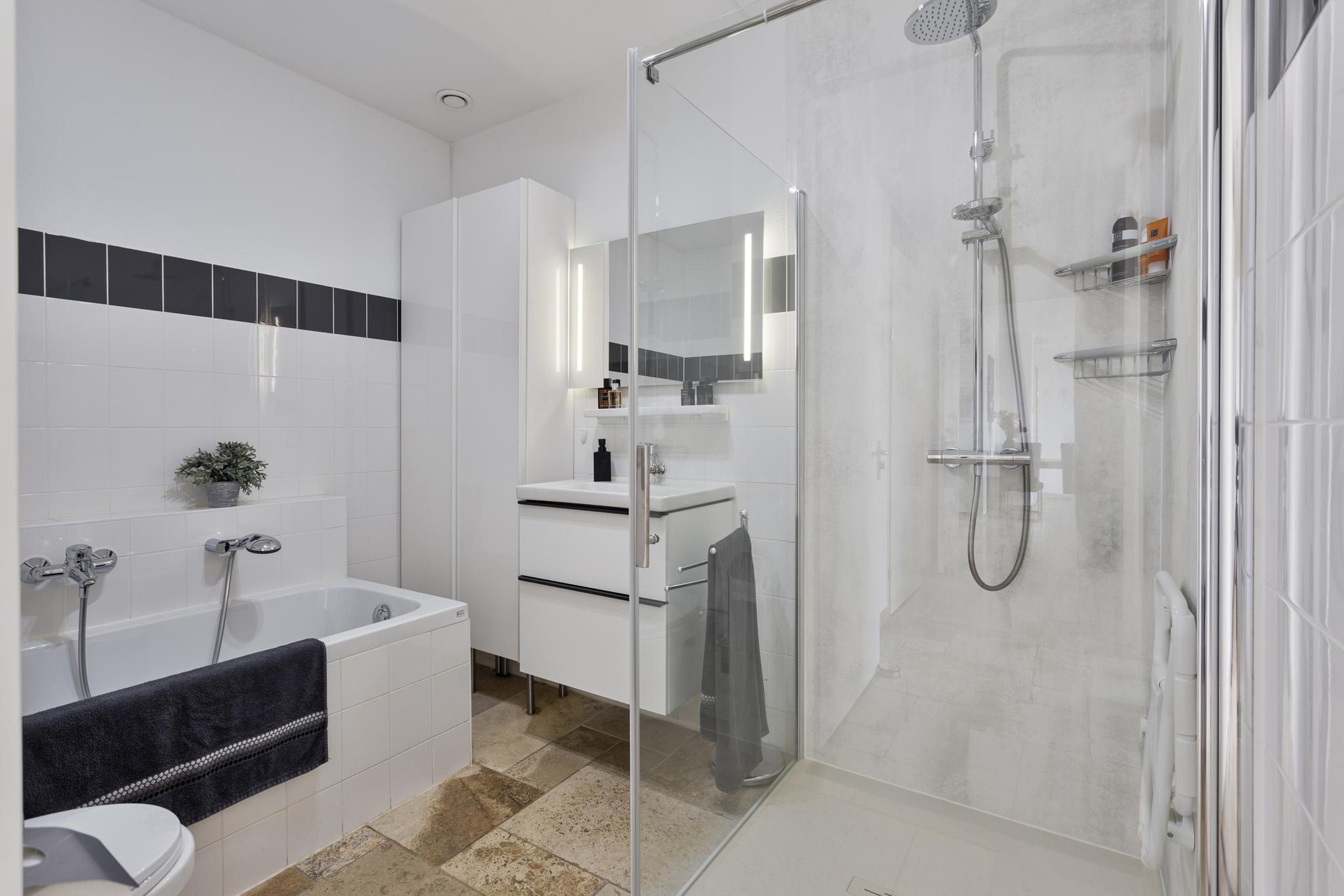 Aan de achterzijde van het appartement leidt een tweede gang naar de twee ruime slaapkamers, de badkamer en de technische ruimte. Beide slaapkamers hebben een prettig formaat en uitzicht op de Drunense Duinen, en zijn perfect in te richten als hoofdslaapkamer en logeer- of werkkamer. Beiden zijn ruim genoeg om er een tweepersoonsbed met kledingkast in te plaatsen. De badkamer is compleet uitgerust met een ligbad, aparte douche, toilet en een fraai wastafelmeubel. In de praktische technische ruimte bevinden zich de warmteverdeler en WTW-unit, met daarnaast voldoende plek voor een wasmachine en droger. Alles is netjes afgewerkt en klaar voor gebruik. Dit is een woning waar je zó in kunt trekken en elke dag kunt genieten van rust, comfort en het mooie uitzicht.