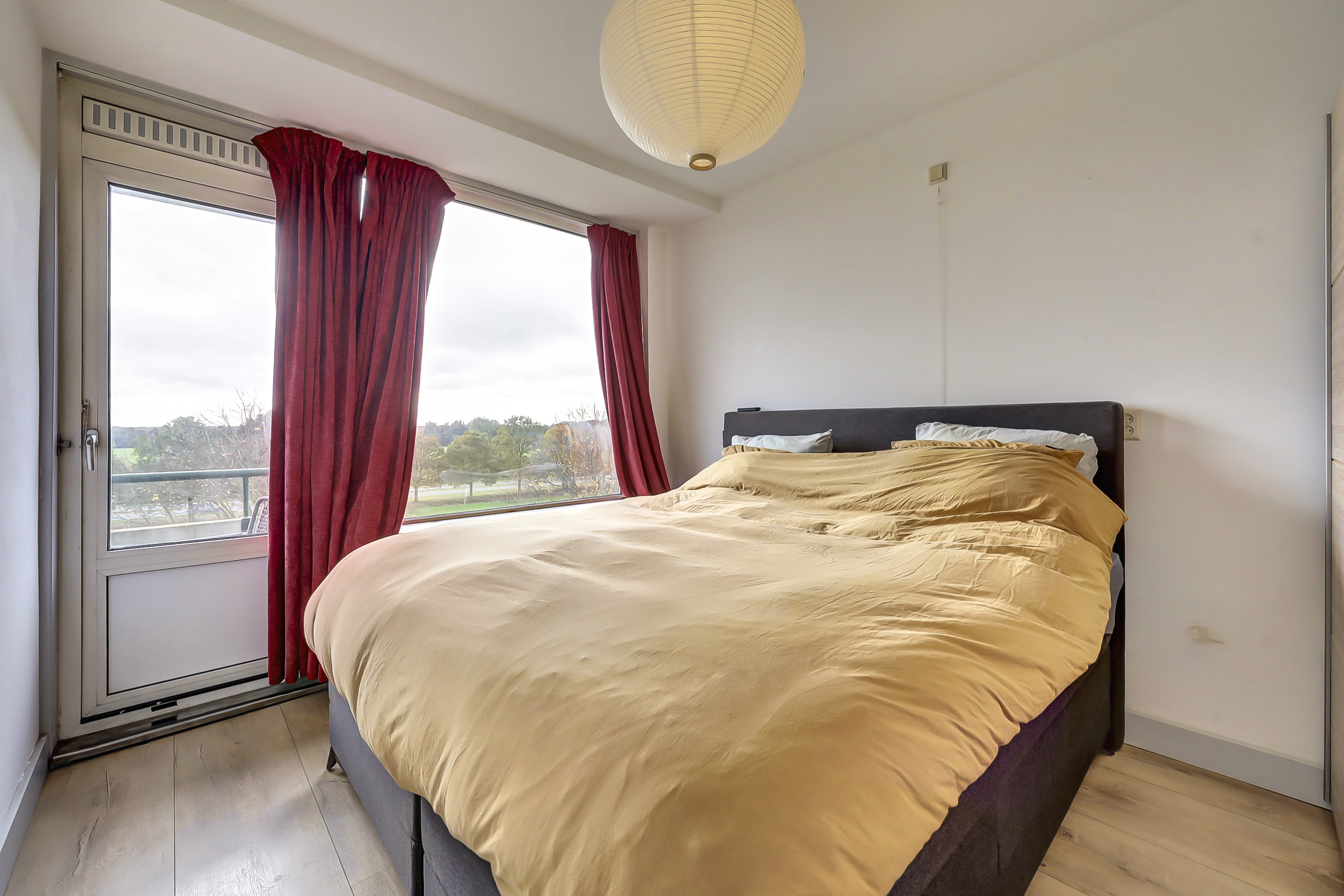 Aansluitend vind je de hoofdslaapkamer, waar met gemak een tweepersoonsbed, nachtkastjes en een kledingkast passen. Vanuit deze kamer is er directe toegang tot het balkon, dat niet alleen buitenruimte biedt, maar ook zorgt voor extra lichtinval in de kamer.