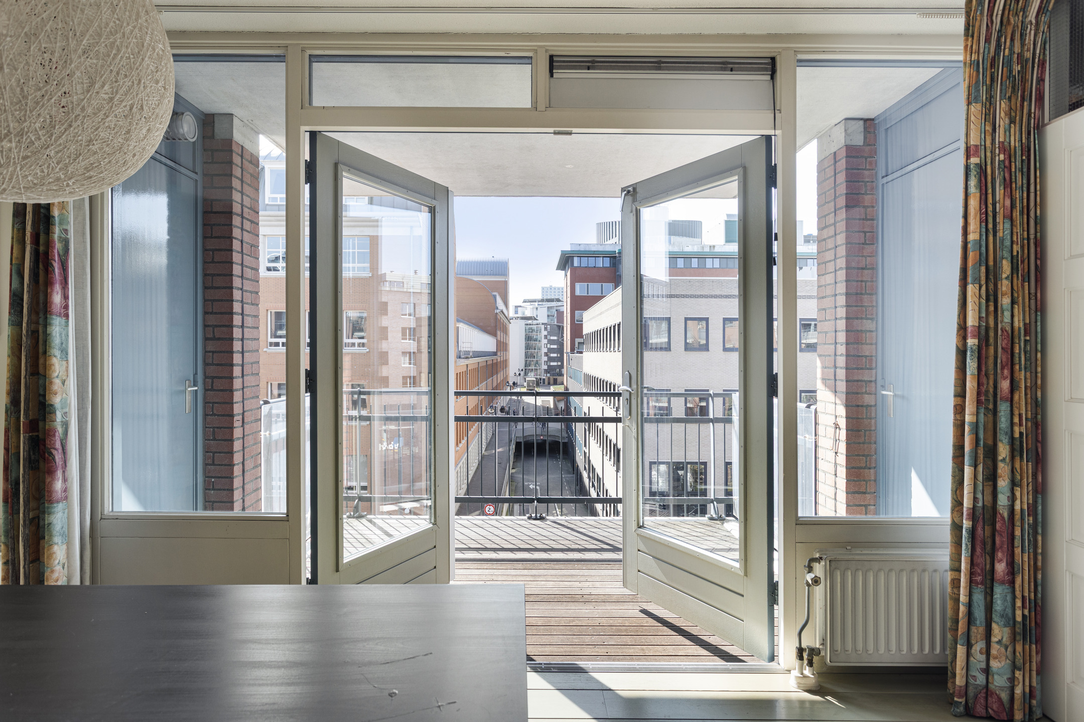 Via de openslaande deuren, loop je vanuit de keuken naar het geheel op het zuiden gelegen ruime balkon. Dit balkon is voorzien van hardhouten vlonders en biedt extra opberg mogelijkheden door de 2 vaste kasten.