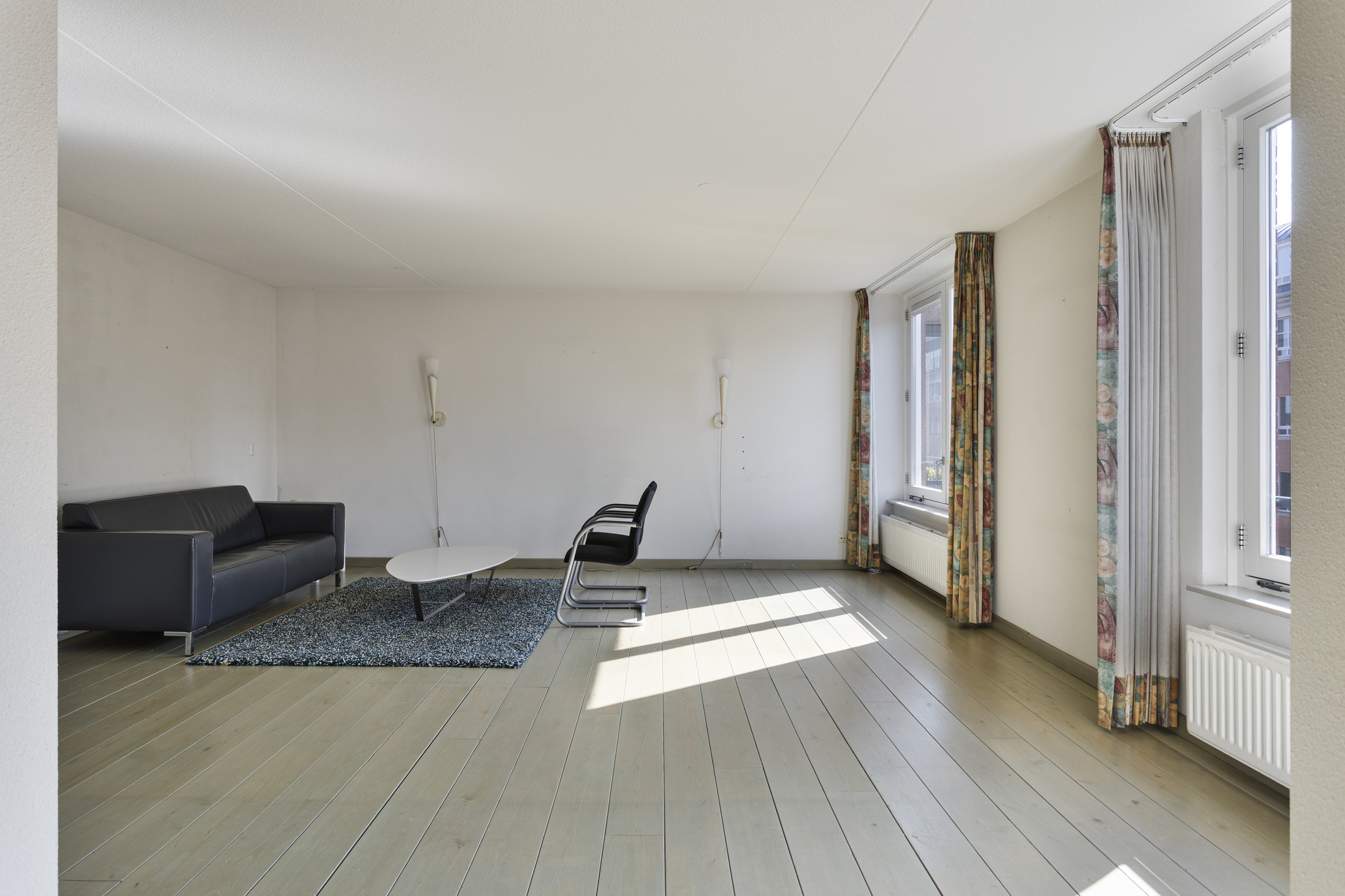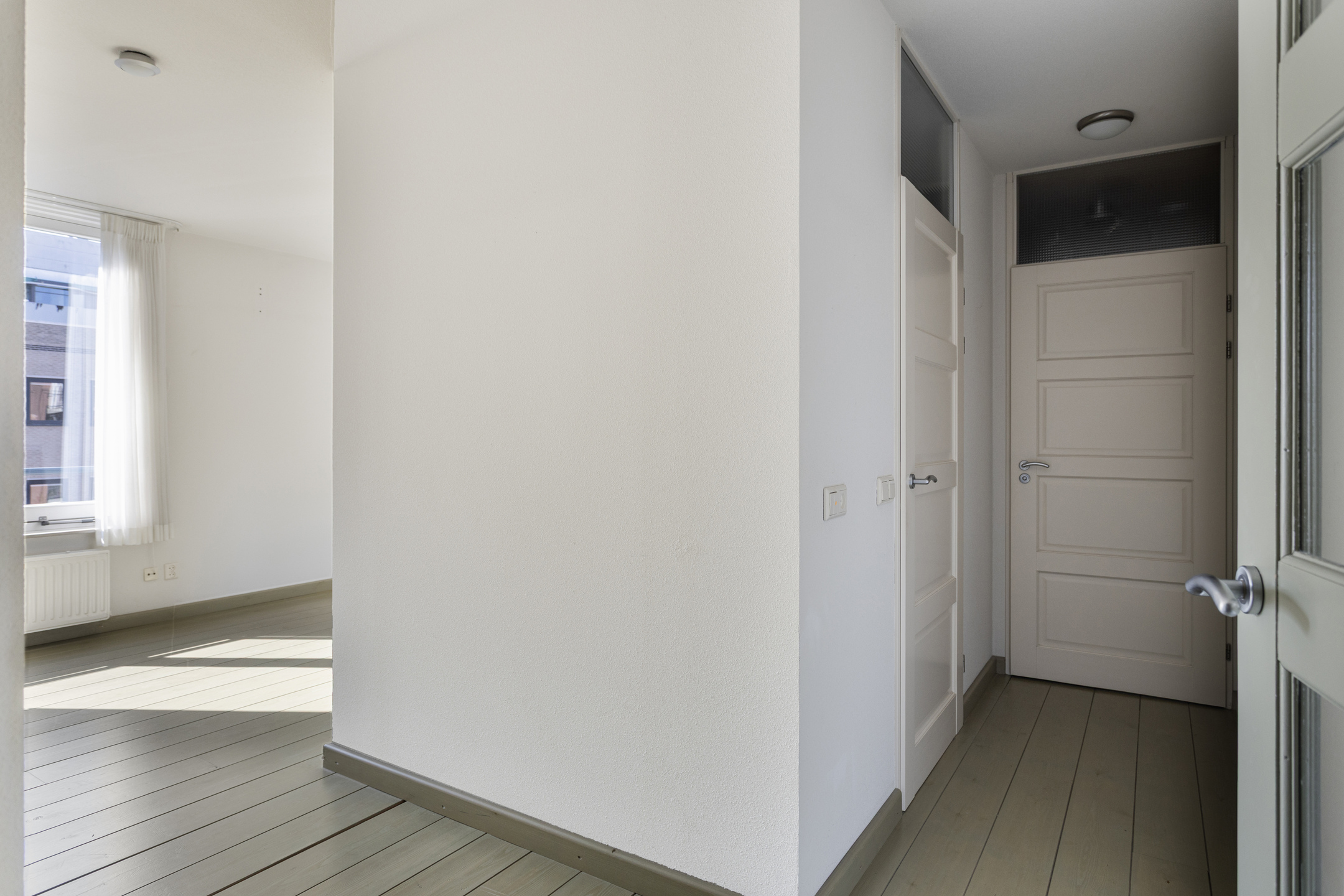 De woonkamer biedt met zijn vele raampartijen een leuk uitzicht en een geweldige hoeveelheid lichtinval. De ruime woonkamer biedt diverse indelingsmogelijkheden. De woonkamer is, net als de rest van het appartement, gesitueerd aan de voorzijde van het complex en biedt voldoende ruimte voor het creëren van een fijne zithoek.