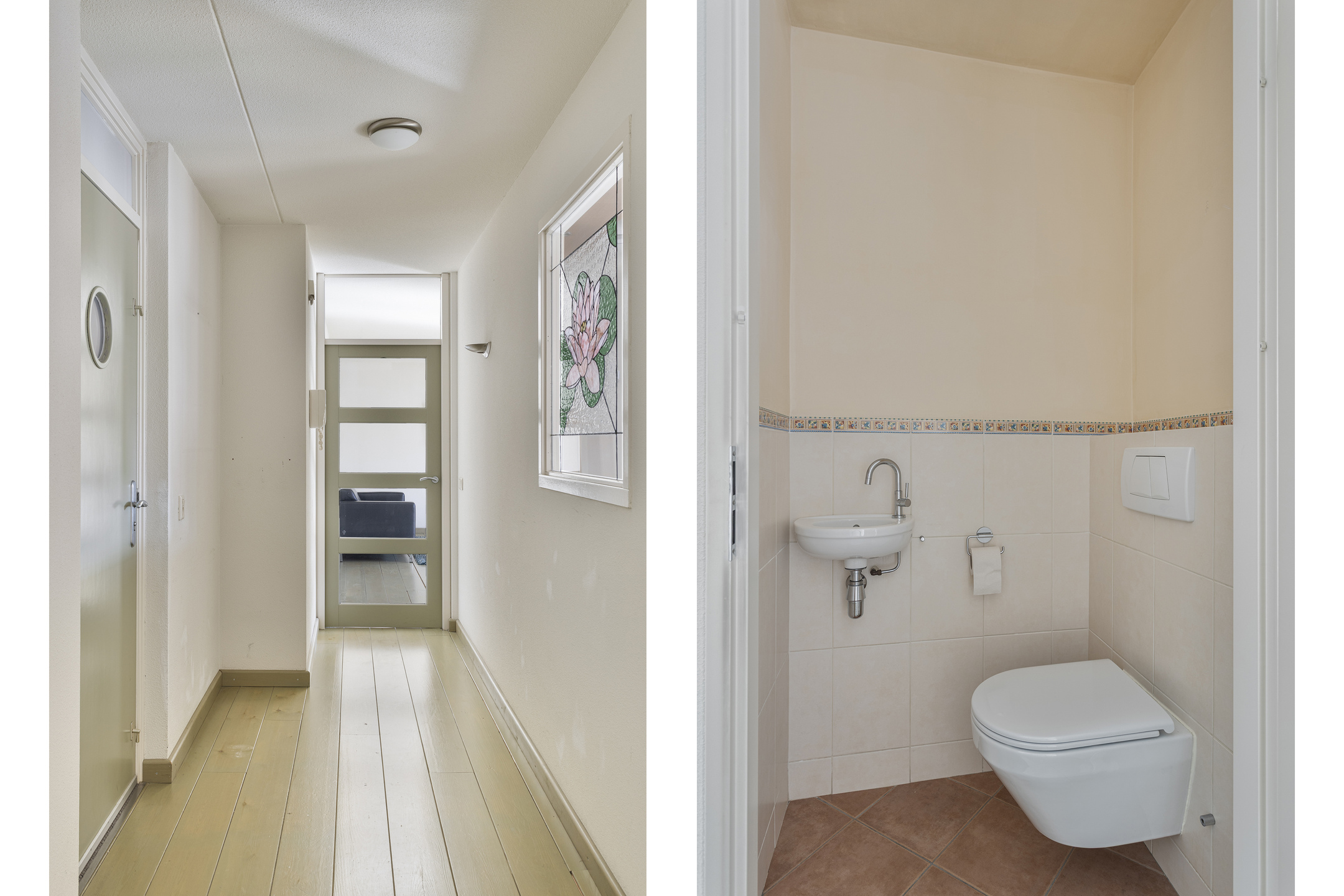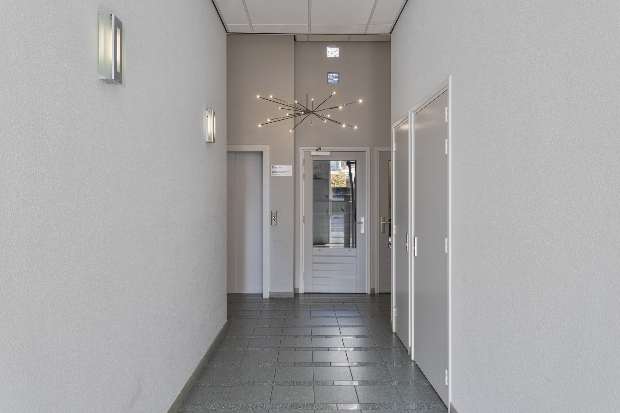 Aan de Leeghwaterlaan bevindt zich de gemeenschappelijke entree van het appartementencomplex. De entree is voorzien van postbussen en bellentableau met videofooninstallatie. Vanuit hier heb je toegang tot het trappenhuis, de binnentuin en de lift.