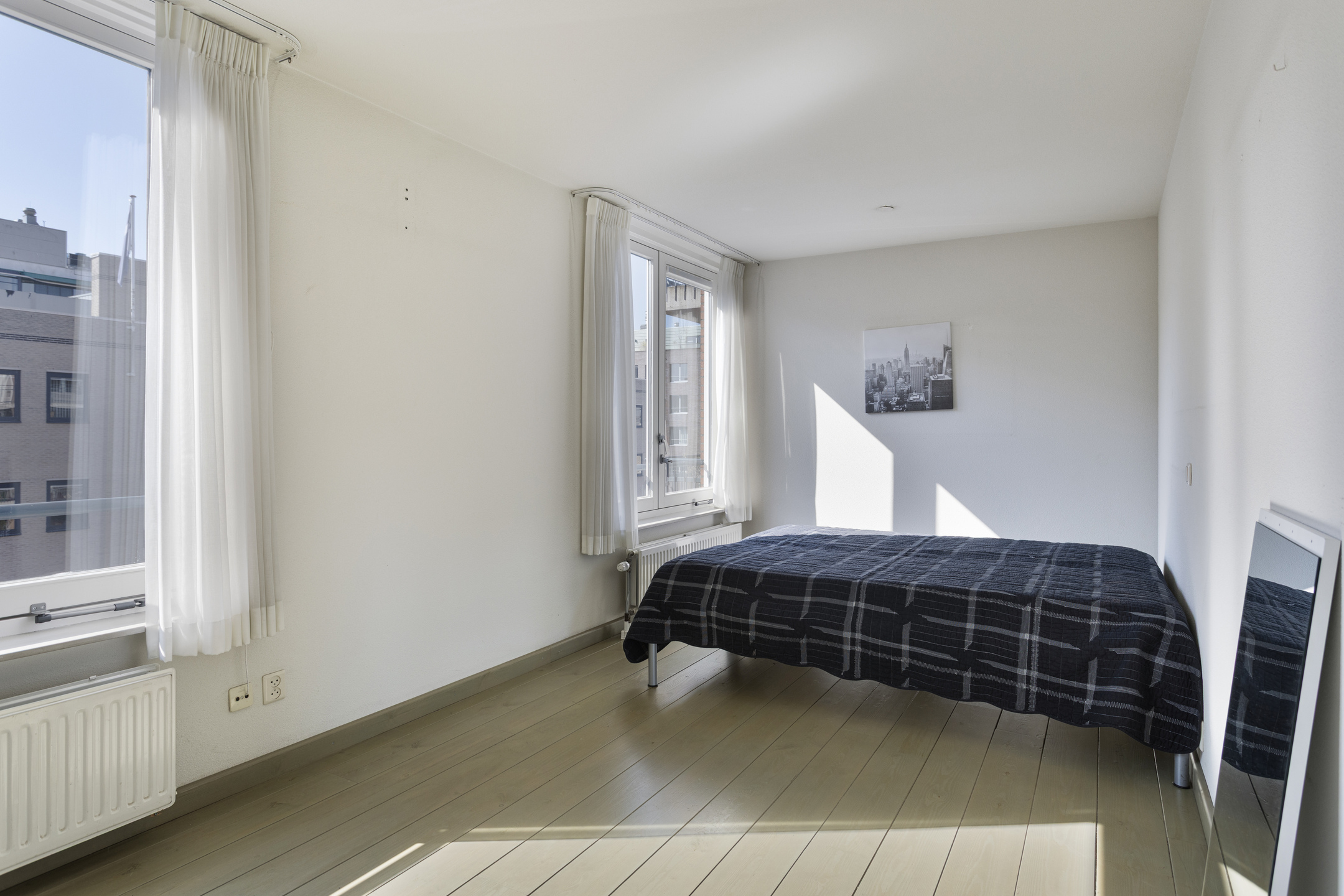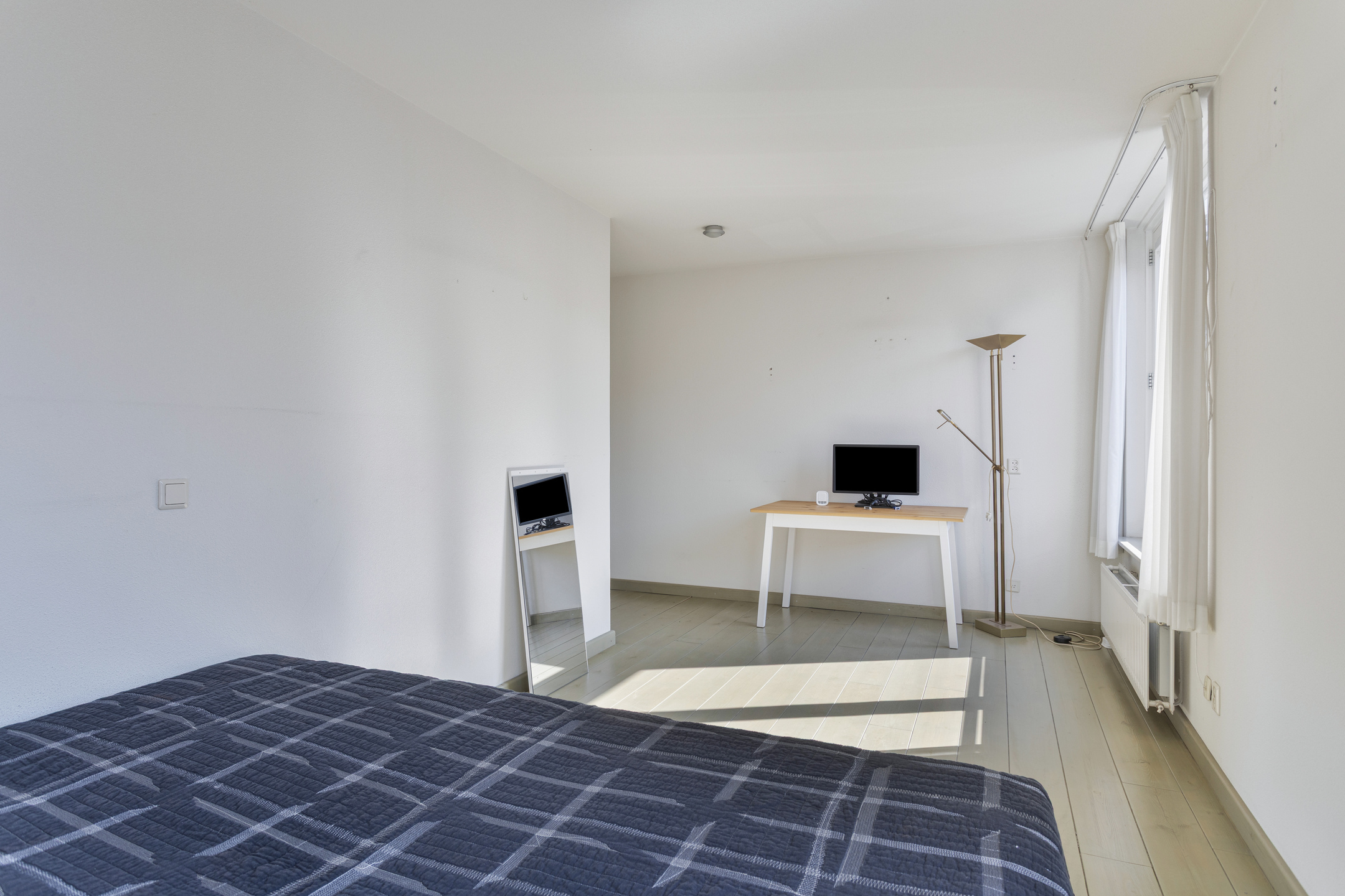 De ruime en lichte slaapkamer is bereikbaar vanuit de hal en biedt voldoende mogelijkheden. Zo zou je er een thuiswerkplek, of zelfs een tweede slaapkamer van kunnen maken.