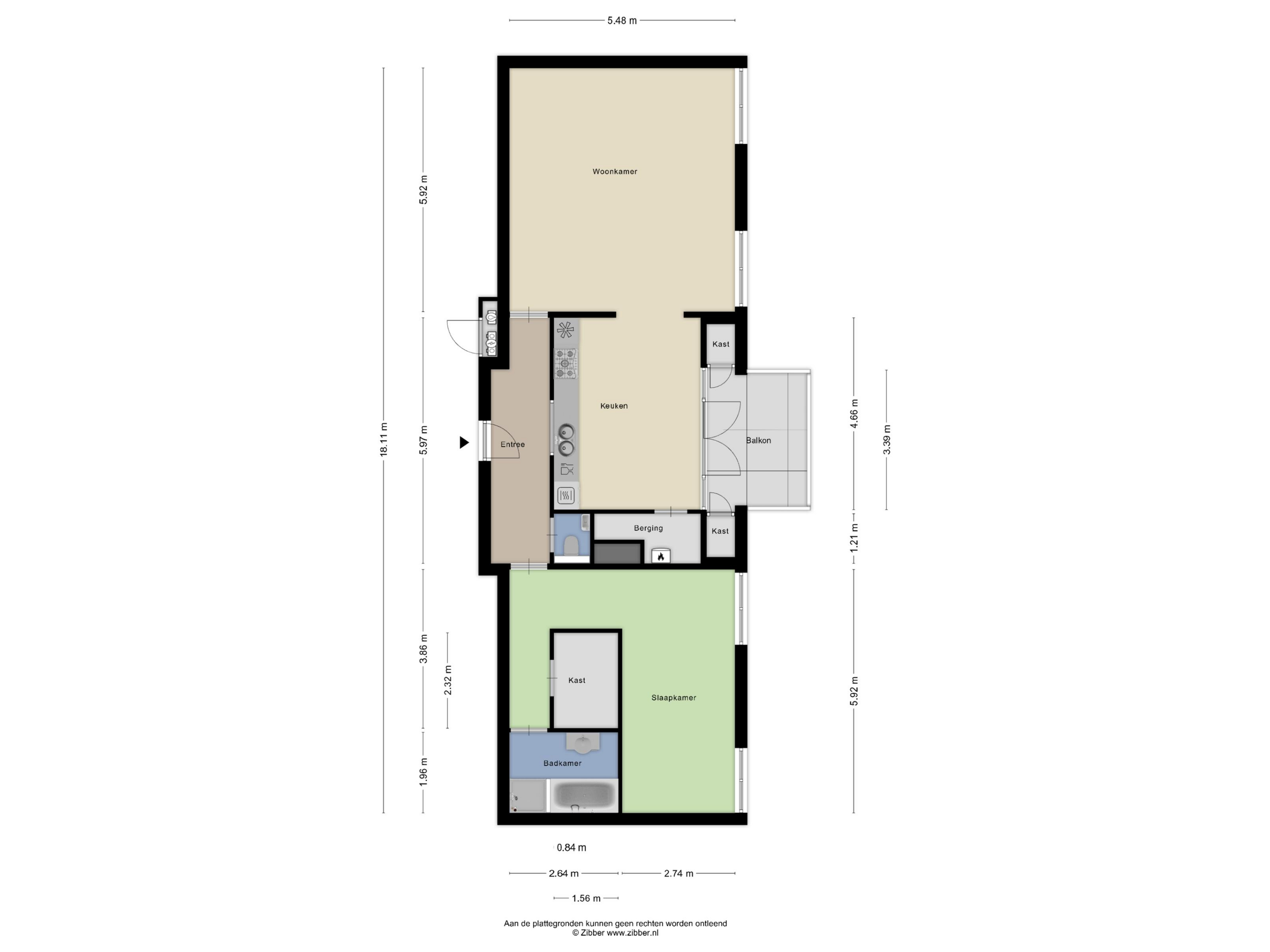 Bij binnenkomst in het appartement kom je in een ruime hal, die toegang biedt tot alle vertrekken. Aan de linkerkant de woonkamer en woonkeuken en aan de rechterkant de slaapkamer met inloopkast, de badkamer en de toiletruimte met een wandcloset en een fonteintje. Een ideale indeling!