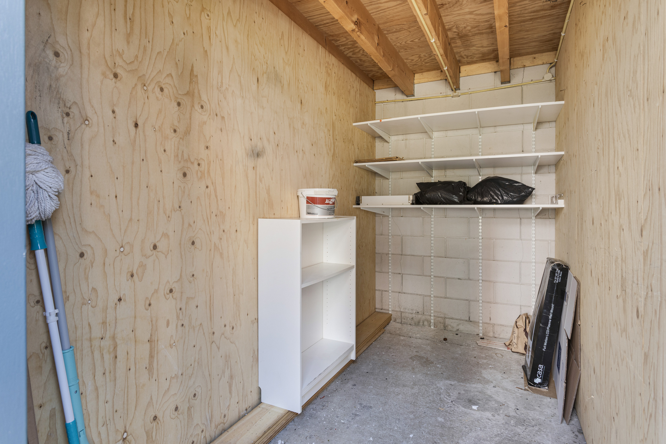 Naast de keuken, bevindt zich een praktische berging met wasmachine aansluiting, die ook ruimte biedt voor extra voorraad.
