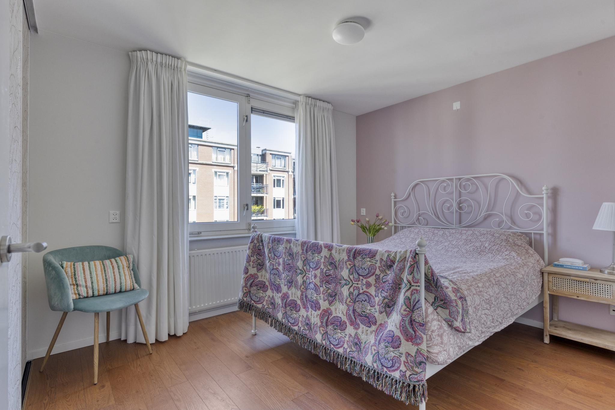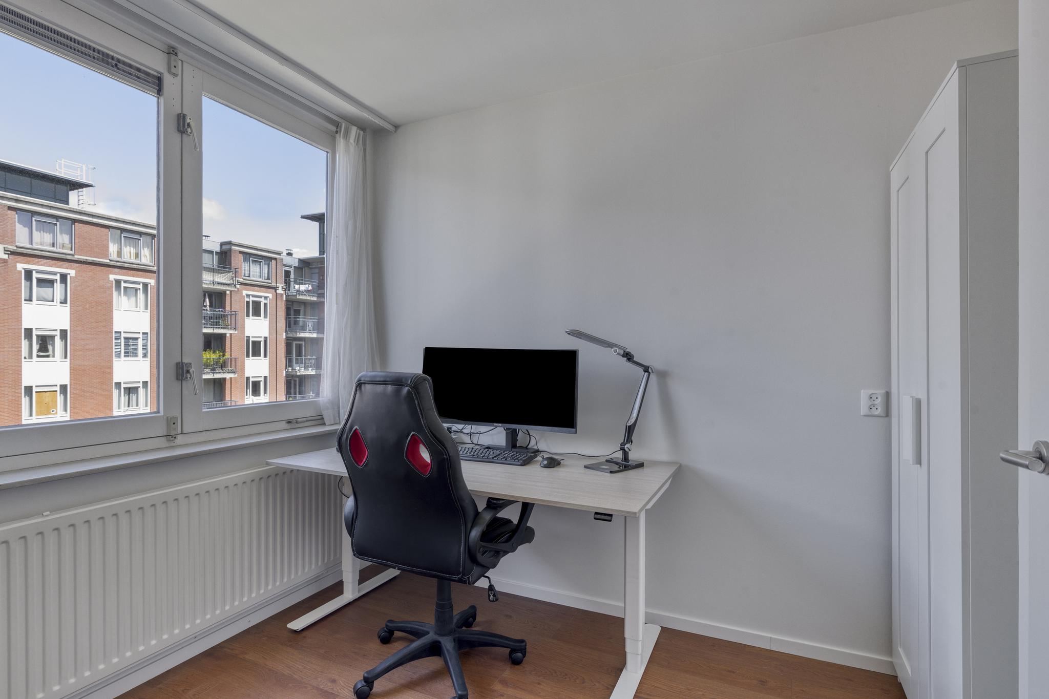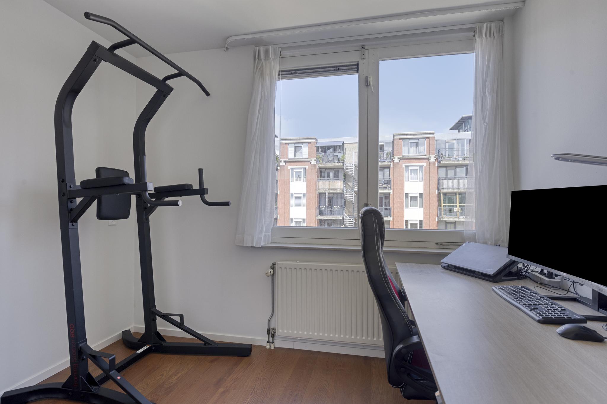 Het appartement beschikt over twee slaapkamers. De grootste slaapkamer beschikt over een kastenwand en biedt voldoende ruimte voor een tweepersoonsbed. De kleinere slaapkamer is momenteel in gebruik als werkruimte, maar kan ook gebruikt worden als extra slaapkamer.