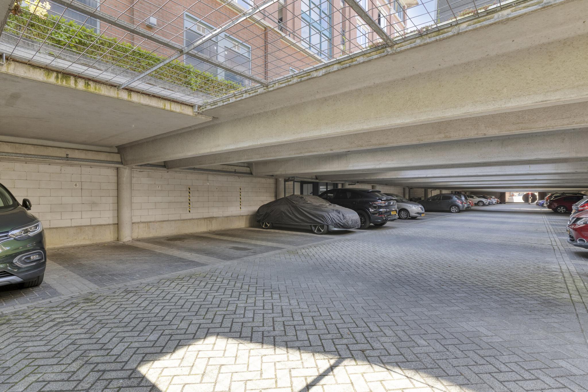 Het appartement beschikt over een eigen parkeerplaats in de stallingsgarage onder het appartementencomplex en een ruime berging in de binnentuin.