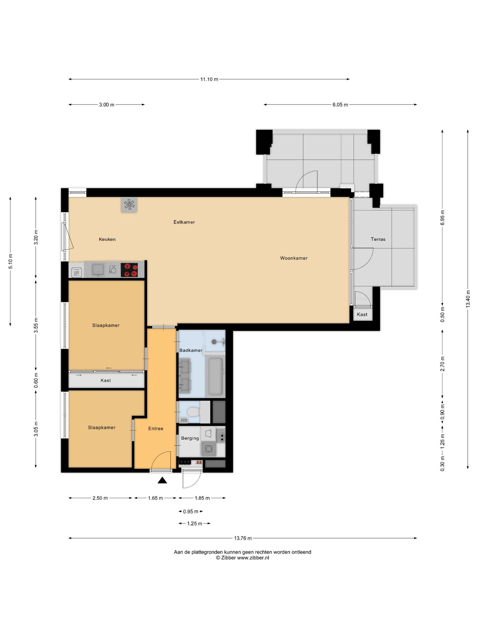 Achter de voordeur bevindt zich de ruime entree voorzien van garderobe. Vanuit hier heeft u toegang tot de twee slaapkamers, technische ruimte, de badkamer, separate toiletruimte, woonkamer en keuken.