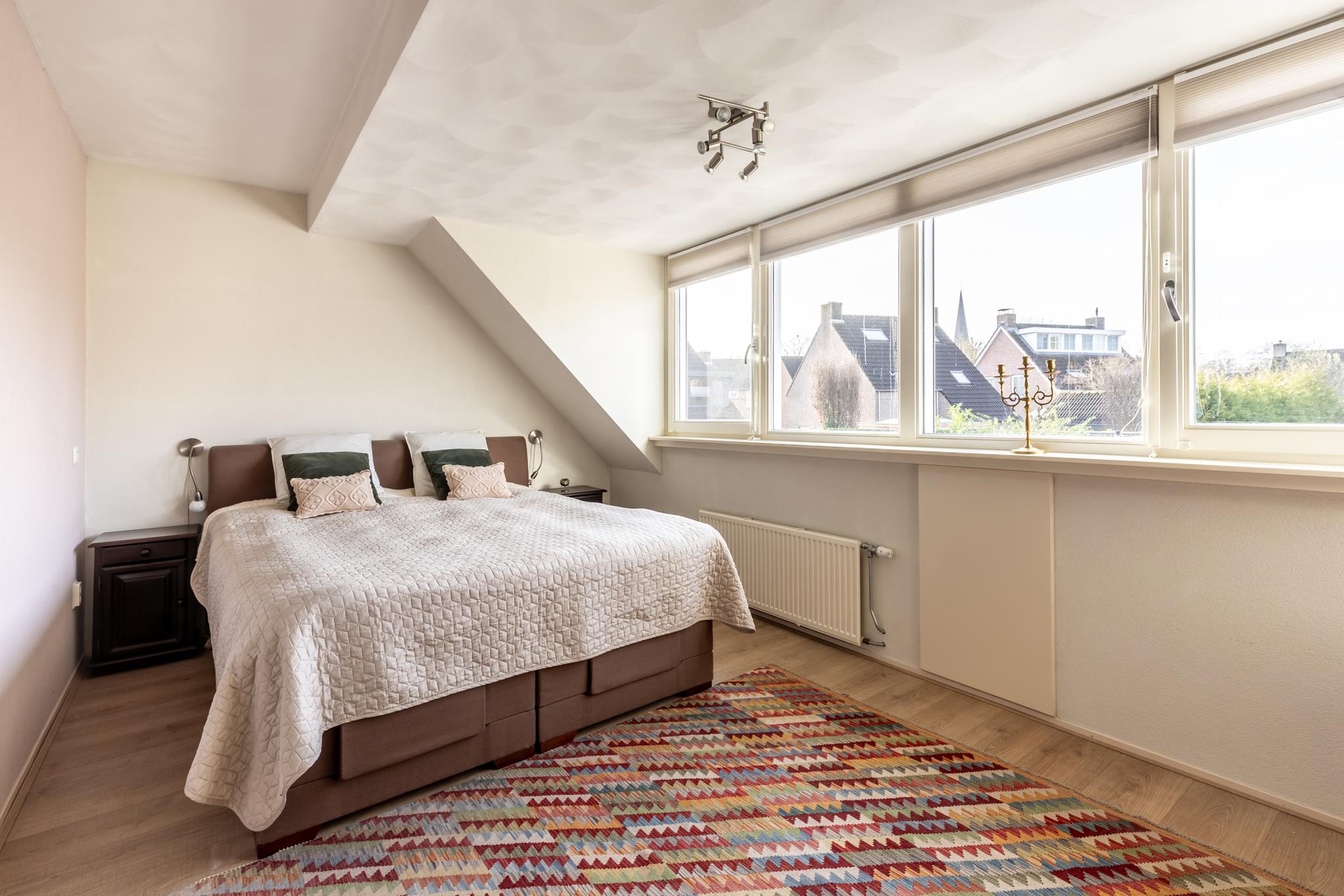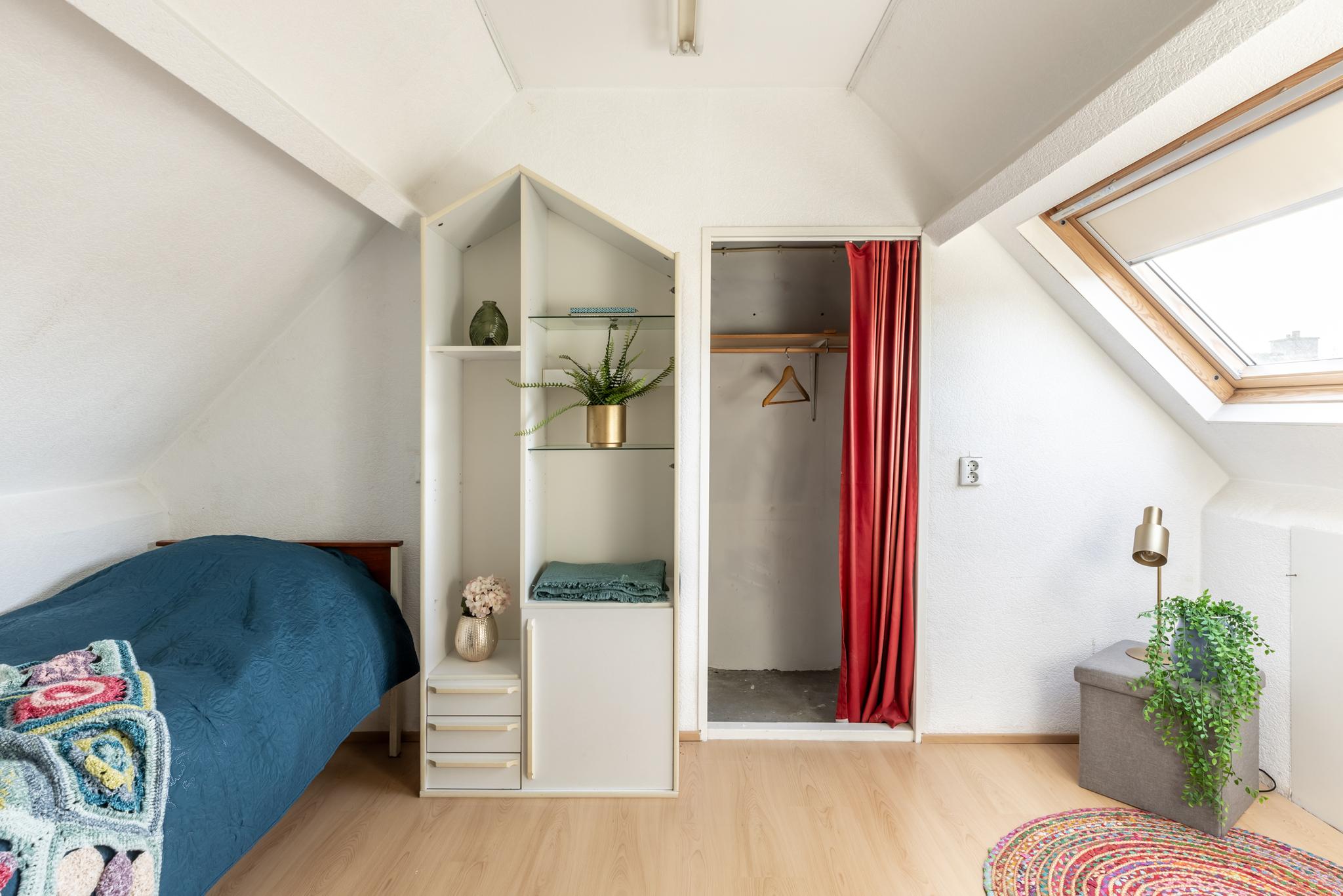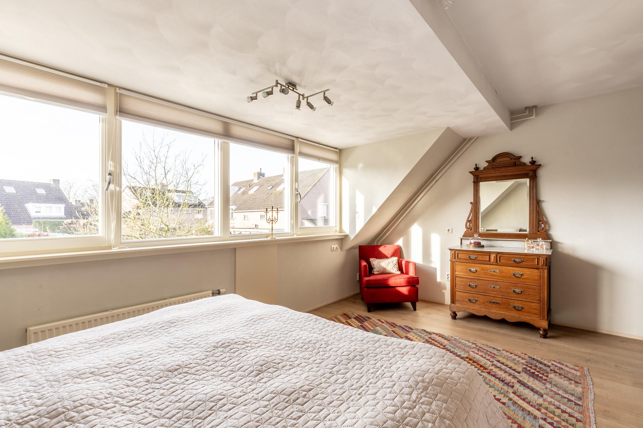 •De slaapkamer aan de achterzijde is voorzien van een brede dakkapel over de volledige breedte, hierdoor is er een ruime lichte slaapkamer ontstaan. De kamer is ongeveer 15,5m2 groot.