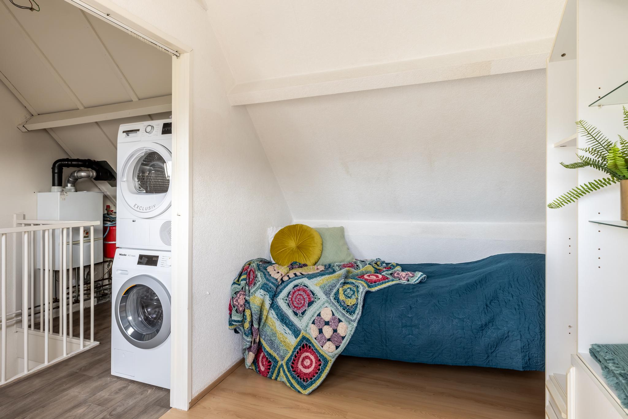 •2e verdieping met voorzolder en 3e slaapkamer. Op de voorzolder is daglicht aanwezig en mogelijkheid voor de opstelling van de wasmachine en de droger. De cv-ketel uit 2007 is eveneens hier geplaatst.