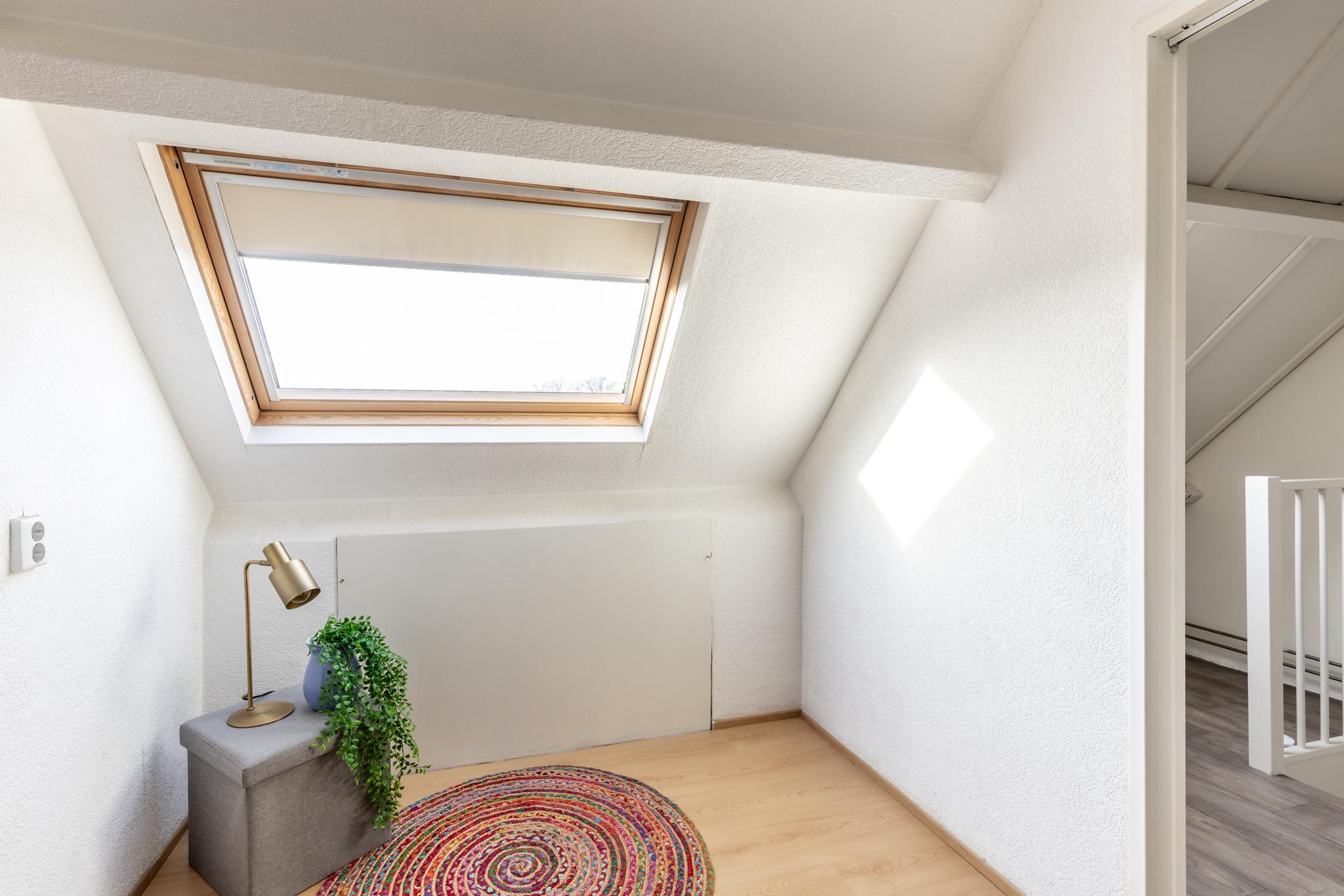 •Aansluitend is de 3e slaapkamer toegankelijk. Deze slaapkamer heeft een vaste inbouwkast en een groot dakraam. Daarnaast is er nog berging onder knieschot aanwezig.