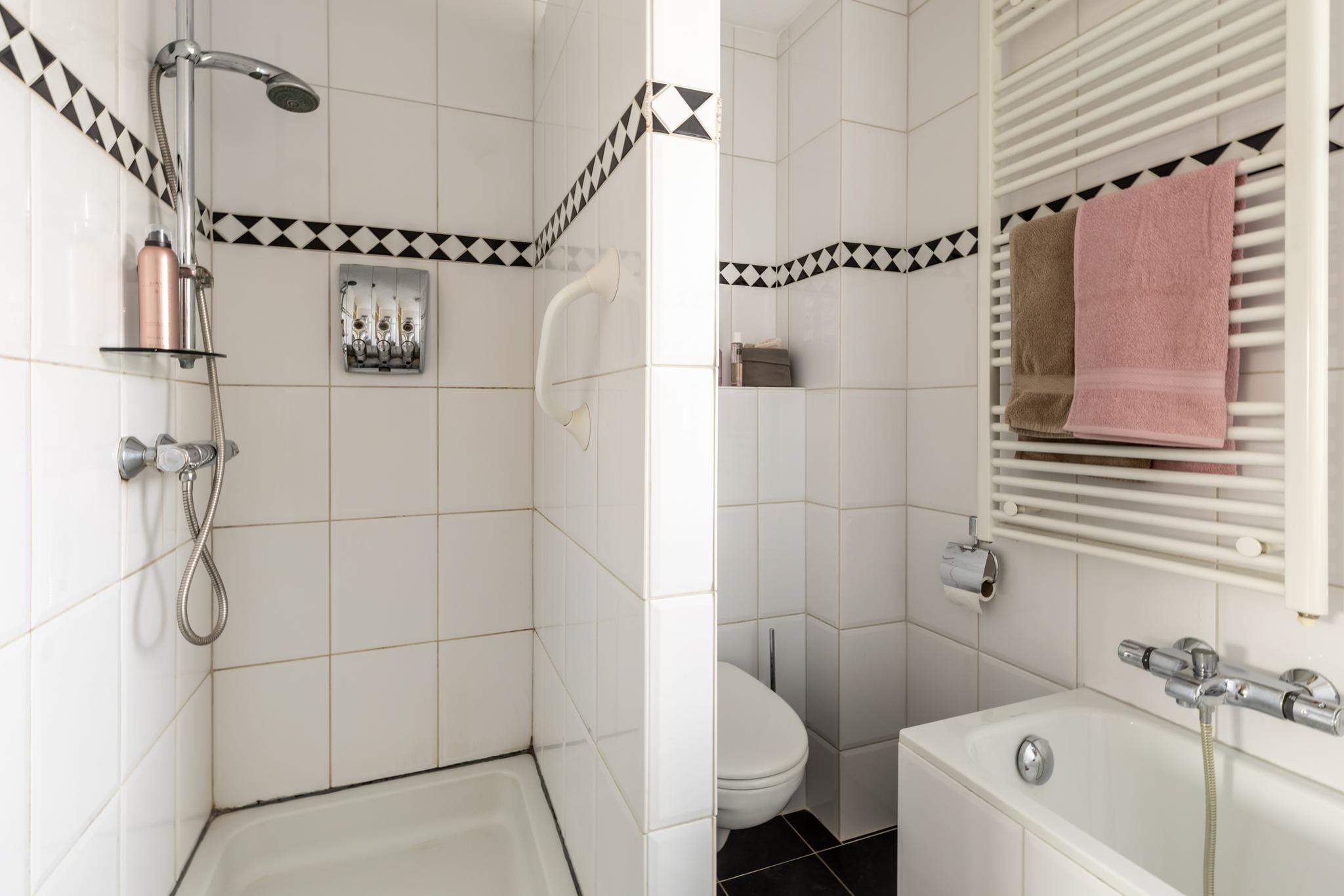 - Ligbad, toilet, douche en wastafel