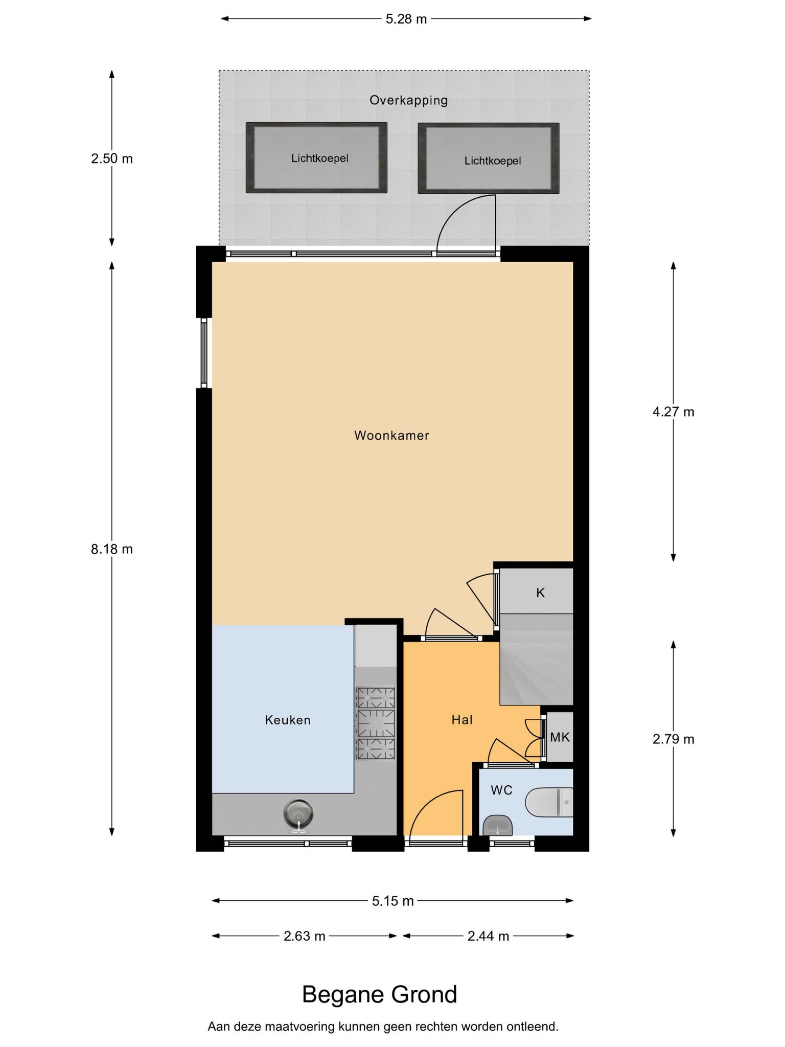 •De overkapping is aan de achtergevel gelegen en voorzien van 2 daglichtkoepels.
