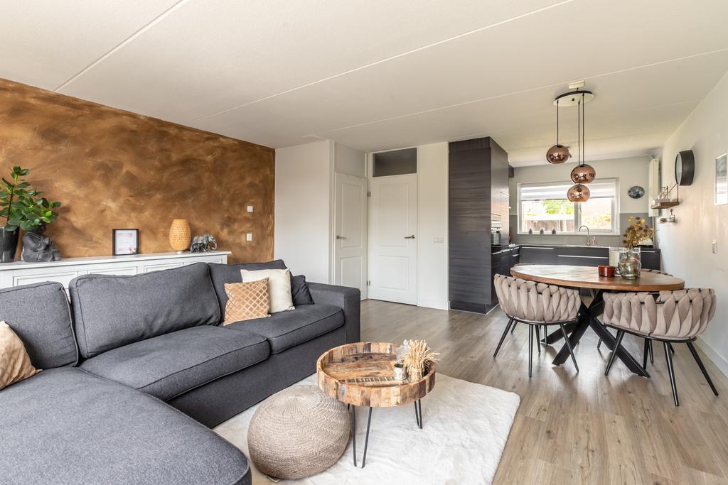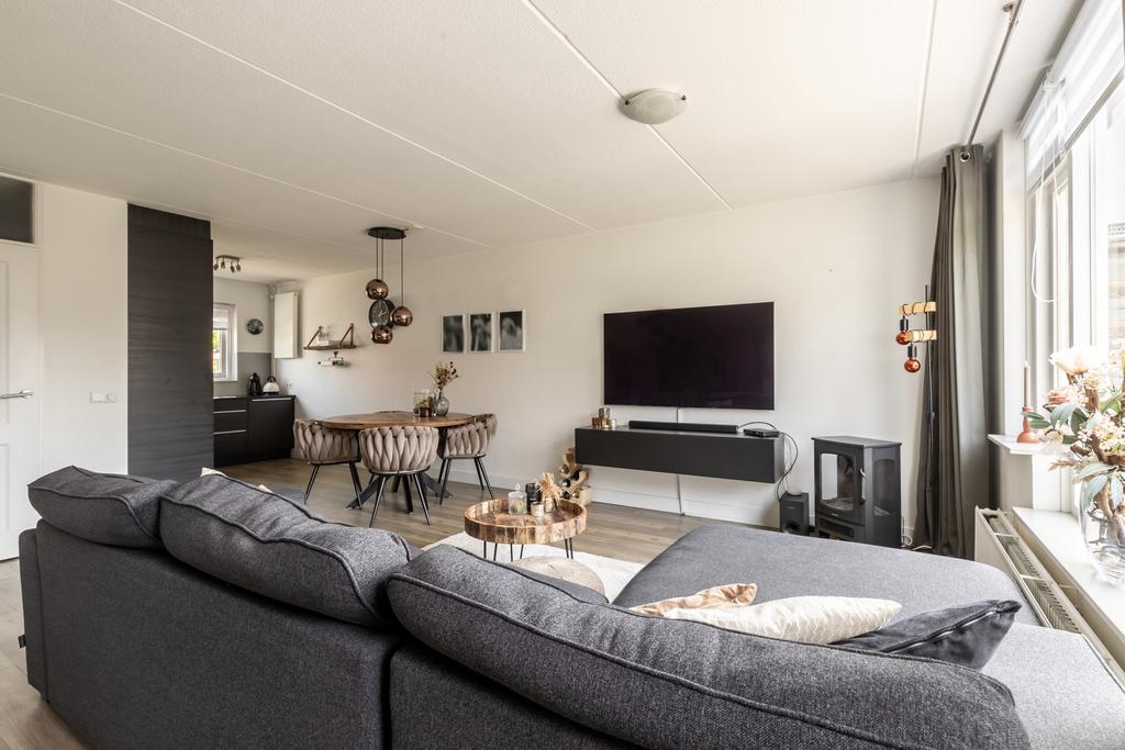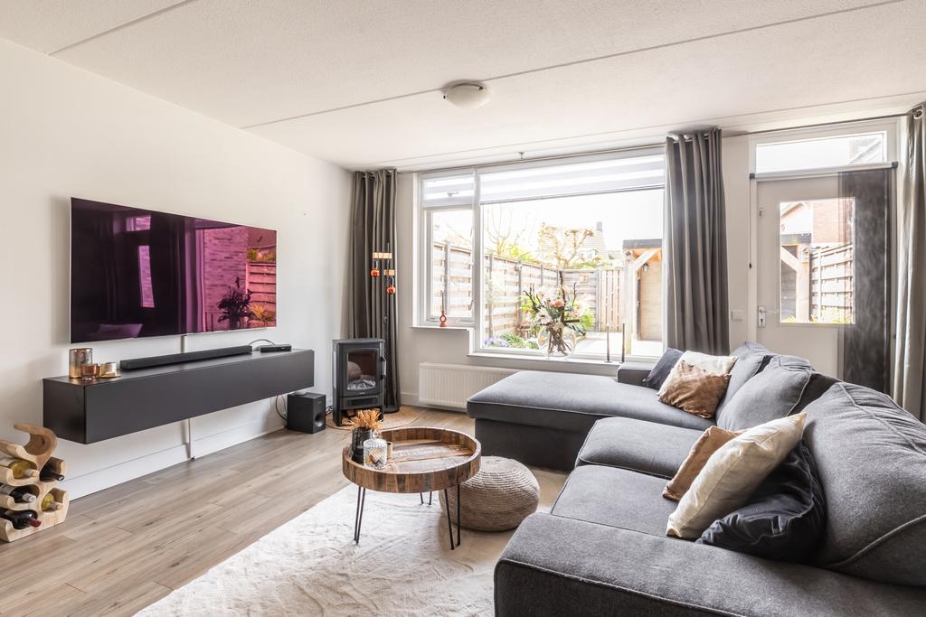 •Woonkamer voorzien van stucwerkwanden, grote raampartij met dubbele beglazing en tuindeur naar het terras.